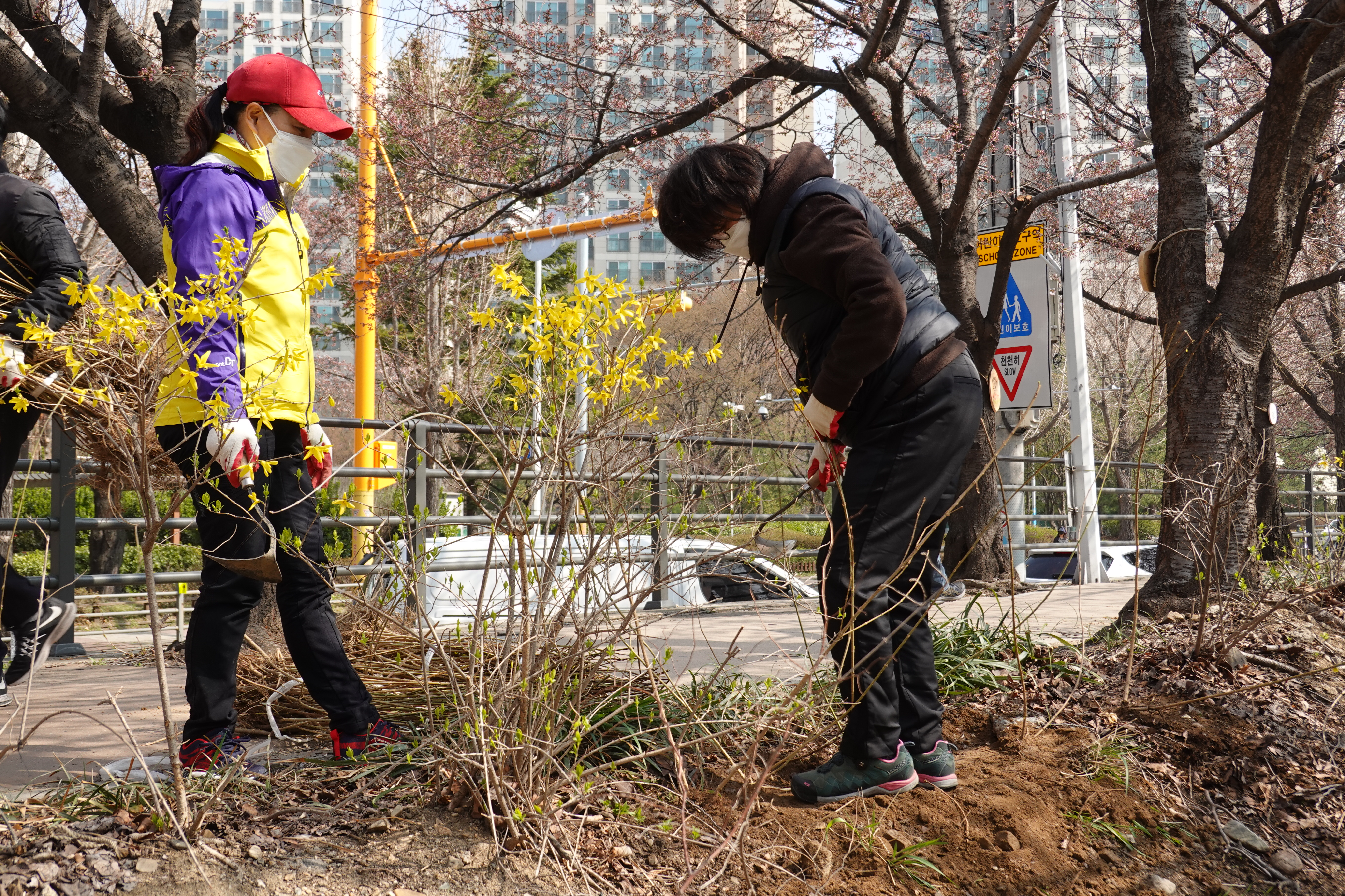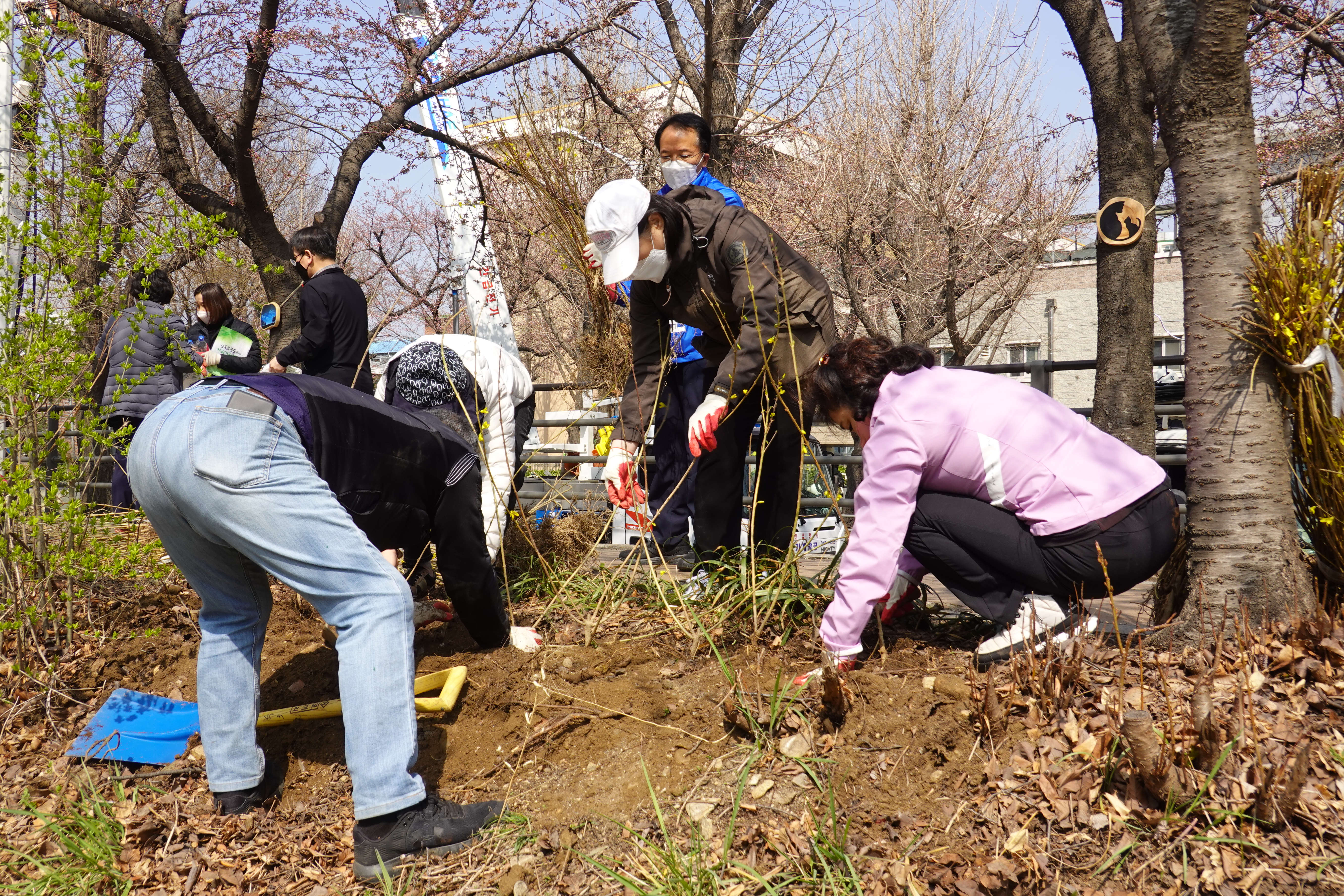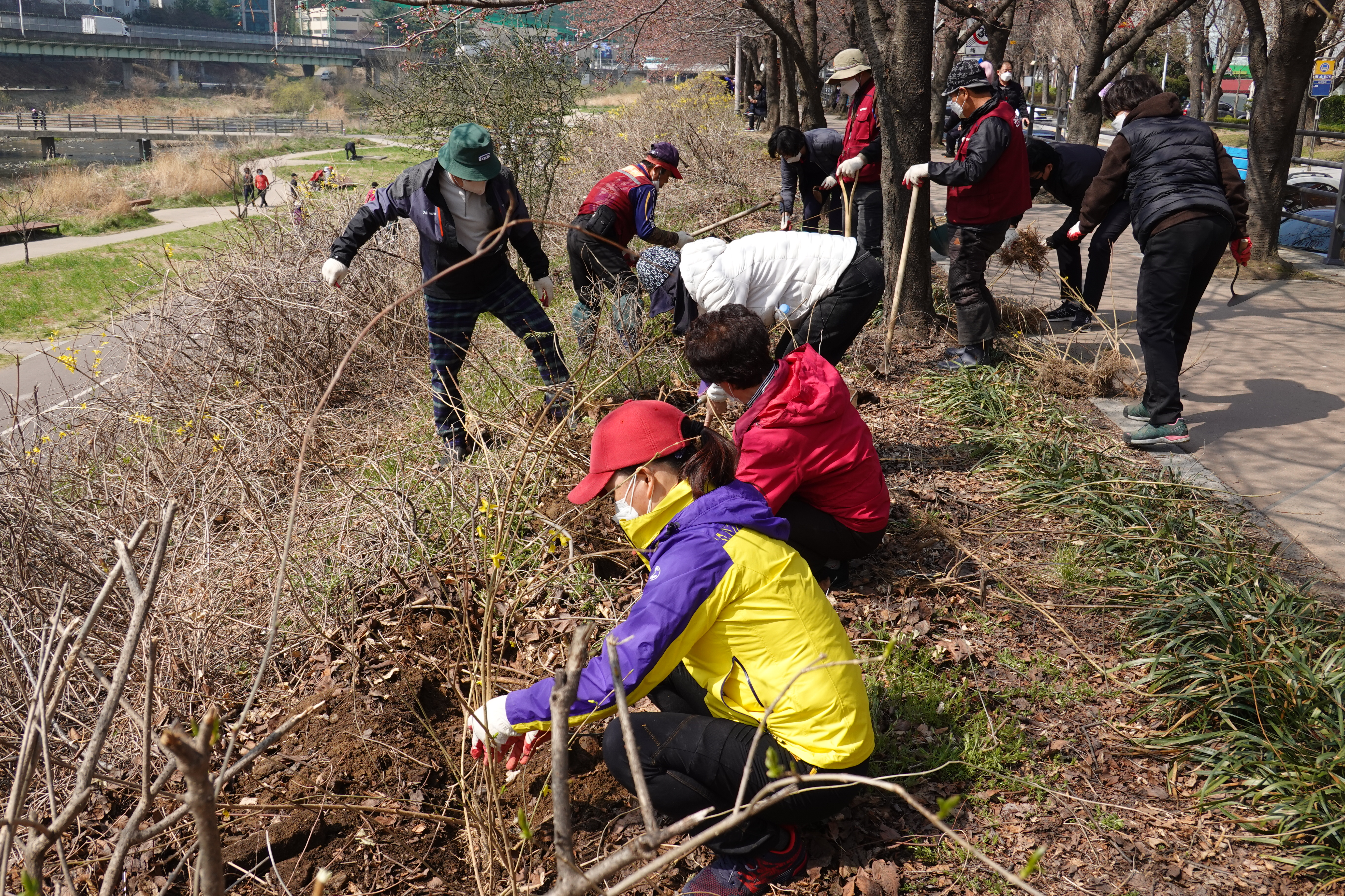 도시분과위원회(위원장 장경숙)에서는 지난 6일 안양천 충훈부 벚꽃길 둔치에서 안양시화인 개나리 모종 700여본 식재하는 작업을 전개하였다.