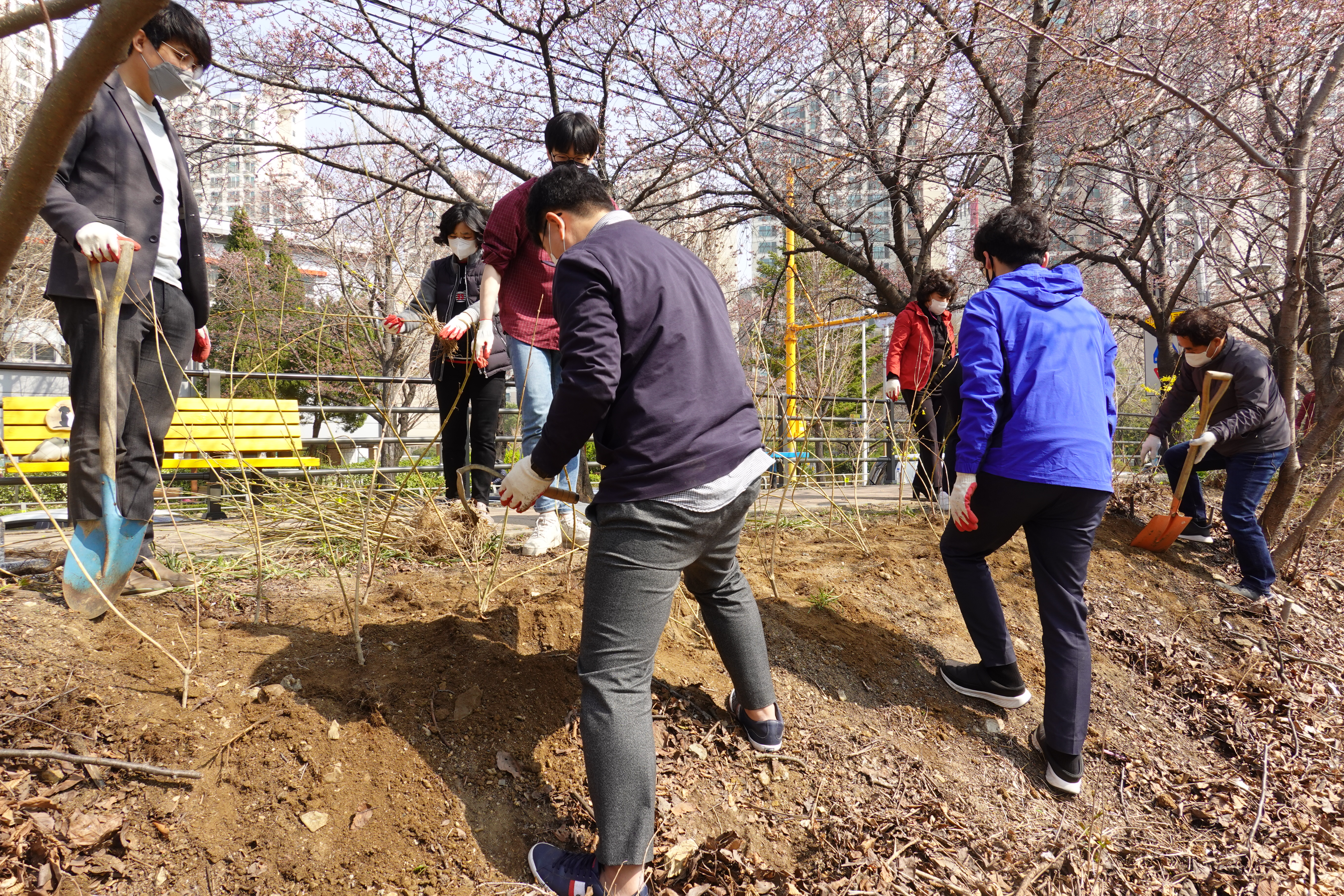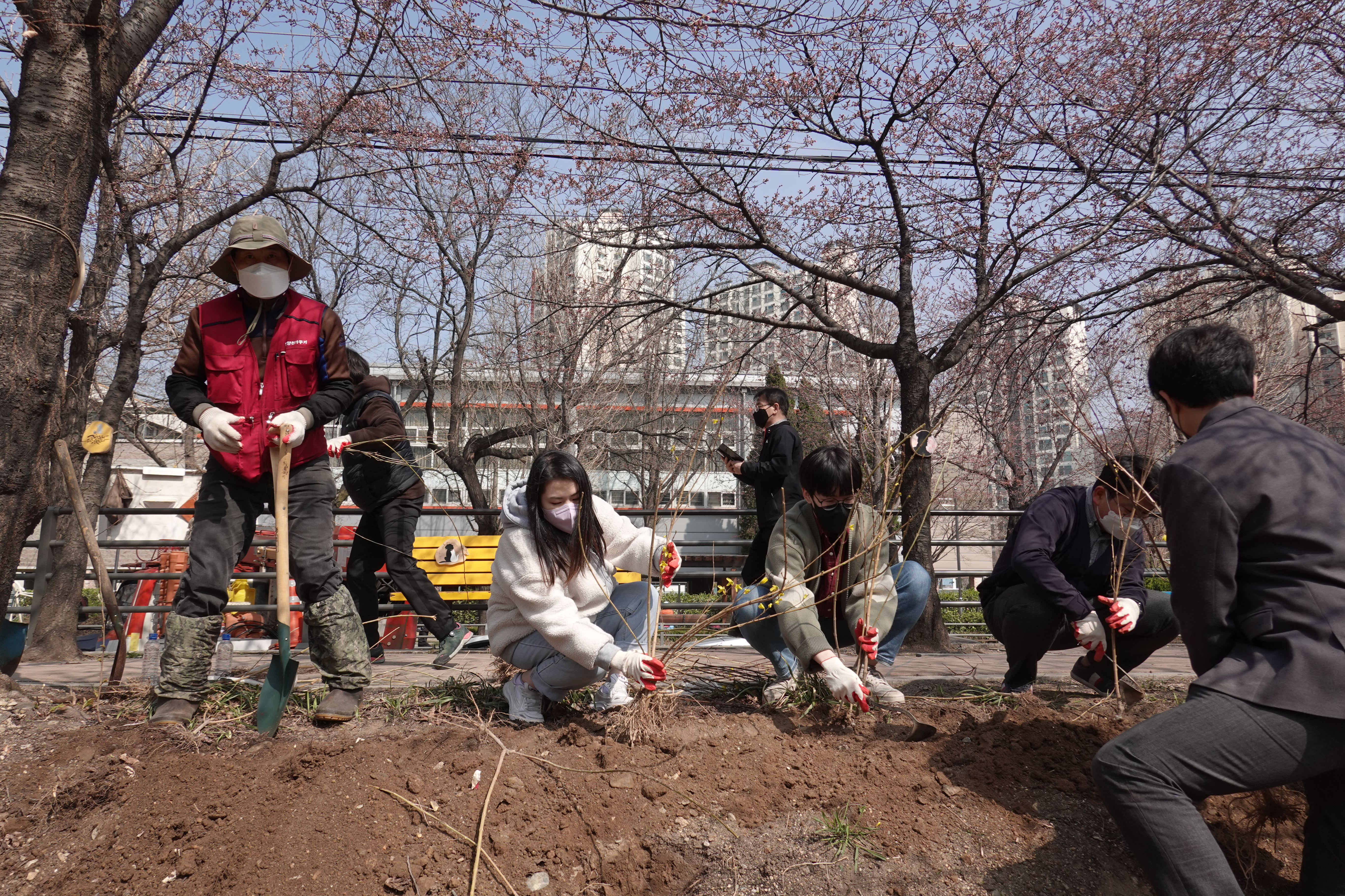도시분과위원회(위원장 장경숙)에서는 지난 6일 안양천 충훈부 벚꽃길 둔치에서 안양시화인 개나리 모종 700여본 식재하는 작업을 전개하였다.
