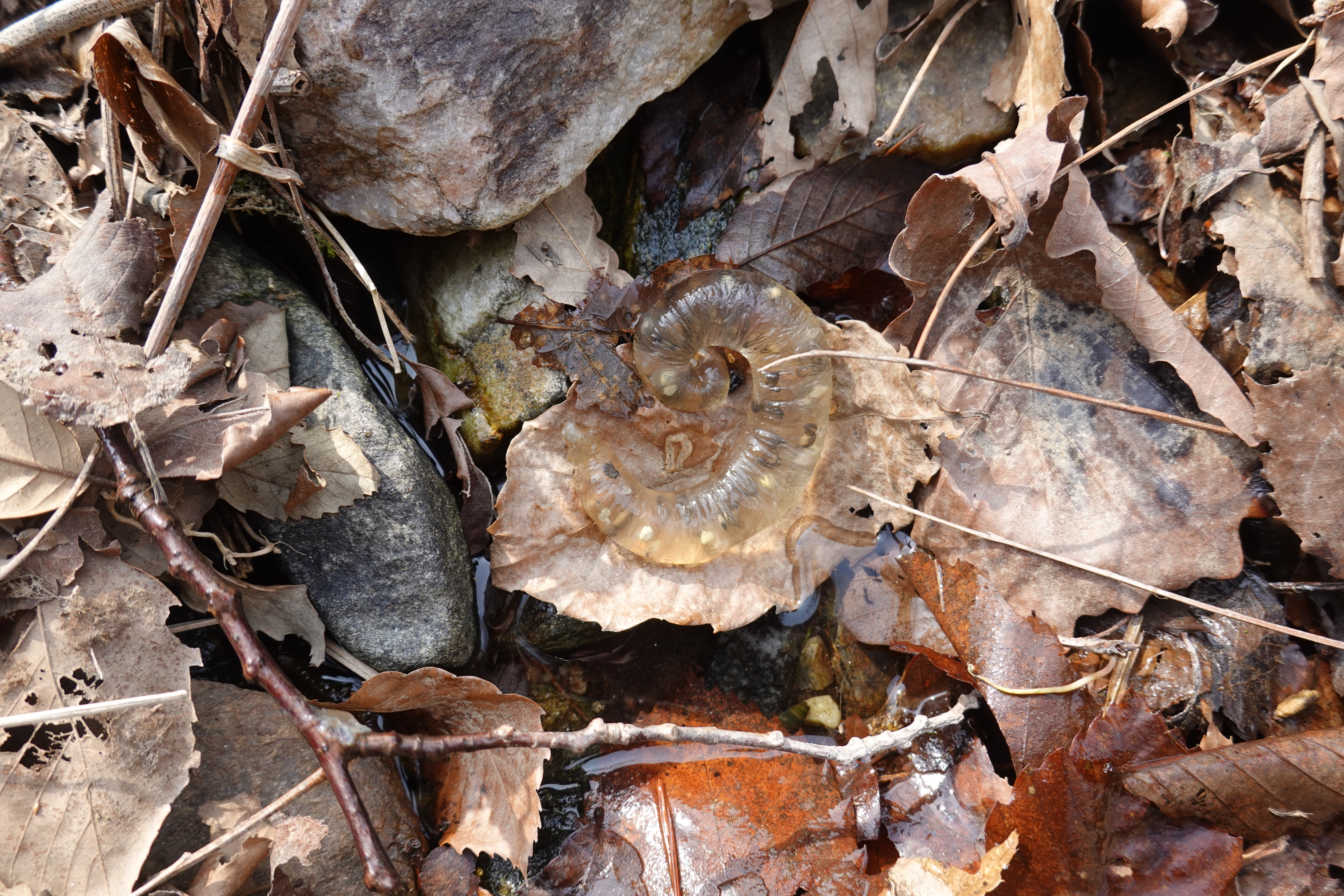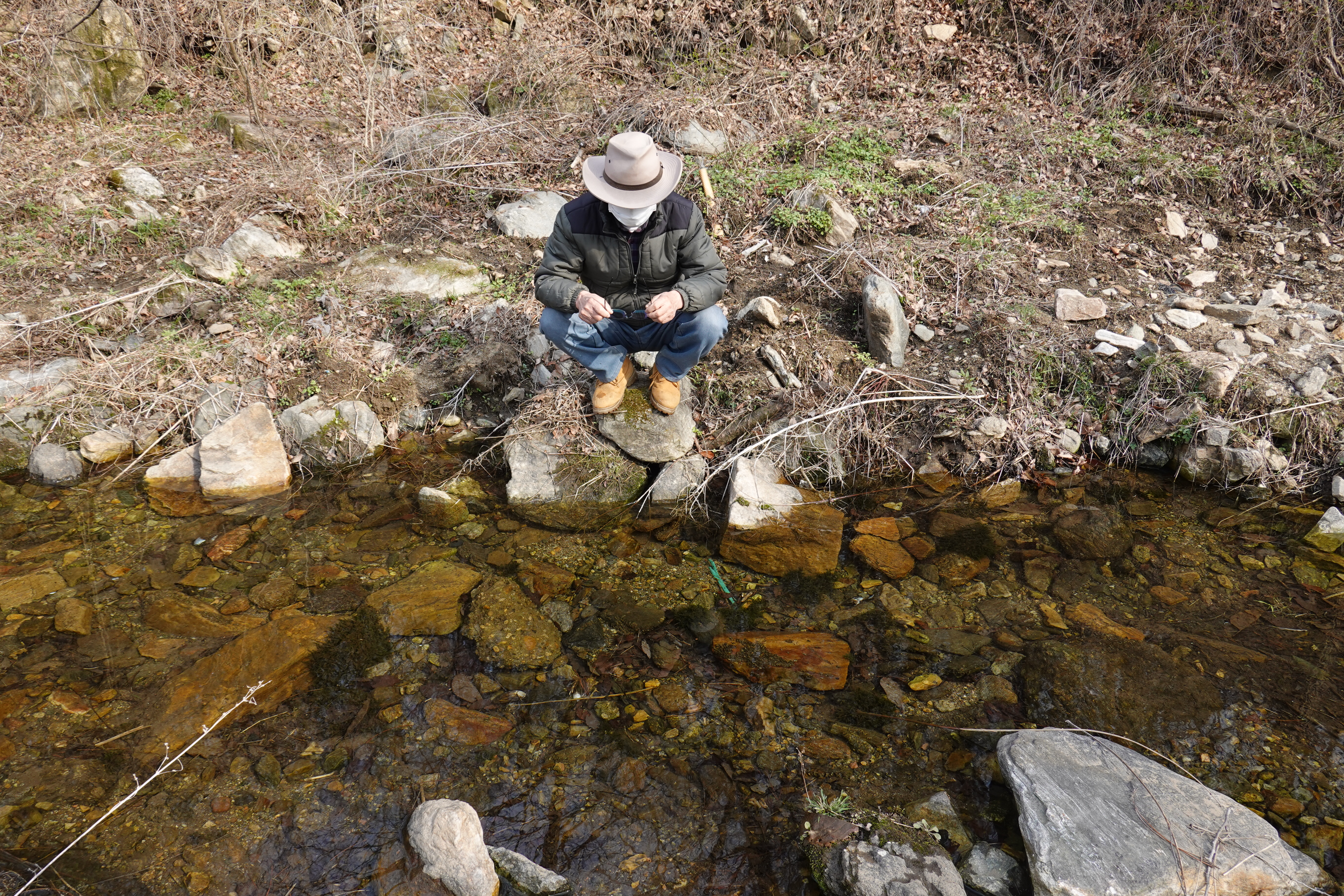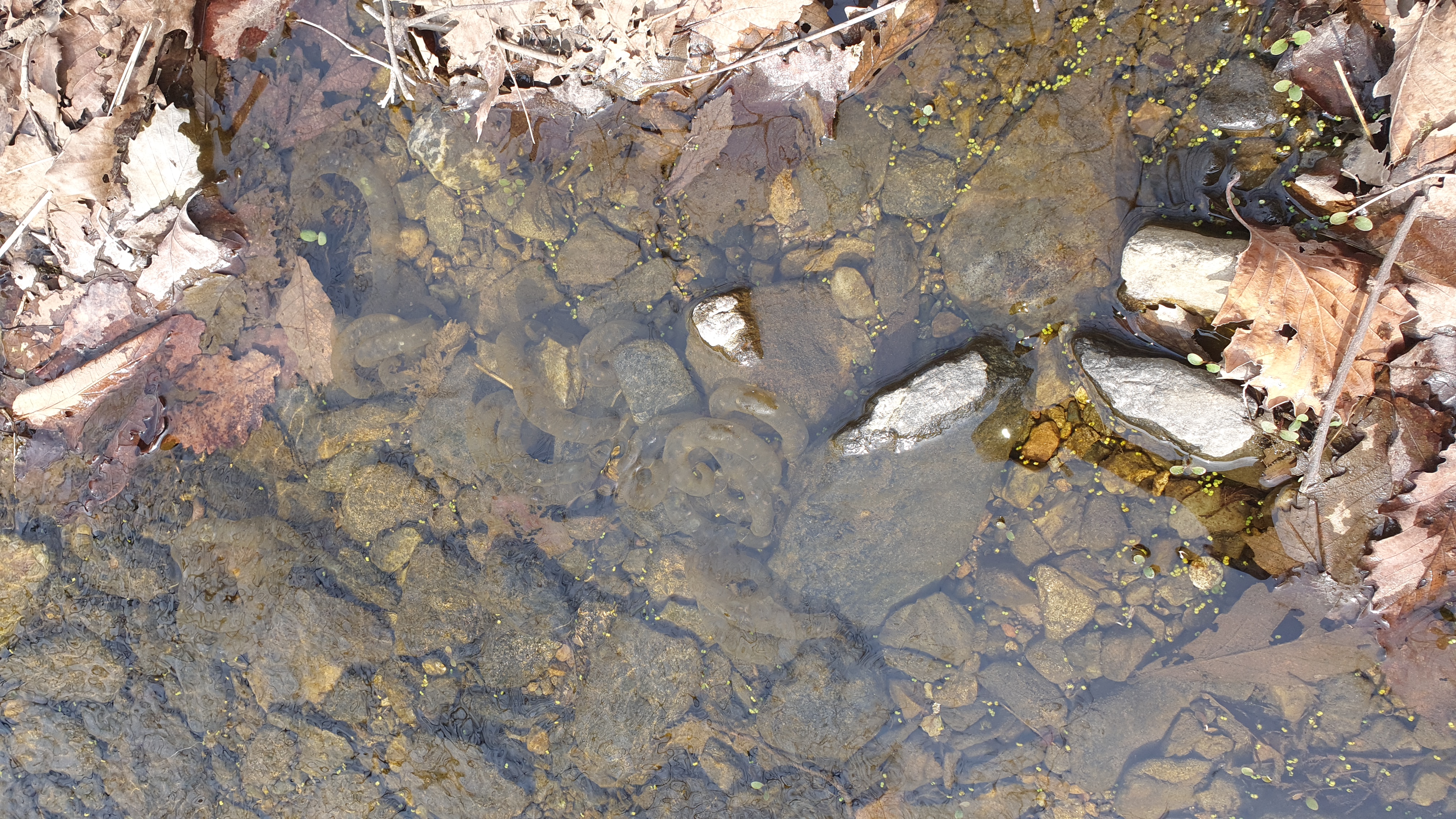 2022.04.05/ #수리산 #수암천 #담배촌 #도룡농알 #SOS/ 수리산 담배촌에 사시는 음악인 노영문 선배님으로 부터 긴급 SOS 요청 전화가 왔다. 집옆 계곡에 있는 도롱뇽 알들이 다 죽게 생겼다고. 부리나케 올라가 봤더니 계곡 도처에 도룡농알들이 지천이다. 안양시가 수암천 상류의 건천화에 대비해 하천수를 펌핑해 올렸는데 고장이 물이 나오질 않아 조만간 계곡에 물이 마르게 되면 알들이 모두 죽는다는 것이다. 작년에도 양동이로 다섯개 정도는 건져올려 구해냈는데 올해도 걱정이란다. 안양시에도 얘기를 했는데 뾰족한 수가 없다는대답이란다.. 계곡을 살펴보니 그래도 상류에서 내려와 흐르는 수량이 제법되고 고인물도 곳곳에 있어 당장 걱정할 정도는 아니다. 하지만 물가 돌과 낙엽을 들쳐보니 말라 죽어가는 도륭농알이 꽤나 많다. 살릴 방법을 찾아야겠다.