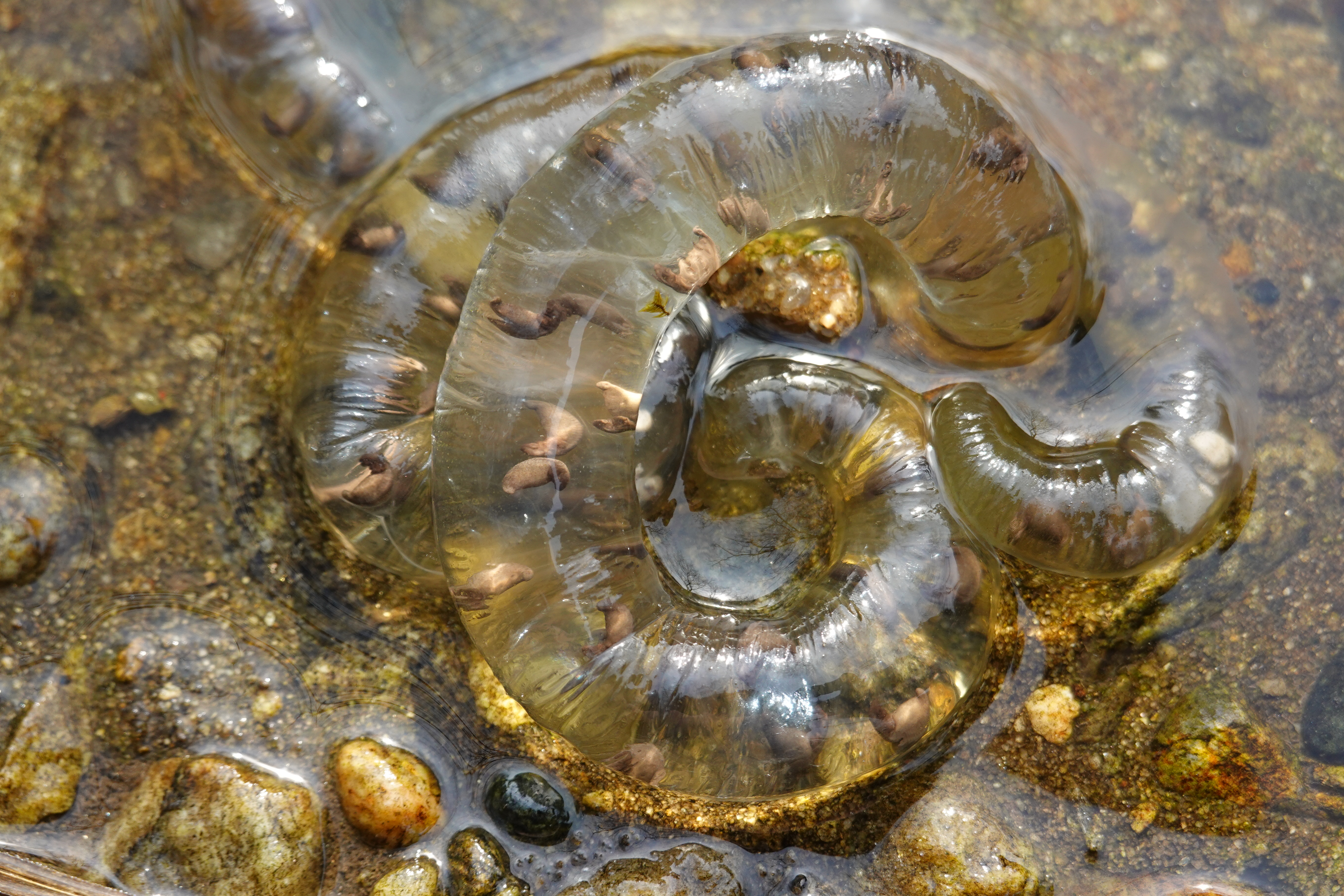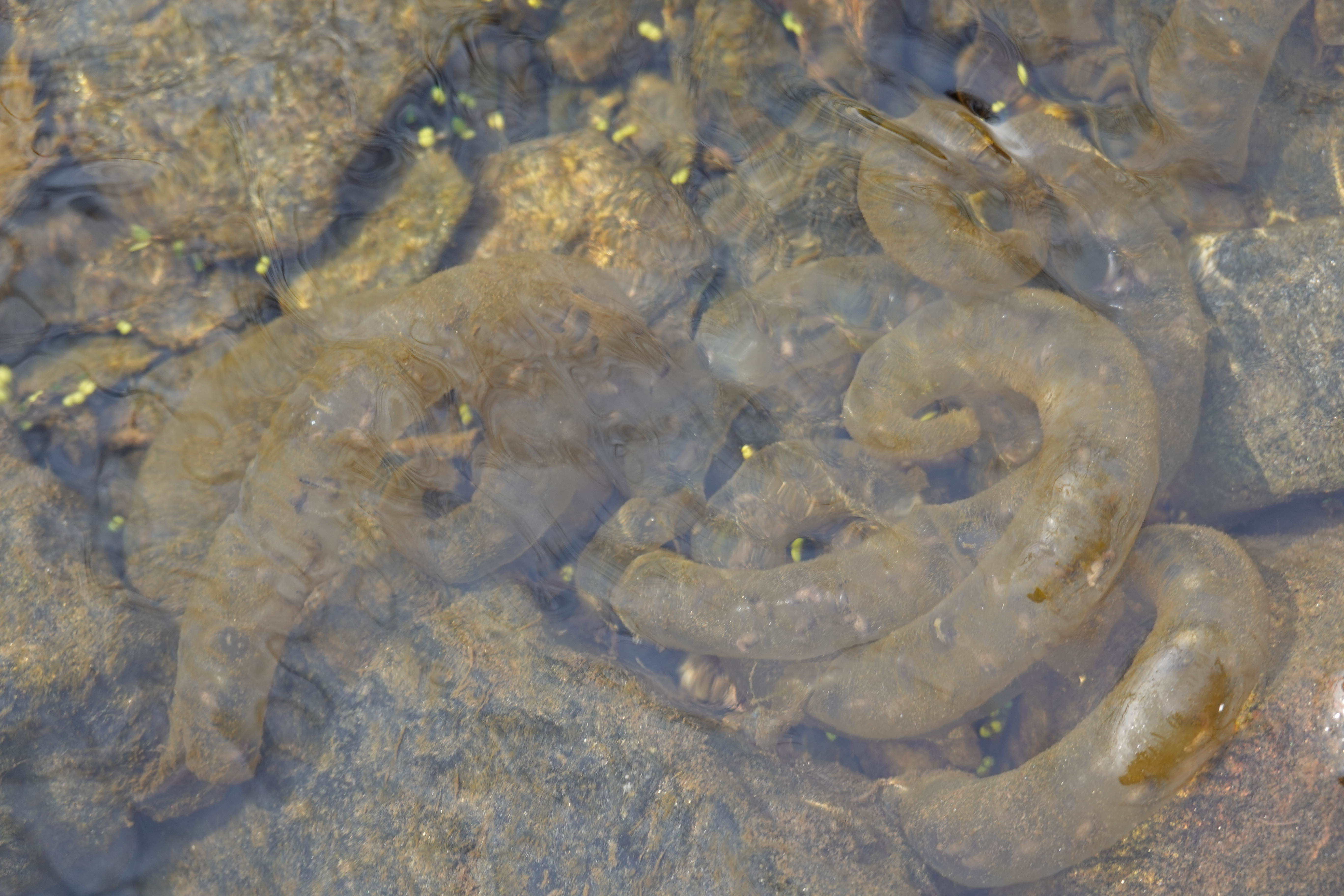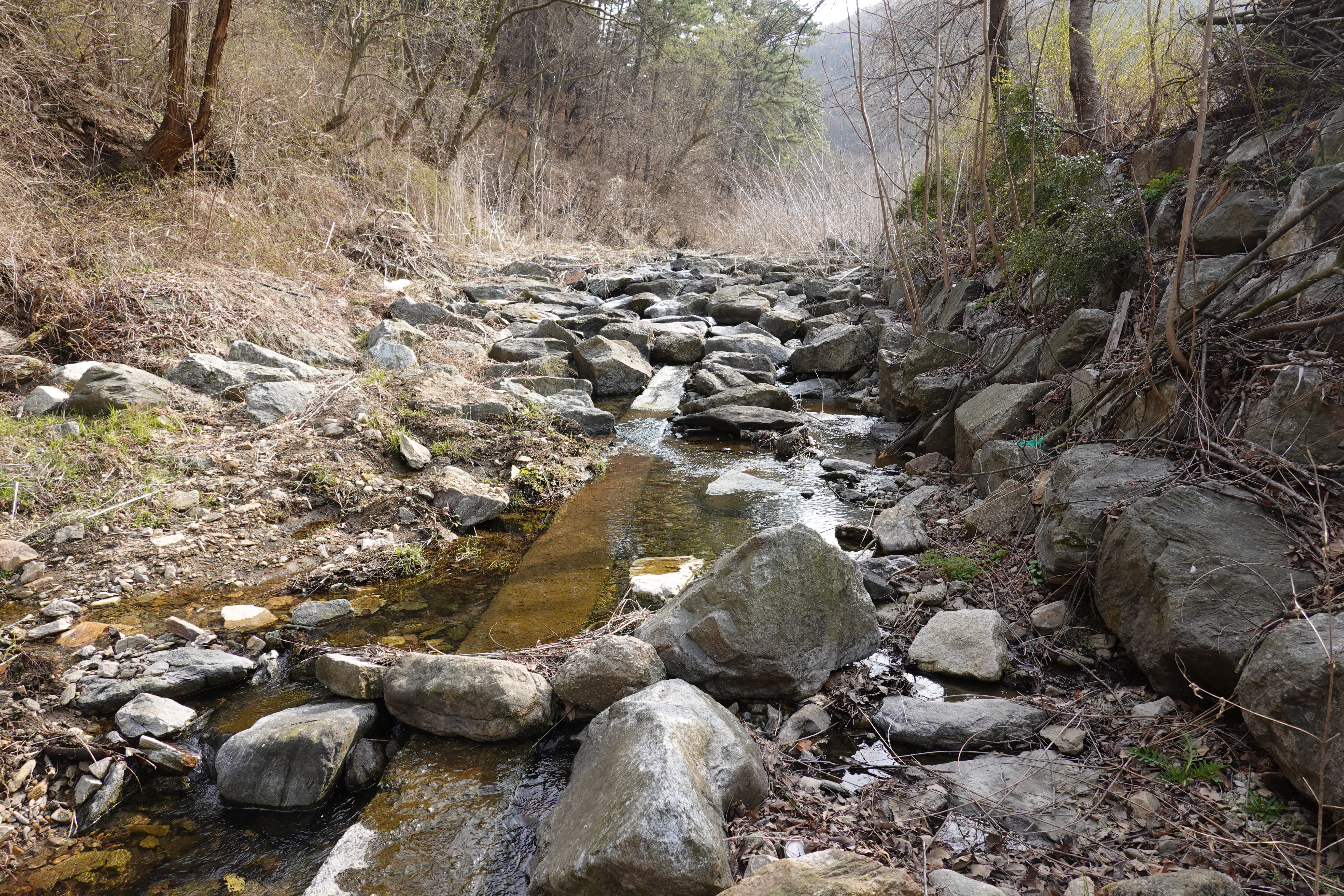 2022.04.05/ #수리산 #수암천 #담배촌 #도룡농알 #SOS/ 수리산 담배촌에 사시는 음악인 노영문 선배님으로 부터 긴급 SOS 요청 전화가 왔다. 집옆 계곡에 있는 도롱뇽 알들이 다 죽게 생겼다고. 부리나케 올라가 봤더니 계곡 도처에 도룡농알들이 지천이다. 안양시가 수암천 상류의 건천화에 대비해 하천수를 펌핑해 올렸는데 고장이 물이 나오질 않아 조만간 계곡에 물이 마르게 되면 알들이 모두 죽는다는 것이다. 작년에도 양동이로 다섯개 정도는 건져올려 구해냈는데 올해도 걱정이란다. 안양시에도 얘기를 했는데 뾰족한 수가 없다는대답이란다.. 계곡을 살펴보니 그래도 상류에서 내려와 흐르는 수량이 제법되고 고인물도 곳곳에 있어 당장 걱정할 정도는 아니다. 하지만 물가 돌과 낙엽을 들쳐보니 말라 죽어가는 도륭농알이 꽤나 많다. 살릴 방법을 찾아야겠다.