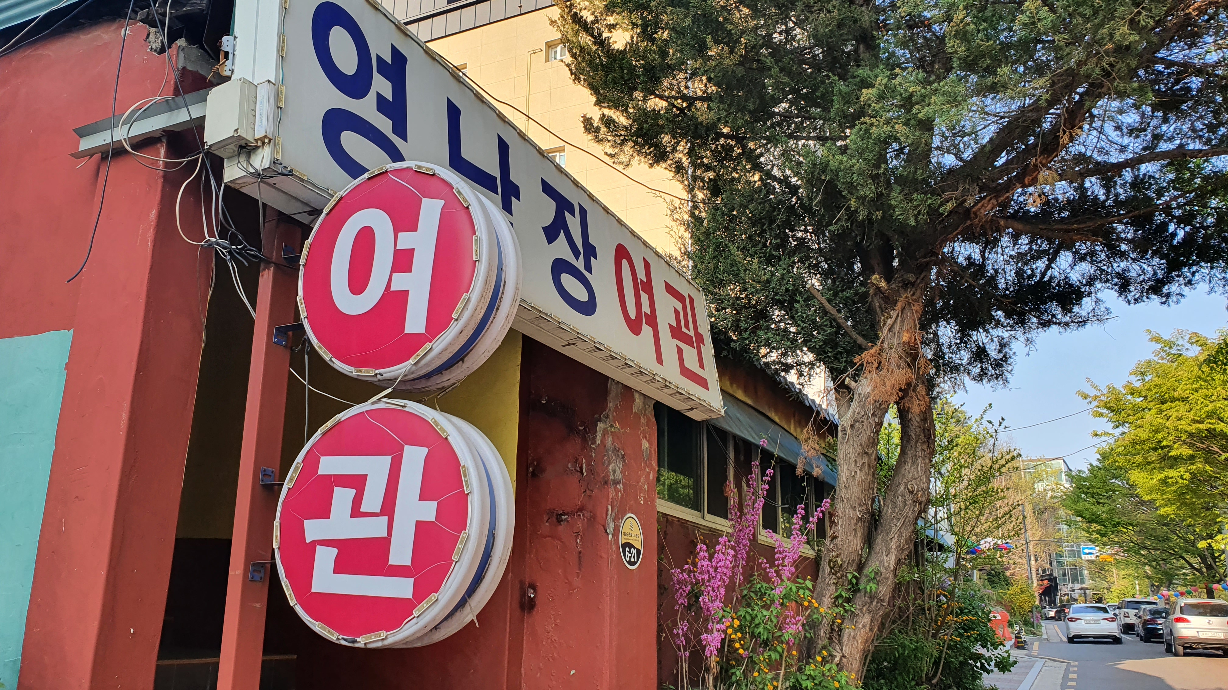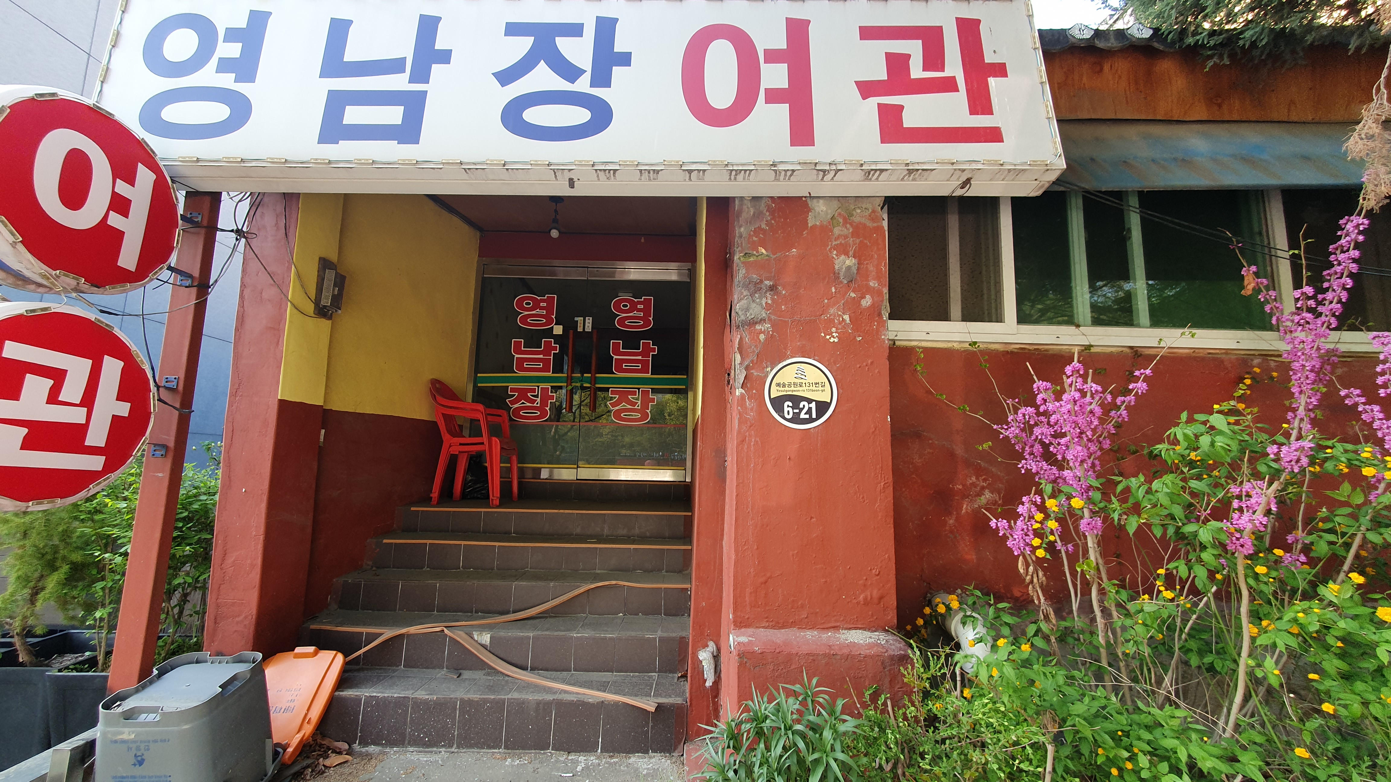2022.04.19/ #시간멈춤 #영남장여관 #안양예술공원 #옛안양풀 #옛안양유원지/ 일제강점기인 1933년 개장한 안양풀. 안양유원지-안양예술공원으로 이어져 오면서 옛 흔적들중 유일하게 남아있는 영남장여관. 여관앞 하천 중앙에는 일본어로 새긴 안양풀(안양 풀 pool) 표지석이 박혀 있다.‘ 자연석으로 된 거대한 암반의 초석에는 '안양 풀 소화 7년 8월 준공(安養 プ-ル 昭和 七年 八月 竣工)'이라는 일본연호 명문과 ‘마쓰모도(松本)’라는 공사 책임자의 이름도 표기했는데 안양시가 2003년 안양유원지 재개발을 실시할때 제1.2풀을 없애고 돌로 뚝을 쌓으면서 표지석 하단 일부가 콘크리트 속에 파묻혀 일부 글씨는 보이지 않는다.