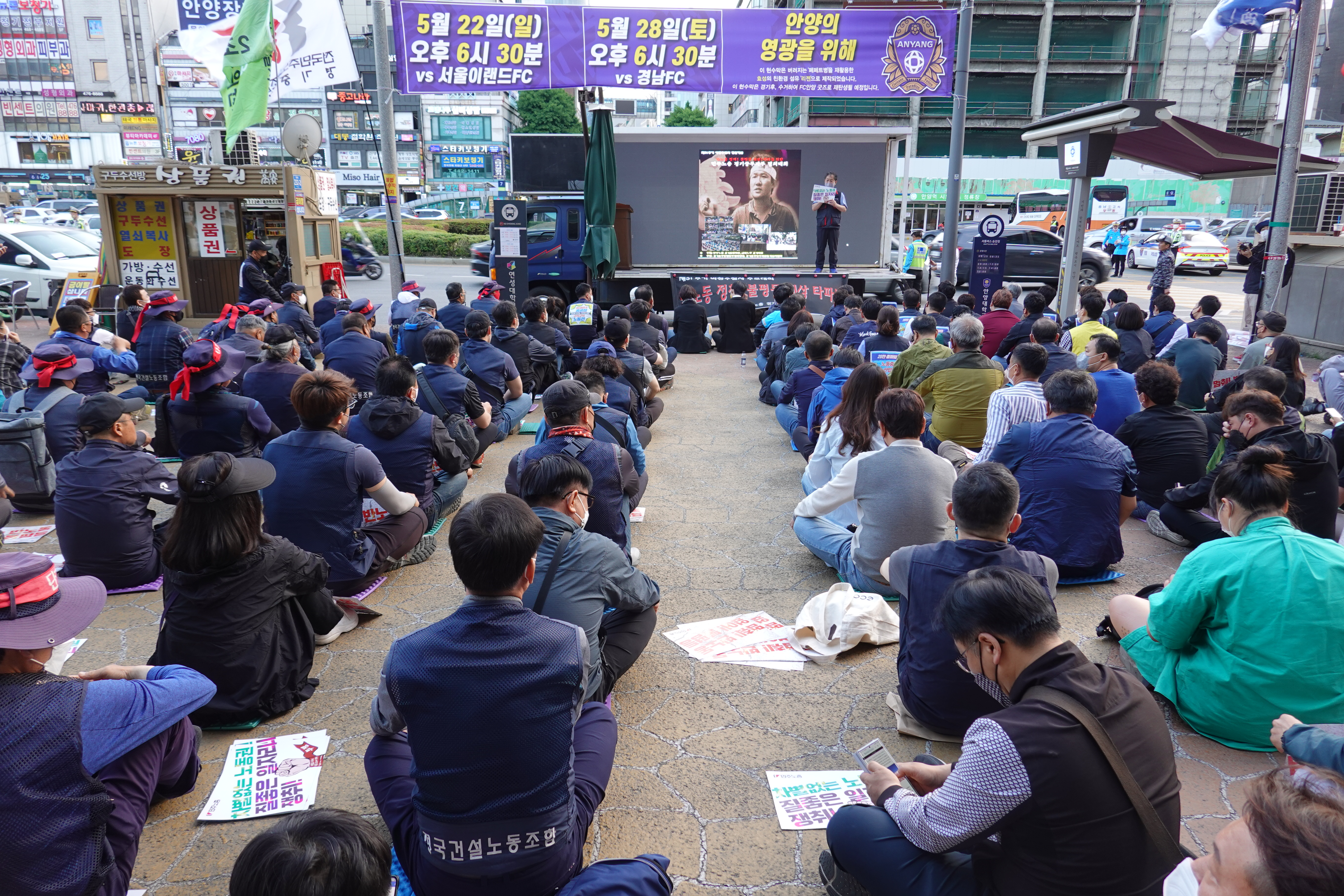 2022.05.13/ #안양 #행사 #박창수 #안양역 #샘병원 #거리행진/ 민주노총경기중부지부 결의대회 및 안양샘병원에서 의문사를 당한 박창수 열사 31주기 추모제가 안양역에서 열렸다.