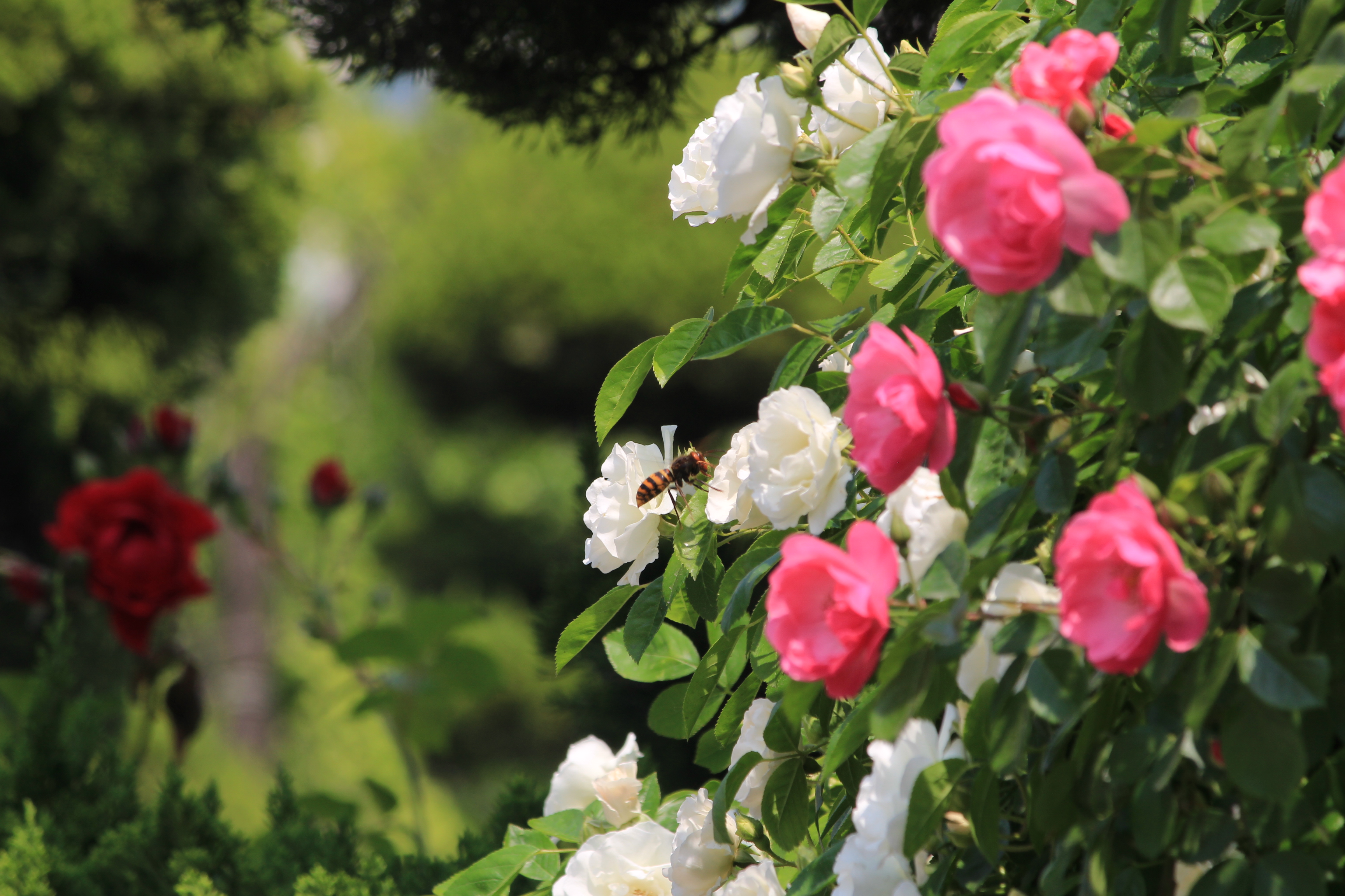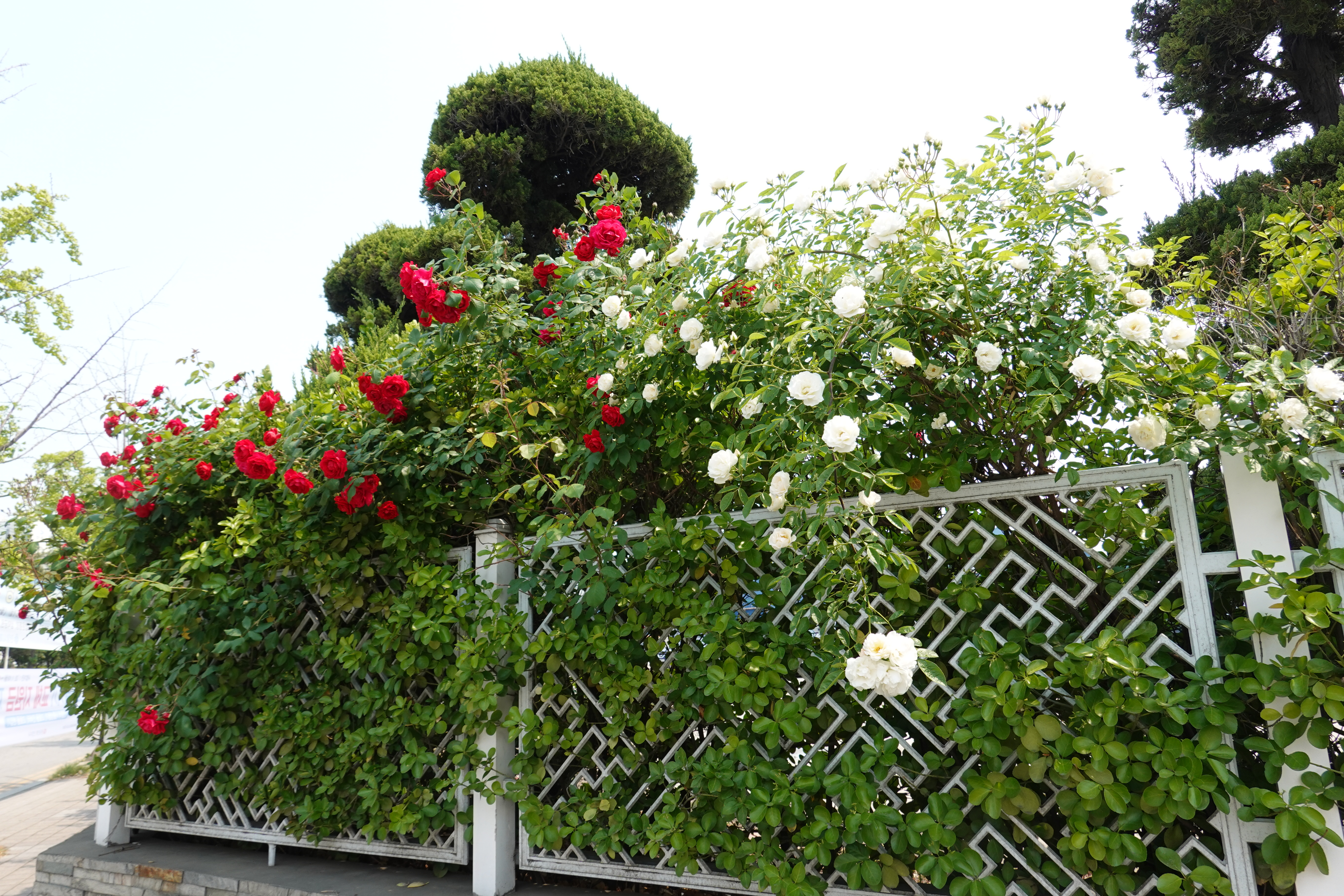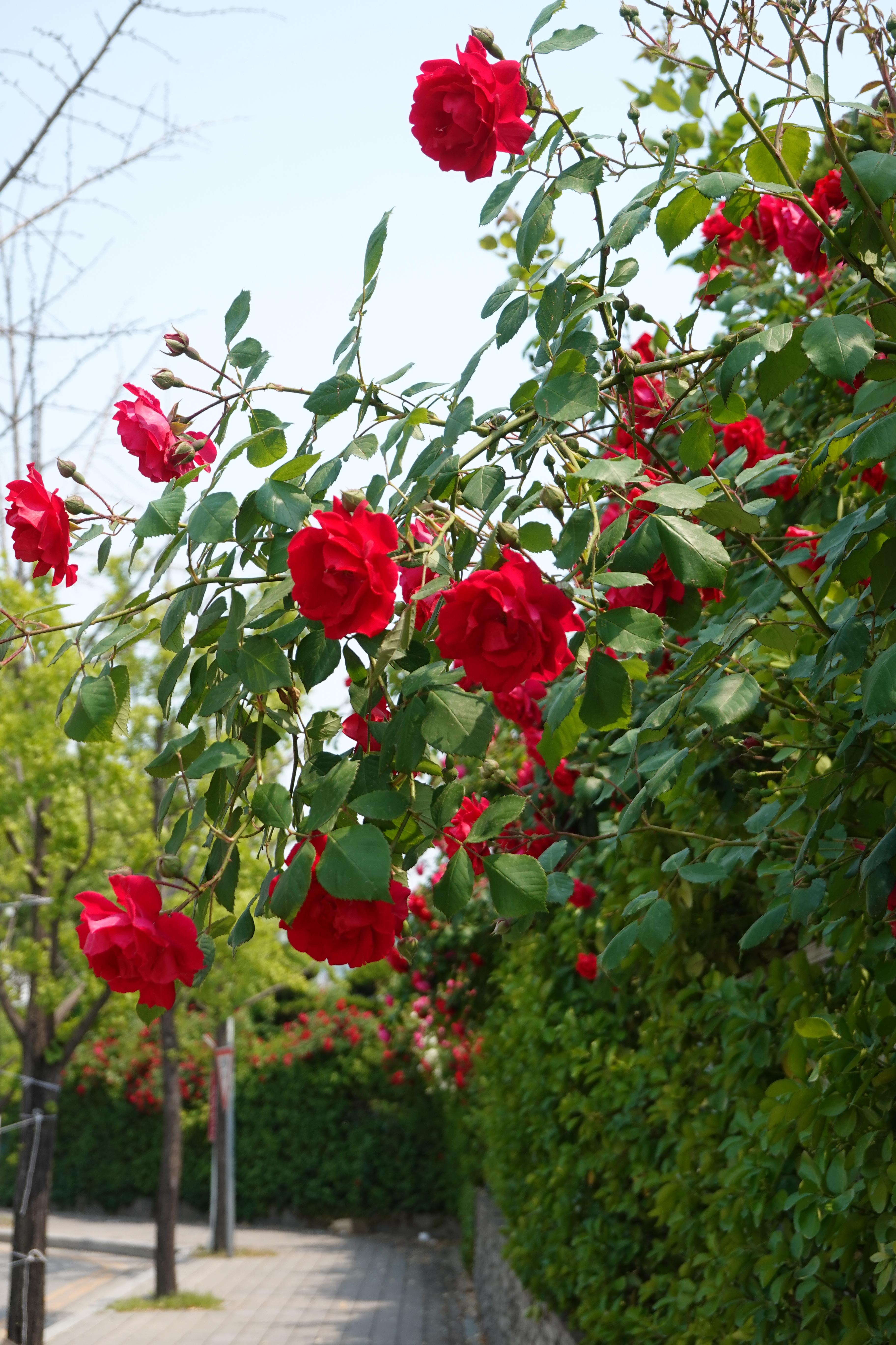 2022.05.18/ #장미 #오월 #효성안양공장/ 꽃구경 오세요!!! 매년 5월이 되면 장미꽃이 만발하는 안양 호계동 효성 안양공장 담벼락. 차를 타고 지나는길에 보니 장미꽃이 만발. 급히 달려갔지요. 빨간장미, 분홍장미와 더불어 보기드문 하얀장미까지 화려한 자태를 뽐내고 있네요. 그 무엇보다 반갑던것은 많지는 않지만 서너마리의 벌이 윙윙 날아다니는 것.