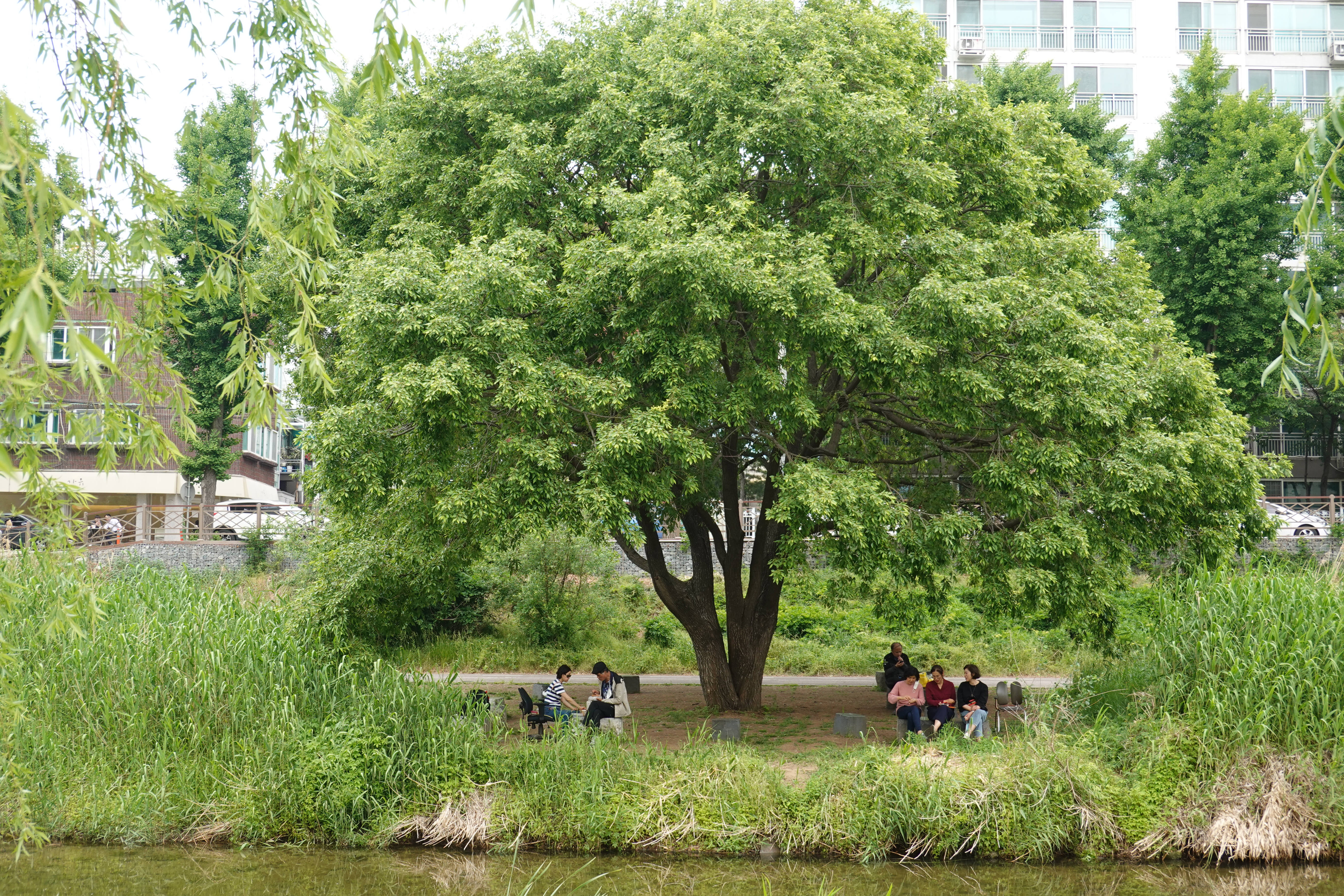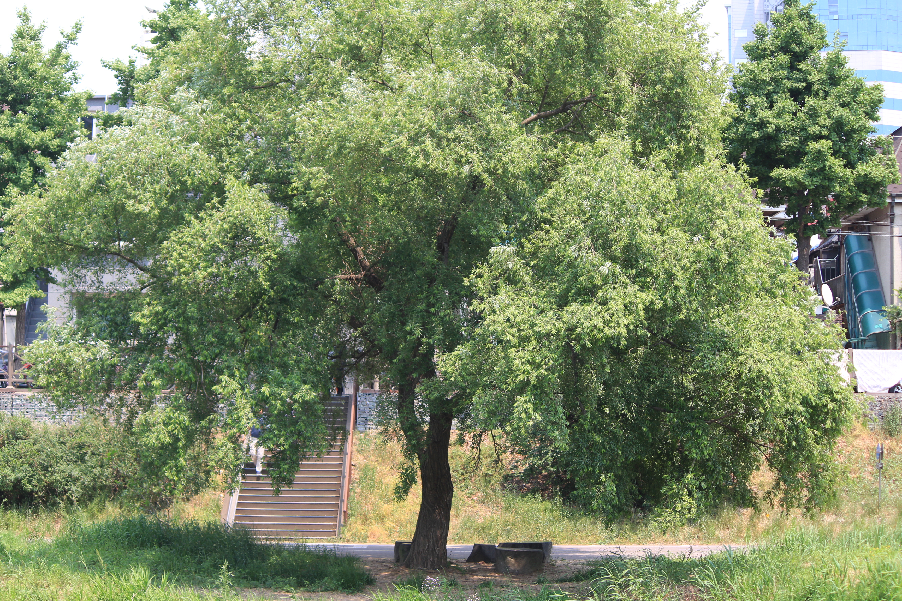 2022.05.18/ #선버들 #학의천 #도시산책 #안양 / 학의천을 걷다 더위를 피할수 있는 그늘을 잠깐의 쉼을 제공해 주는 멋진 나무를 만난다. 이 나무는 버드나무 종류중 하나인 선버들로 학의천 북단 산책로변인 안양 관양동 인덕원 인도교 옆에 있다. 이같은 나무들이 천변 곳곳에 있으면 좋으련만 안양시는 안양시가 장마철 비가 많이 올 경우 부유물이 걸린다는 이유(치수대책)와 건설교통부 하천관리기준을 근거로 수년전부터 안양천과 학의천의 나무을 베어내는 과정에서 수십년을 잘 자라온 나무에서 밑둥이 굵은 아름드리 나무까지 모조리 짤라버렸다.