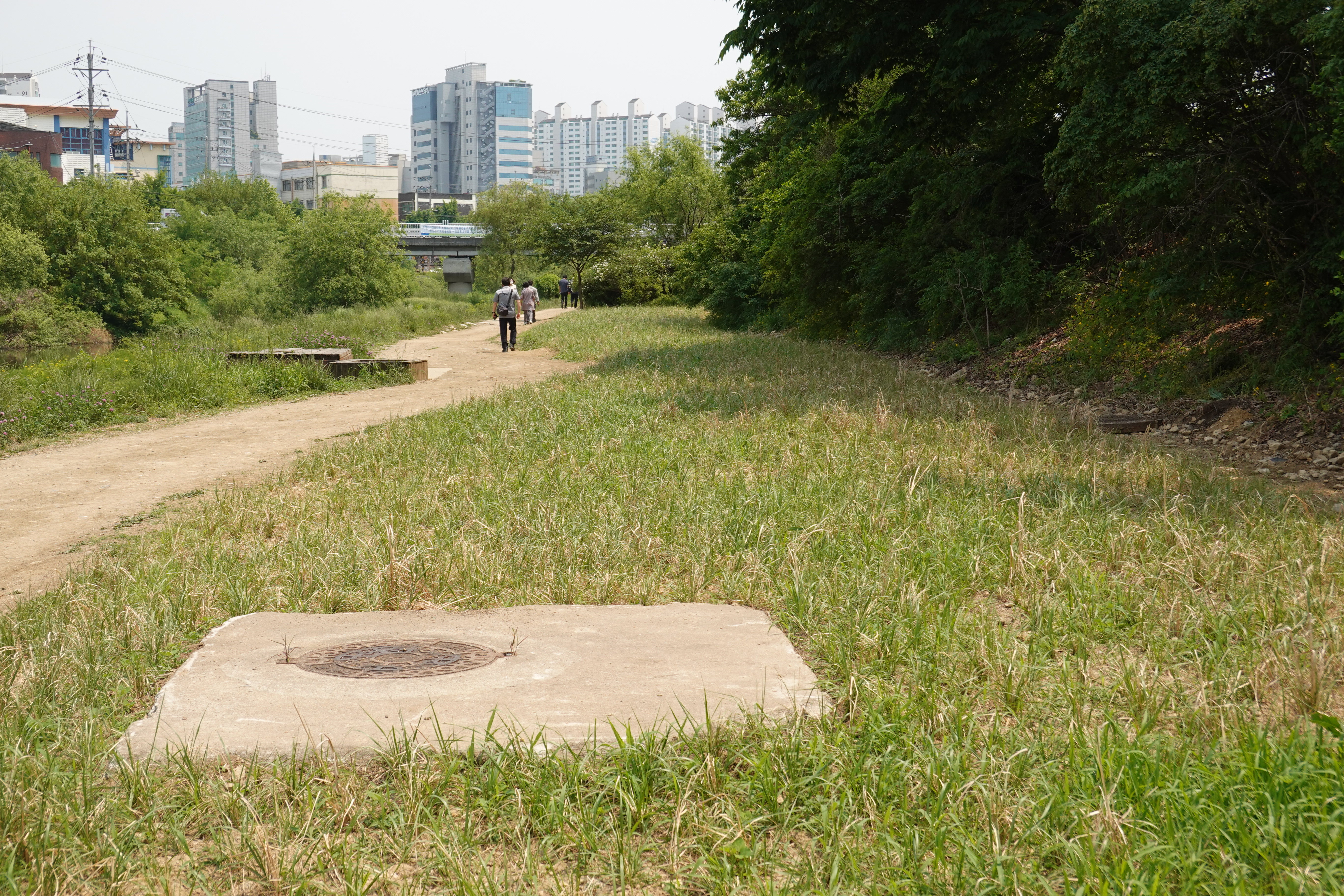 2022.05.18/ #학의천 #도시산책 #하천풍경 #관양2동/ 안양시가 생태하천임을 자랑하던 학의천이 점차 인공하천으로 바뀌고 있다. 자연 그대로 두면 좋으련만, 천변에 꽃밭을 만들고, 허허벌판을 만들더니 수꾸렁 군락지를 만들었다. 참고로 사진속 지역은 관양2동이고 안양시에는 (생태) 명칭을 붙인 생태하천과도 있다.