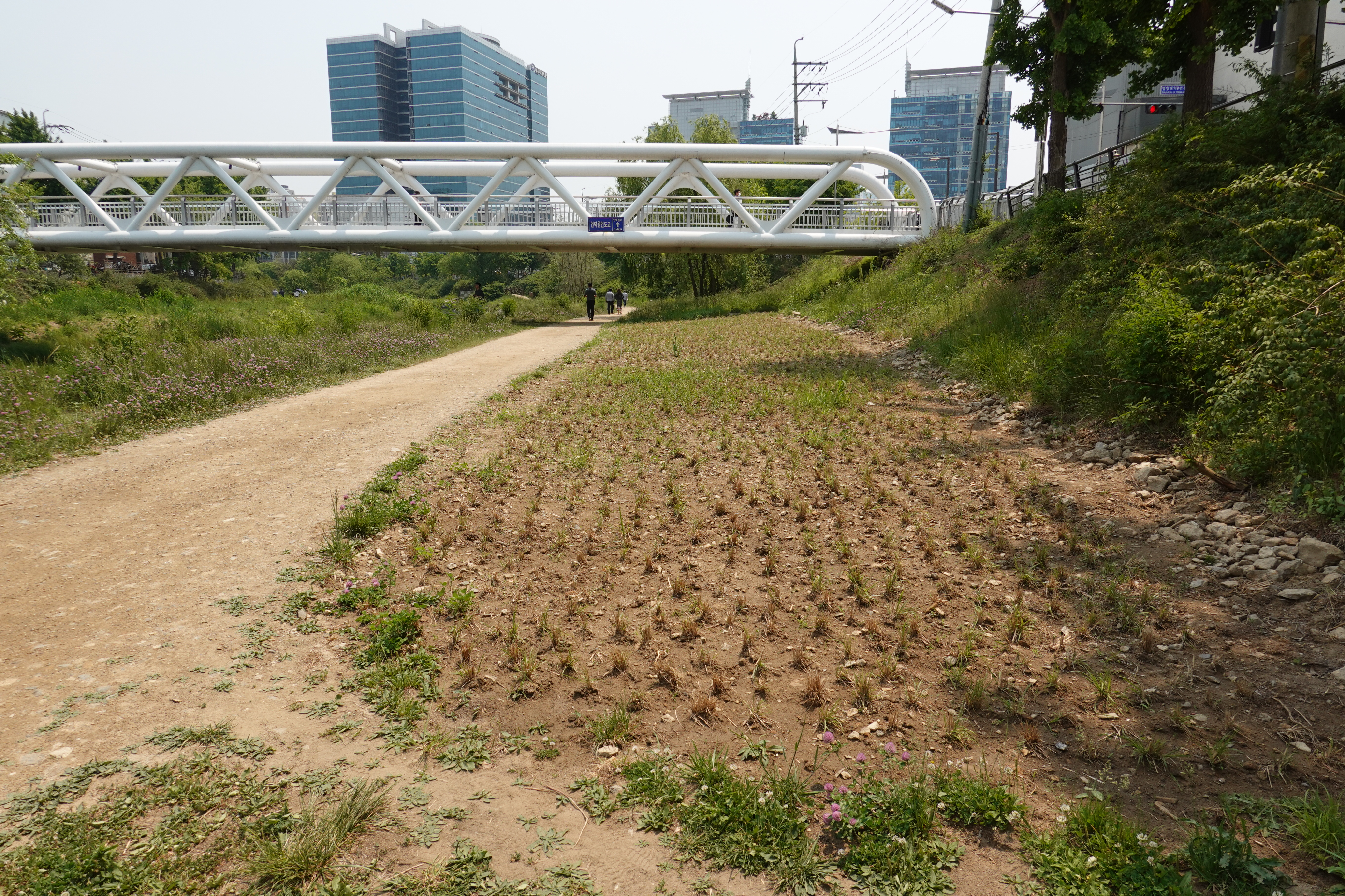 꼬리명주나비의 기주식물인 쥐방울덩굴군락지가 사라졌다는 안양군포의왕환경운동연합의 소식을 접하고 18일 현장에 가보았습니다.. 가서 보니 지난 2021년에도 있었던 쥐방울덩굴 군락지를 완전히 없애고 수쿠렁인지를 심었네요.