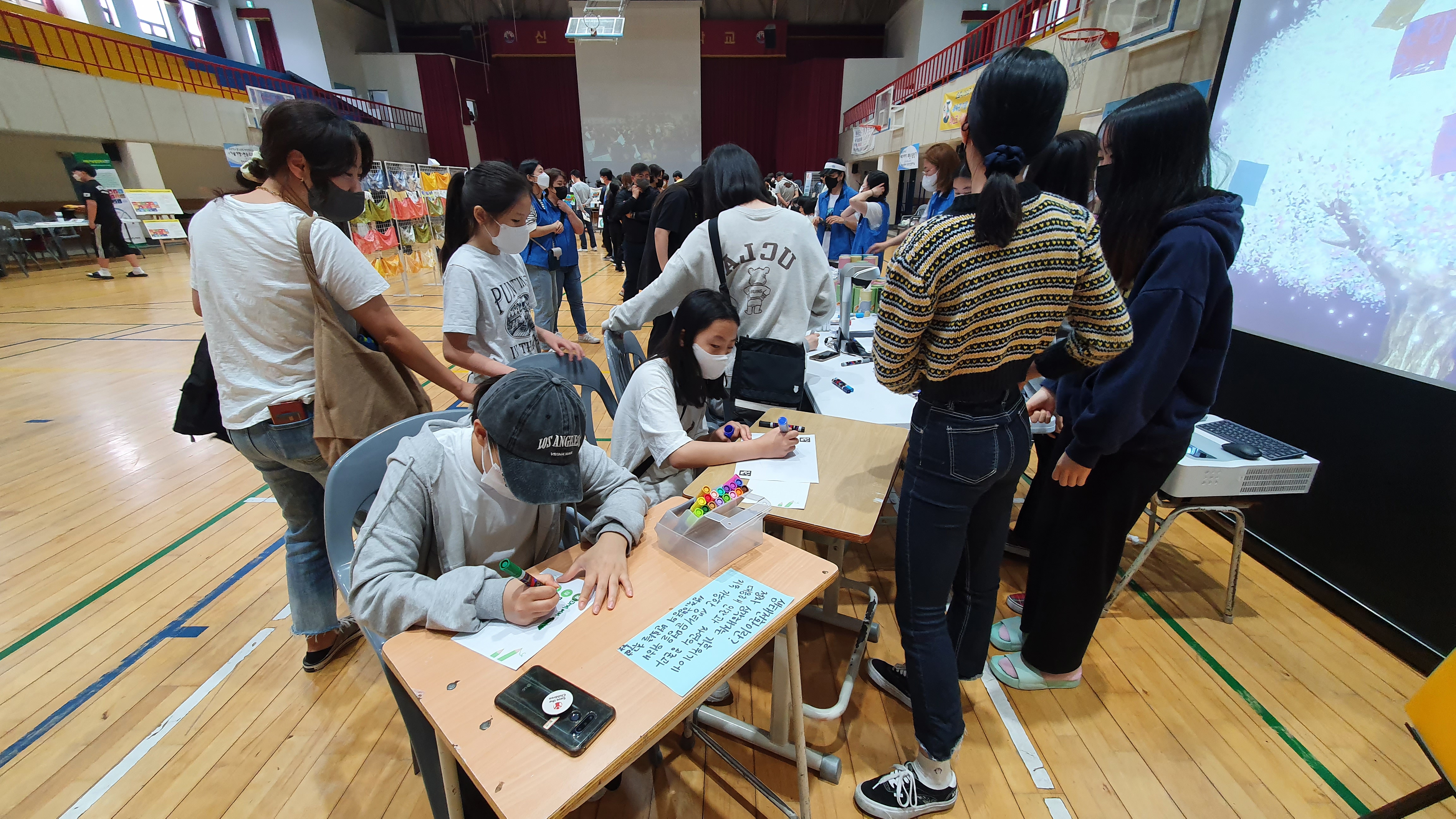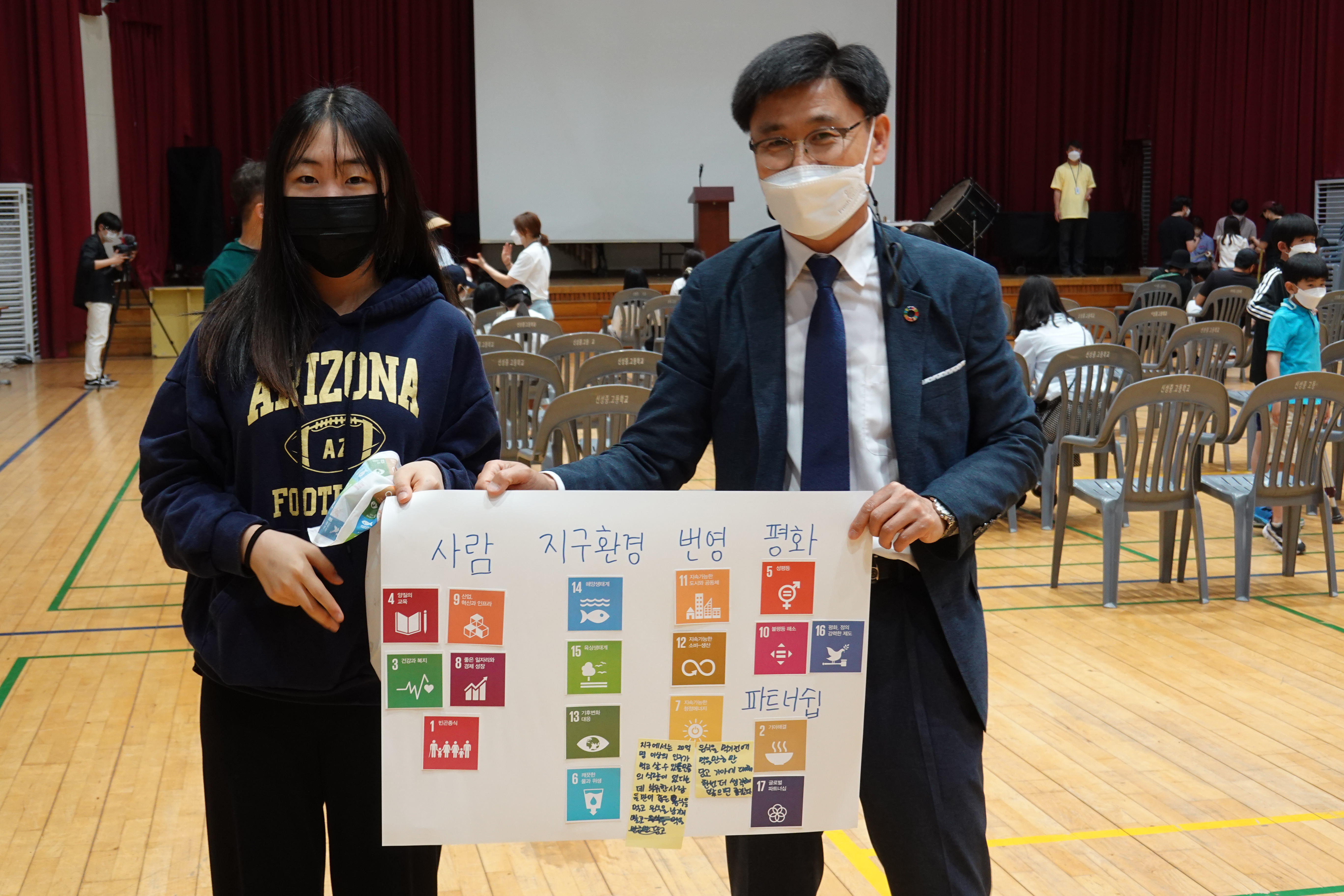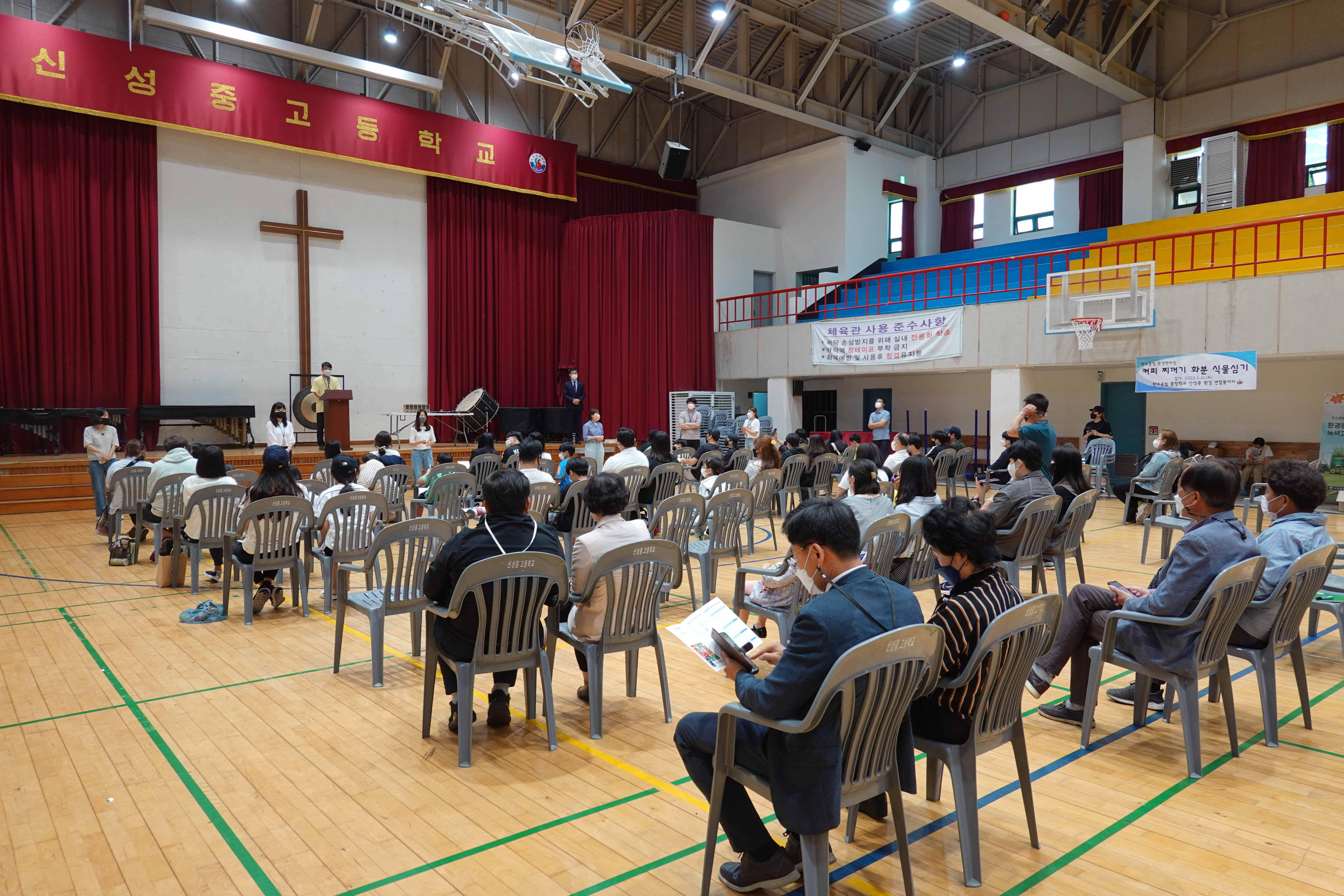 한편 이날 행사에 앞서 체육관 안팎에서는 신성중학교 환경동아리, 신성중학교 학부모 환경동아리, 안양시지속가능발전협의회에서 준비한 환경교육 산출물 전시와 환경 체험부스가 펼쳐졌다.