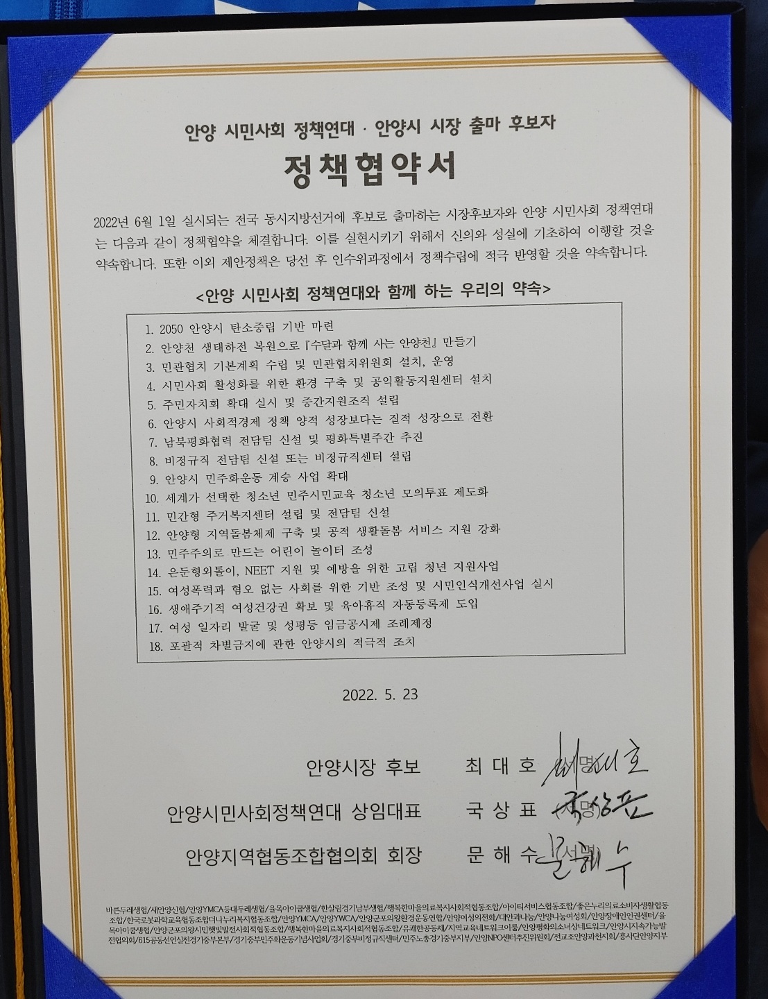 2022.05.23/ #안양 #6.1지방선거 #정책협약 #안양시민사회정책연대