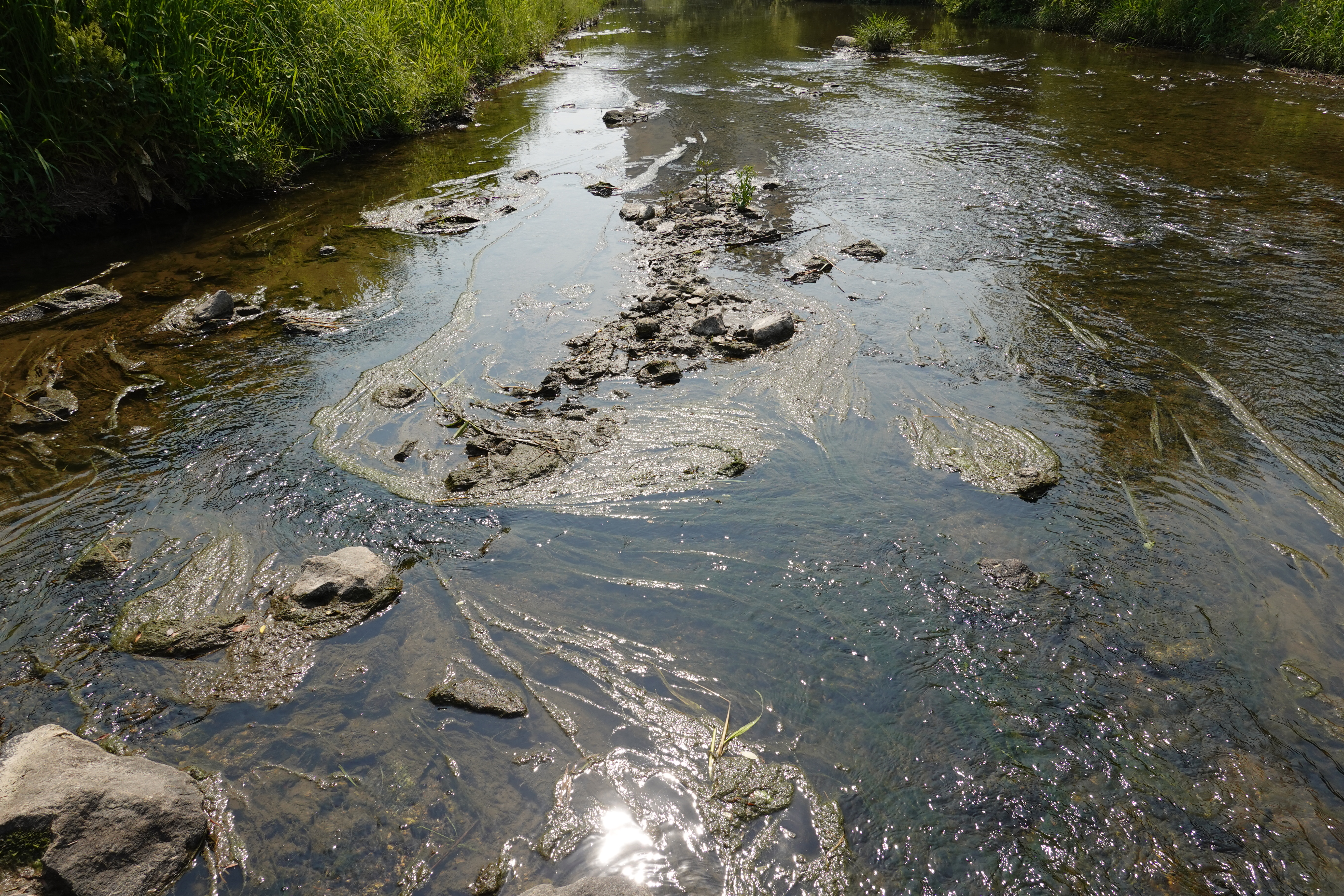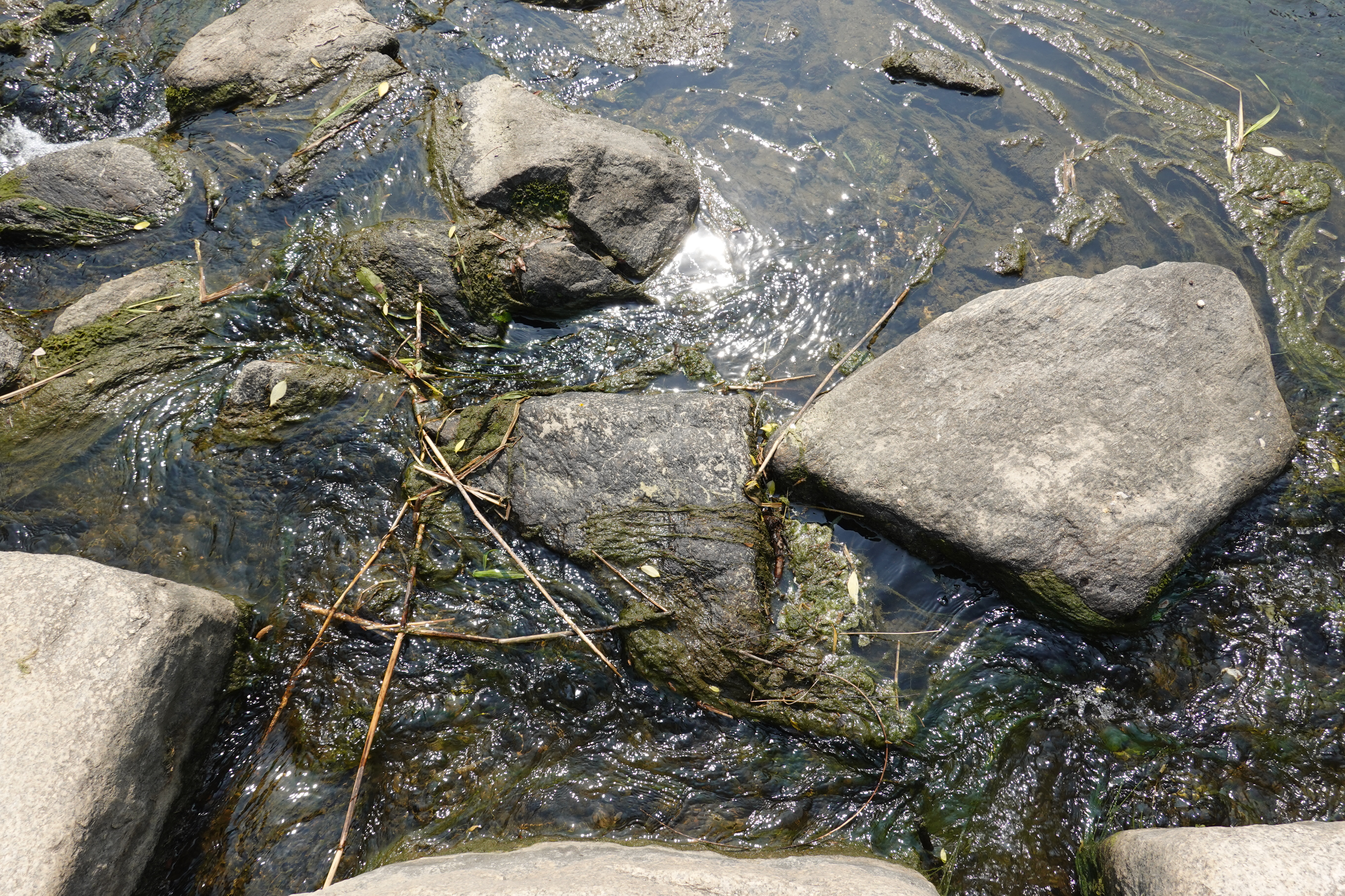 2022.05.22/ #학의천 #녹조현상 #갈수기 #안양 #도시기록 안양 학의천을 걷다보면 녹조현상이 심각한것을 볼 수있다. 갈수기에 접어들어 흐르는 물이 적어서일까. 냄새도 나고....사진은 학운공원앞 돌다리 주변의 모습이다.