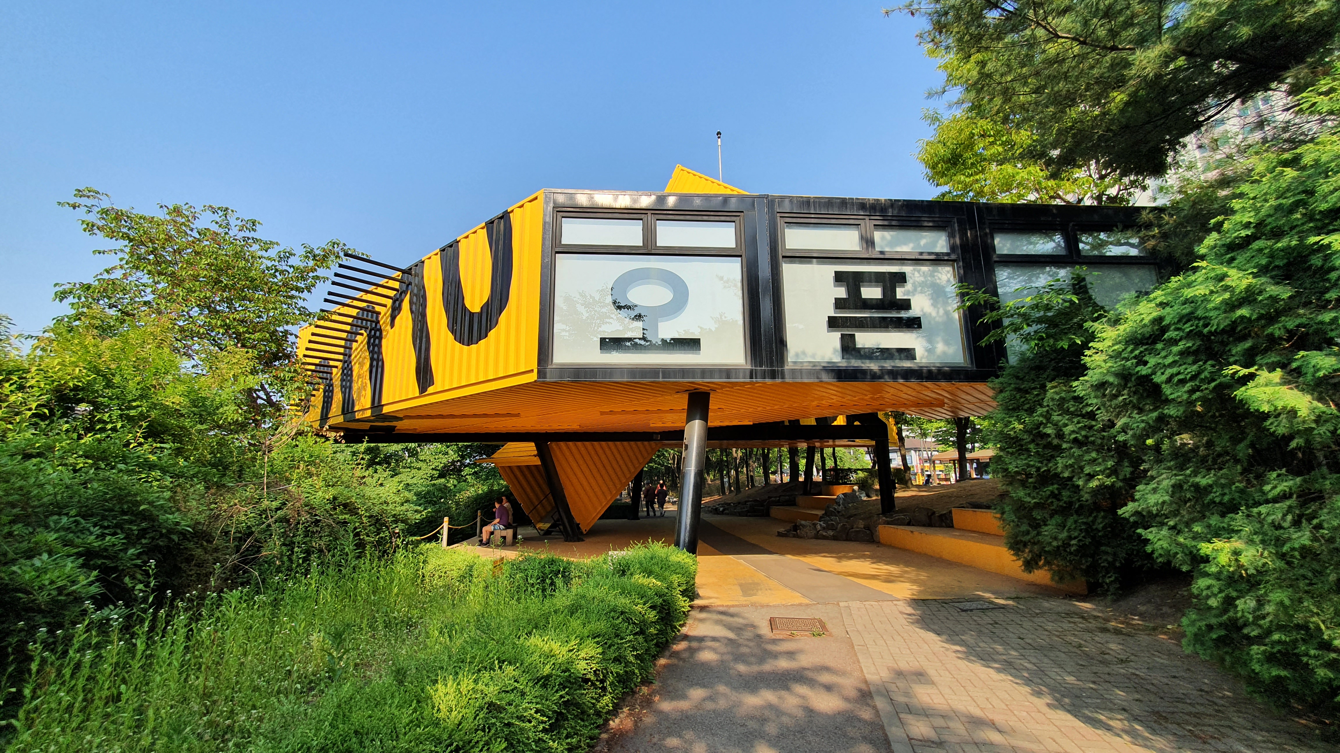 20220522/ #오픈스쿨 #apap #학운공원 #안양 #학의천 #내비산교 #새동네/ 학의천변 학운공원 B구역의 2010 APAP 공공예술플젝트 아지트(새동네)에 있는 영구작품인 오픈스쿨. 페인트칠이 벗져지고 녹이 슬어 부식되는 등 안양문화에술재단의 apap 작품 관리에 대한 문제점을 몇번 지적했더니 새롭게 페인트칠을 하고 깔끔하게 새단장을 했네요. 보기 좋아요. 감사합니다.
