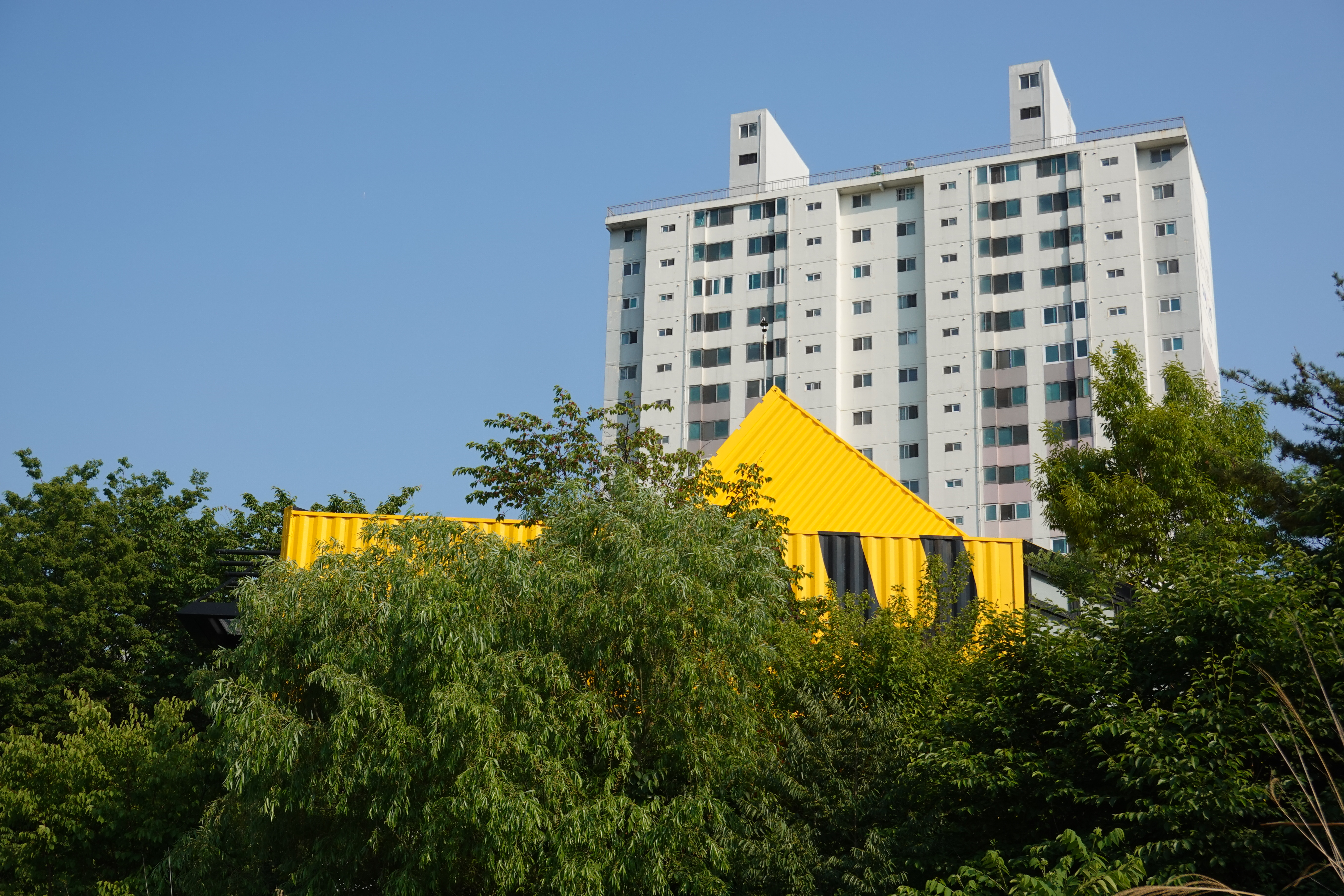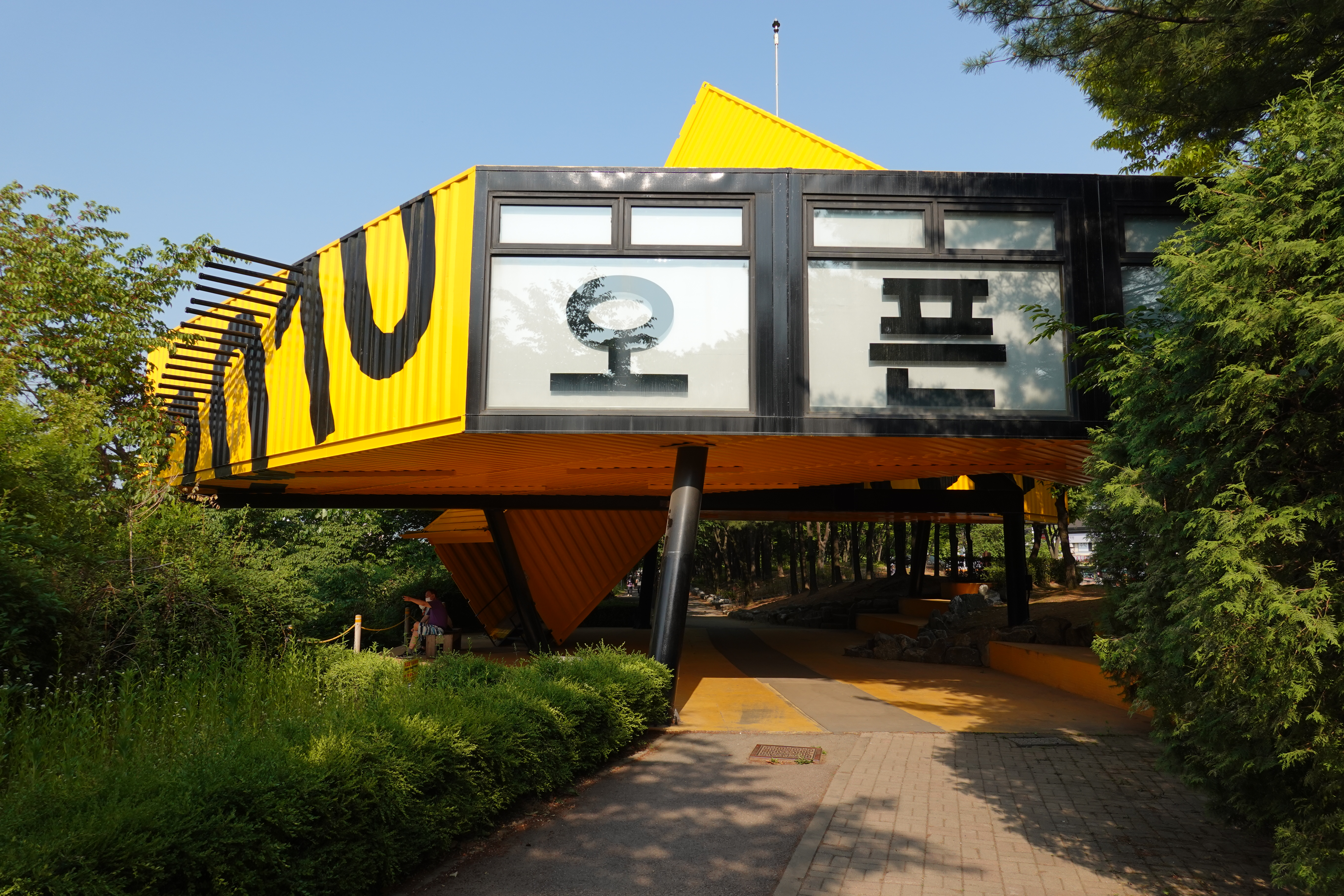 20220522/ #오픈스쿨 #apap #학운공원 #안양 #학의천 #내비산교 #새동네/ 학의천변 학운공원 B구역의 2010 APAP 공공예술플젝트 아지트(새동네)에 있는 영구작품인 오픈스쿨. 페인트칠이 벗져지고 녹이 슬어 부식되는 등 안양문화에술재단의 apap 작품 관리에 대한 문제점을 몇번 지적했더니 새롭게 페인트칠을 하고 깔끔하게 새단장을 했네요. 보기 좋아요. 감사합니다.