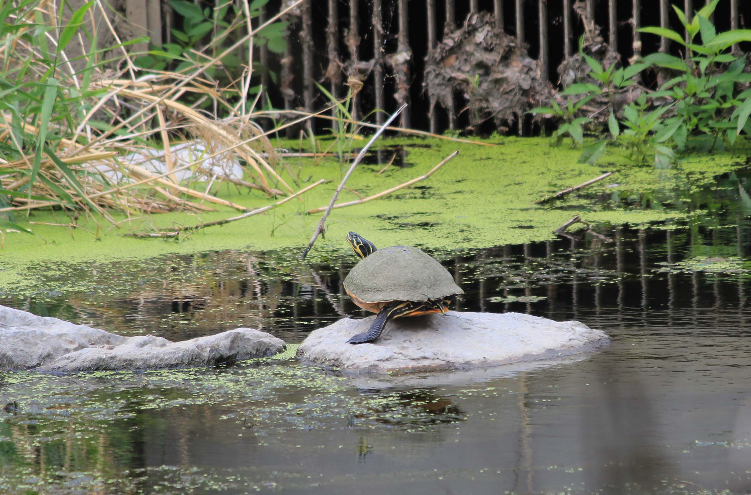 2022.06.13/ #거북? #안양천/ 안양시지속협의 6월 안양천모니터링중 (금호교옆에서 만난 녀석. 환경부가 생태계교란 생물로 지정한 플로리다 붉은배 거북(?)이 아닌가 싶습니다. 2달전에도 같은 장소에서 만났는데 크기가 엄청 커졌다. 지름 25Cm는 될듯 싶네요.