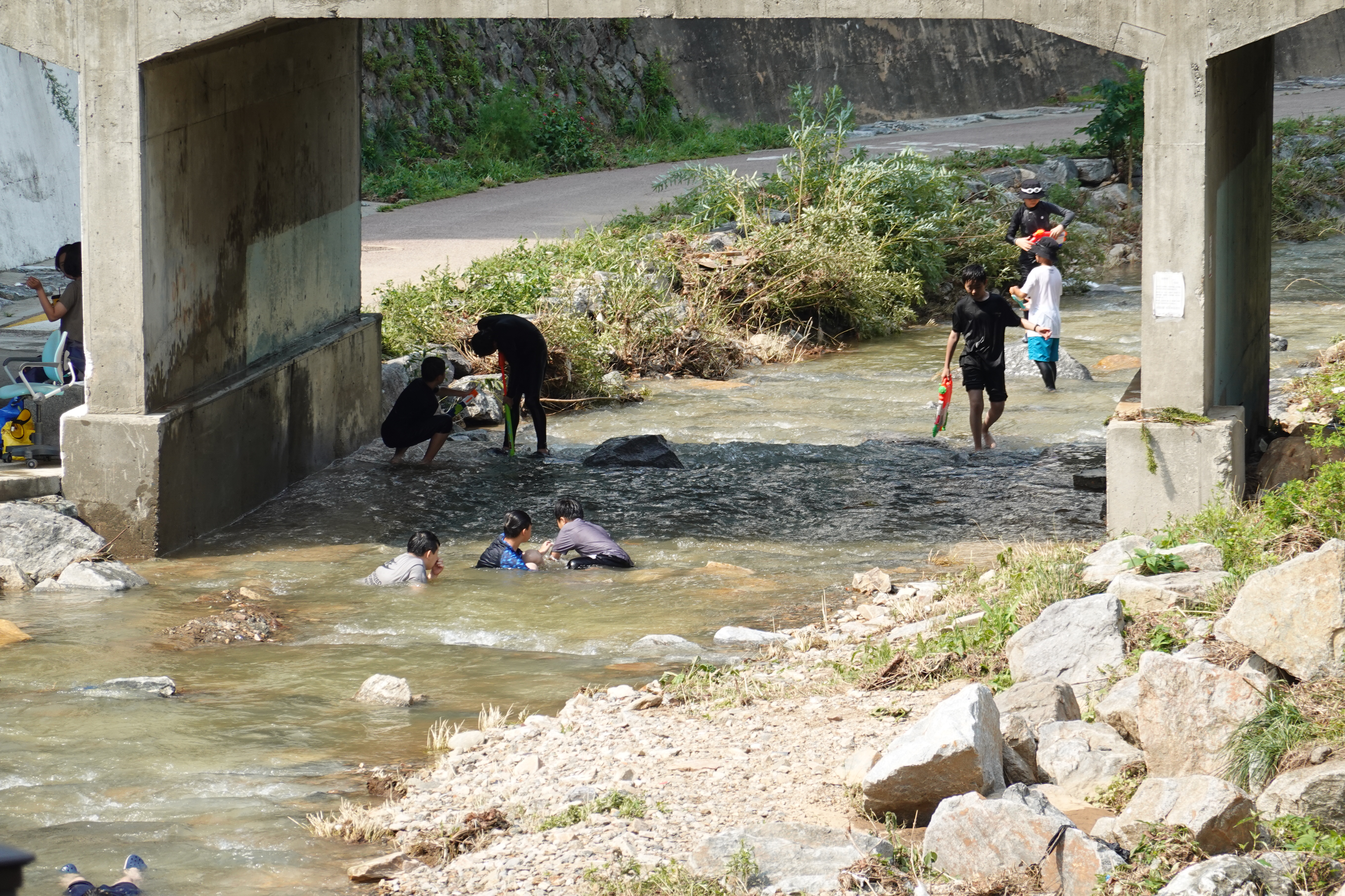 2022.07.02/ #수암천 #물놀이 #도시기록/ 안양기억찾기탐사대 204차 탐사날 수암천 율목3교 다리밑에서/ 수암천에서 아이들의 물놀이를 보는것이 얼마만인가. 비가 온후 메말랐던 하천에 시원한 물이 꽐꽐 흐르자 어이들이 물놀를 나와 물싸움도 하고 수영도 하면서 신나게 즐긴다. 따가운 햇살을 가려주는 그늘진 다리밑은 시원한 바람까지 부는 더위를 식히는 명당 자리로 부모님들이 과일과 간식까지 싸갖고와 돗자리를 깔고 나누면서 그야말로 피서지가 됐다.