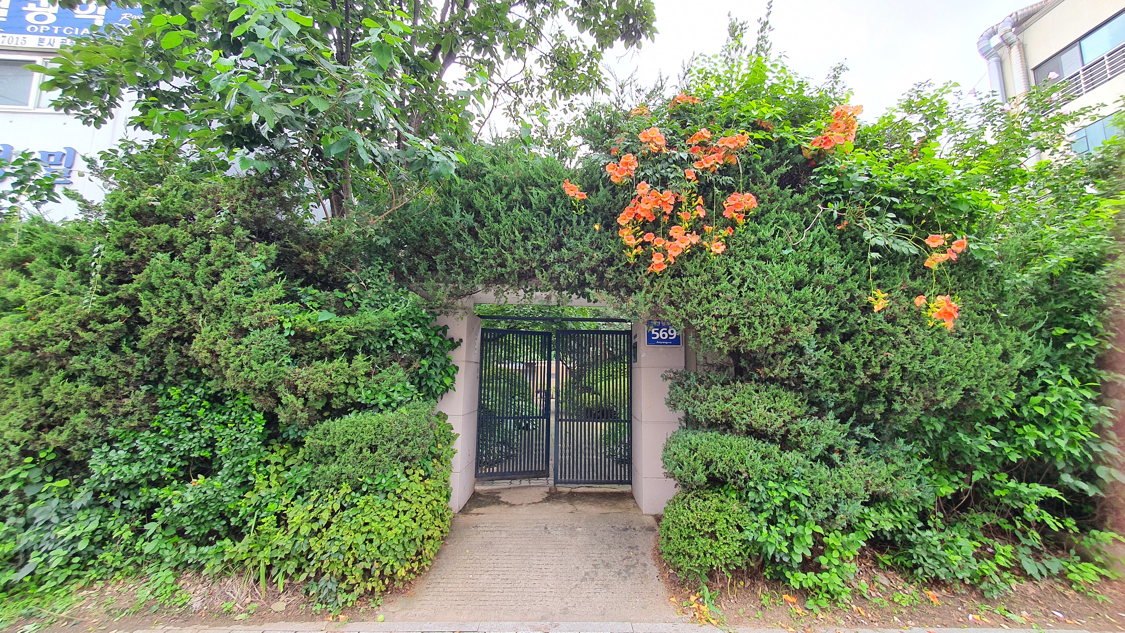 2022.07.23/ #정원 #꽃밭 #텃밭 #석수2동/ 안양기억찾기탐사대 207차 탐사날. 안양 도심에 이런곳이? 정원과 대문앞을 예쁘게 가꾸고 집 뒤로는 넓은 텃밭까지 있는 단독주택을 보고 혹하다. 안양로 569번지.