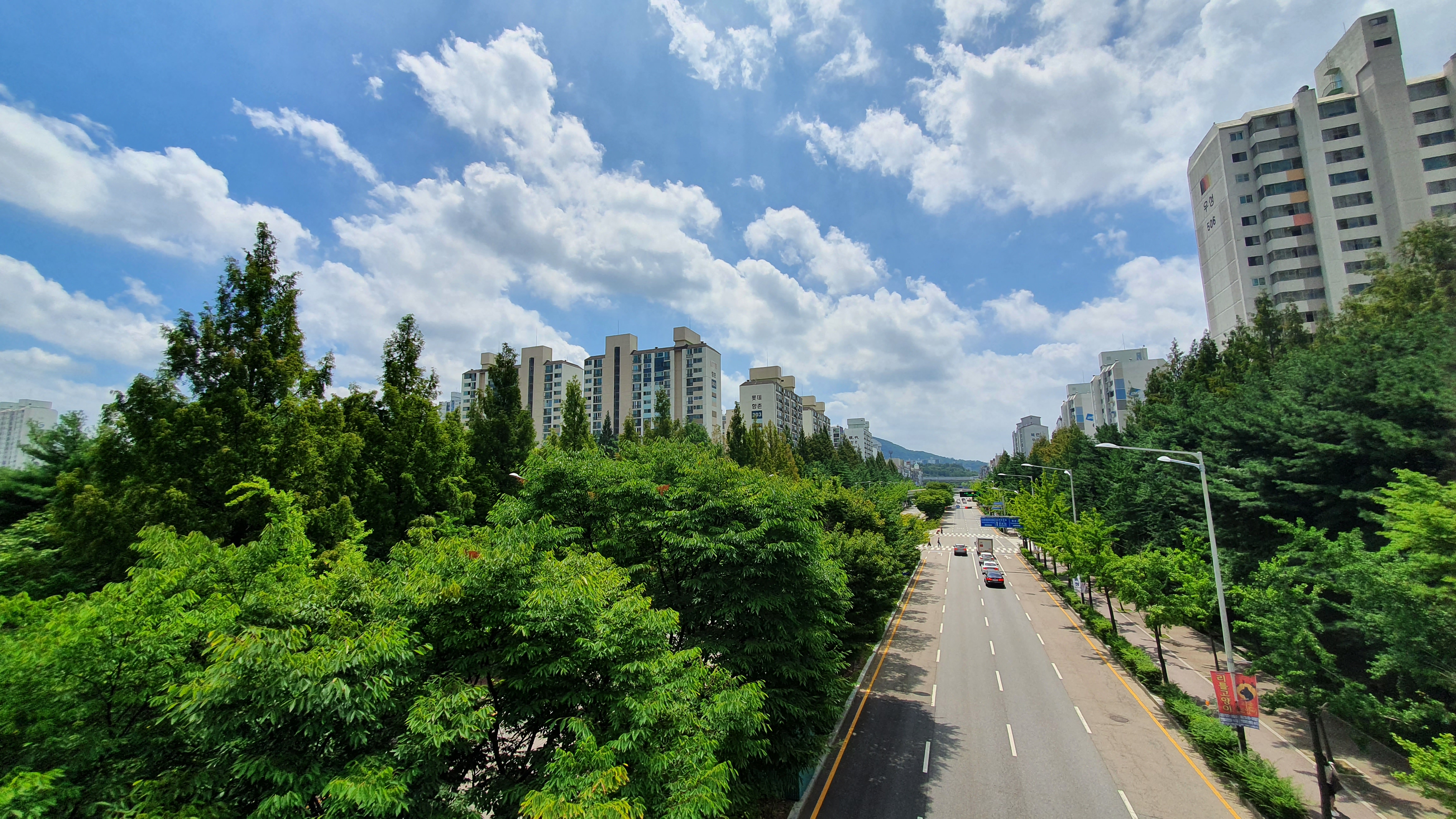 2022.07.29/ #도시기록 #안양 #평촌대로/ 평촌 중앙공원 보행육교에서 본 평촌대로. 도로 양쪽 중앙분리대 심어진가로수의 짙푸른 녹음이 보기에도 좋습니다. 몇년진 안양시가 중앙분리대 심어진 나무들의 가지를 강전전했다가 담당자가 혼났고 이후 몇년이 지나도록 거론되면서 곤혹을 치렀다고 하지요. 그늘을 만들어주는 가로수와도심숲의 존재. 여름에는 그 고마움을 잘 알다가도 선선한 바람이불면 잊어먹지요. 제발 마구잡이 가지치기(강전정) 하지 말기를.