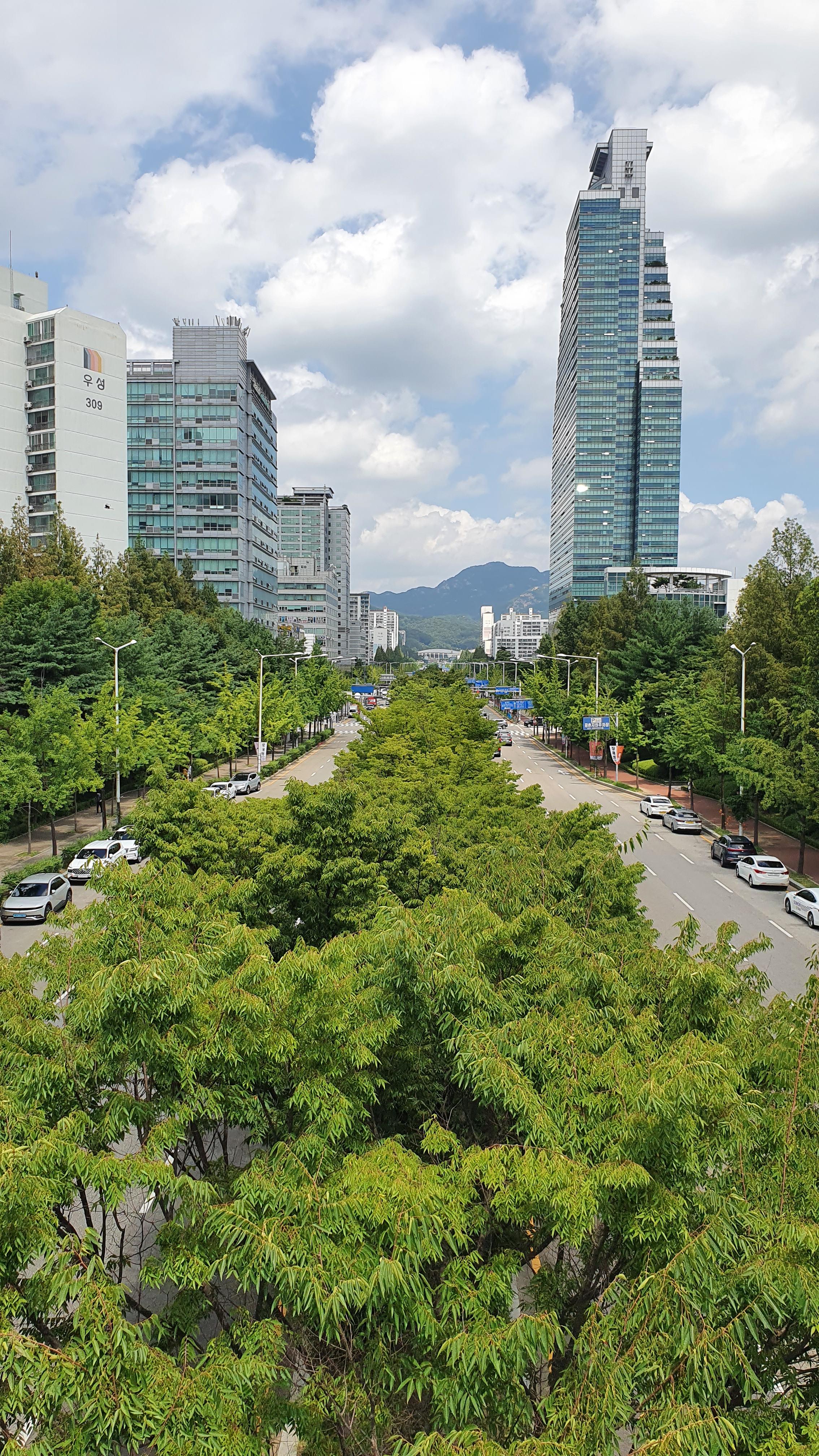 2022.07.29/ #도시기록 #안양 #평촌대로/ 평촌 중앙공원 보행육교에서 본 평촌대로. 도로 양쪽 중앙분리대 심어진가로수의 짙푸른 녹음이 보기에도 좋습니다. 몇년진 안양시가 중앙분리대 심어진 나무들의 가지를 강전전했다가 담당자가 혼났고 이후 몇년이 지나도록 거론되면서 곤혹을 치렀다고 하지요. 그늘을 만들어주는 가로수와도심숲의 존재. 여름에는 그 고마움을 잘 알다가도 선선한 바람이불면 잊어먹지요. 제발 마구잡이 가지치기(강전정) 하지 말기를.