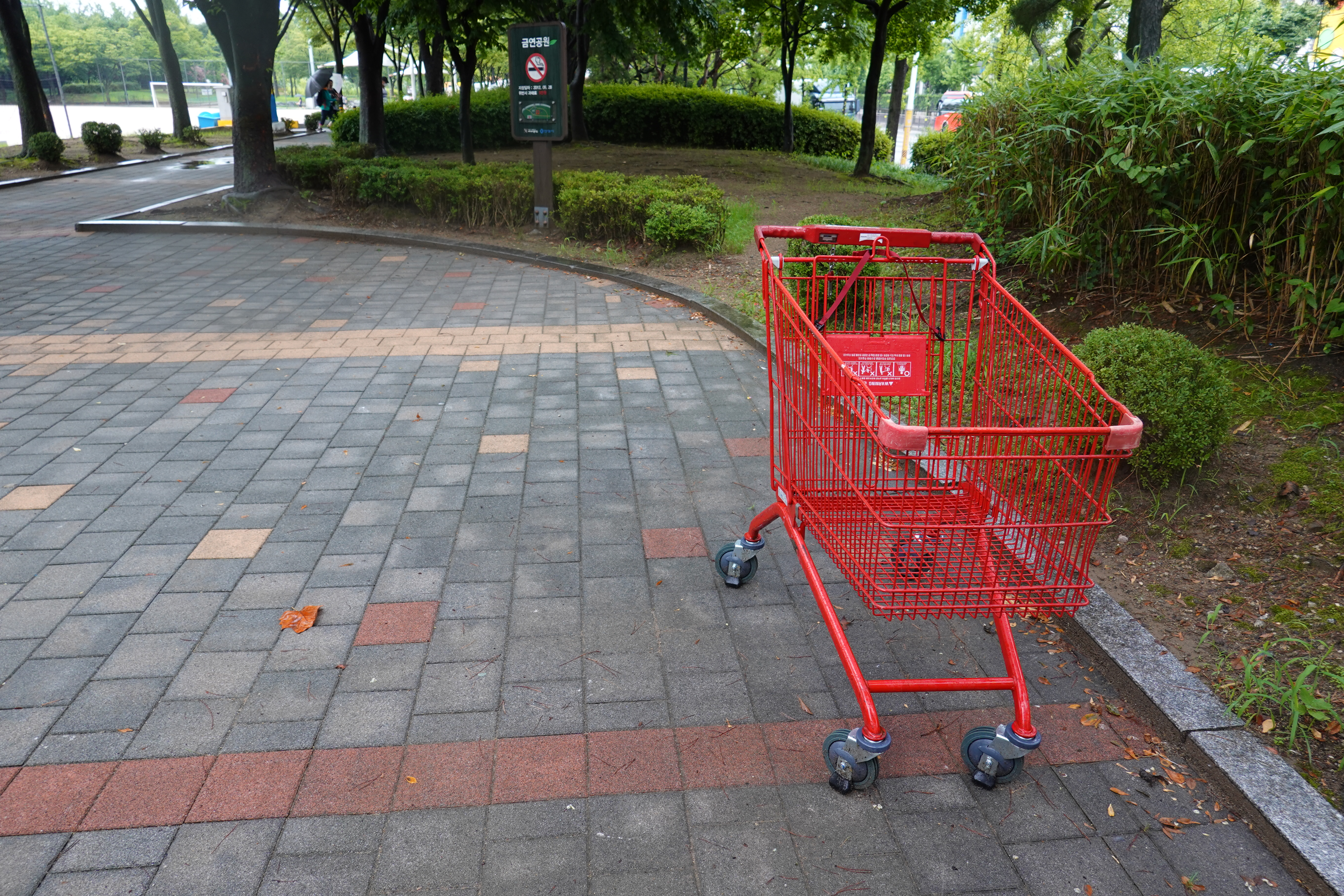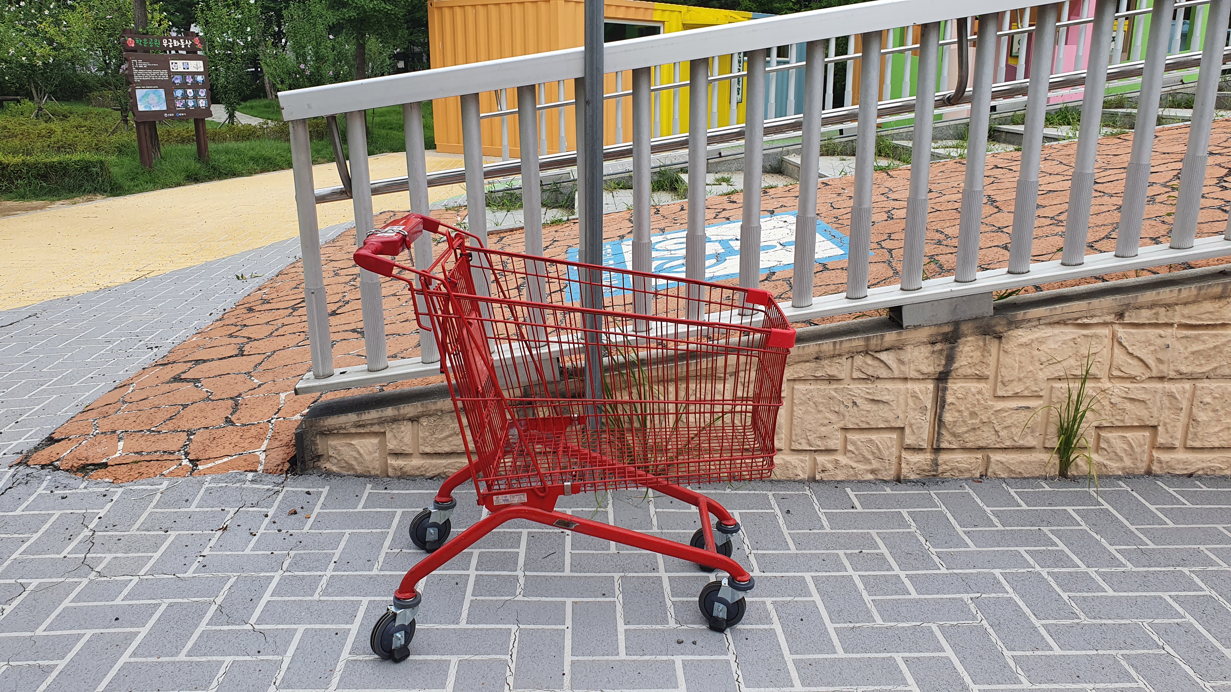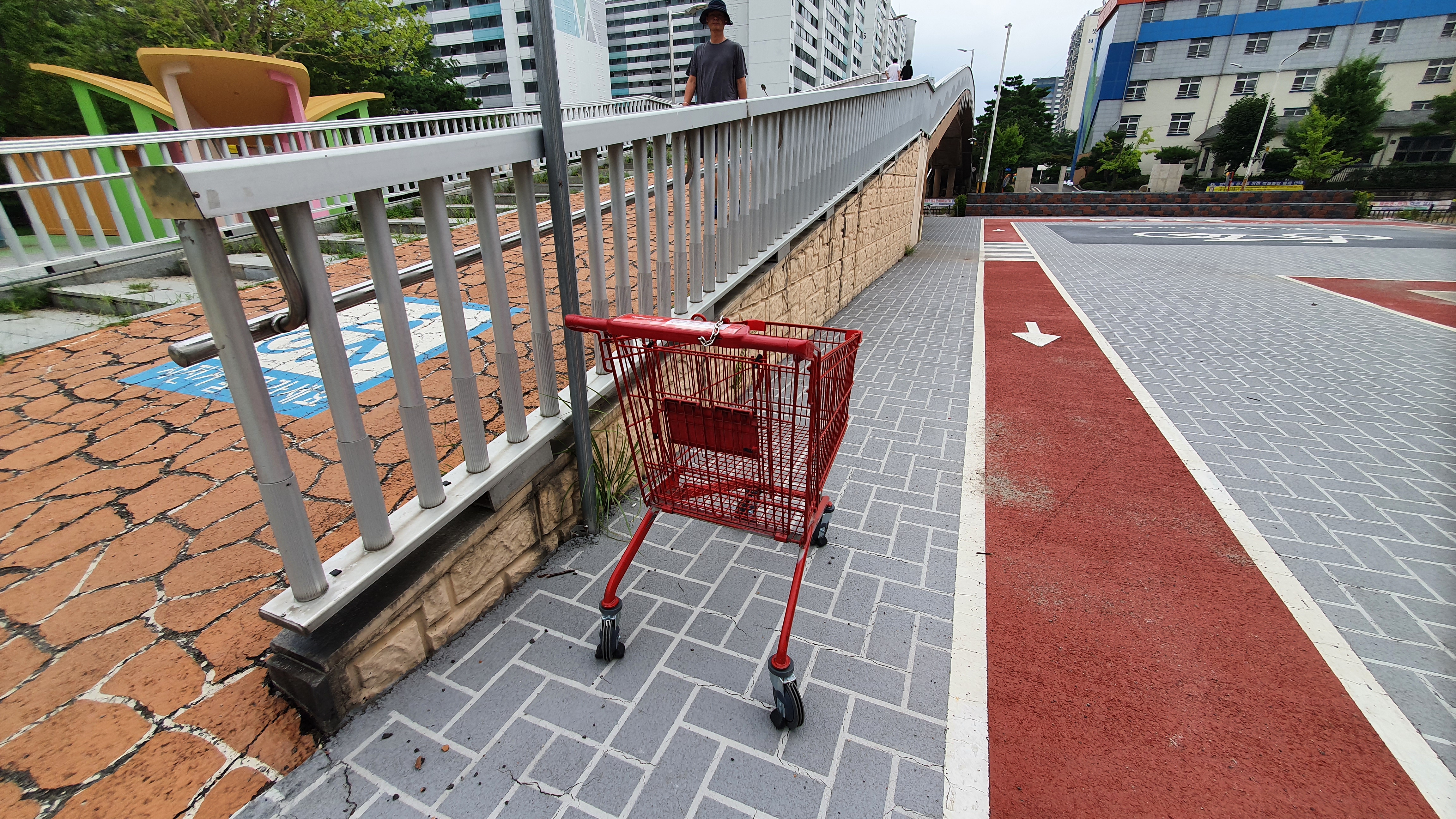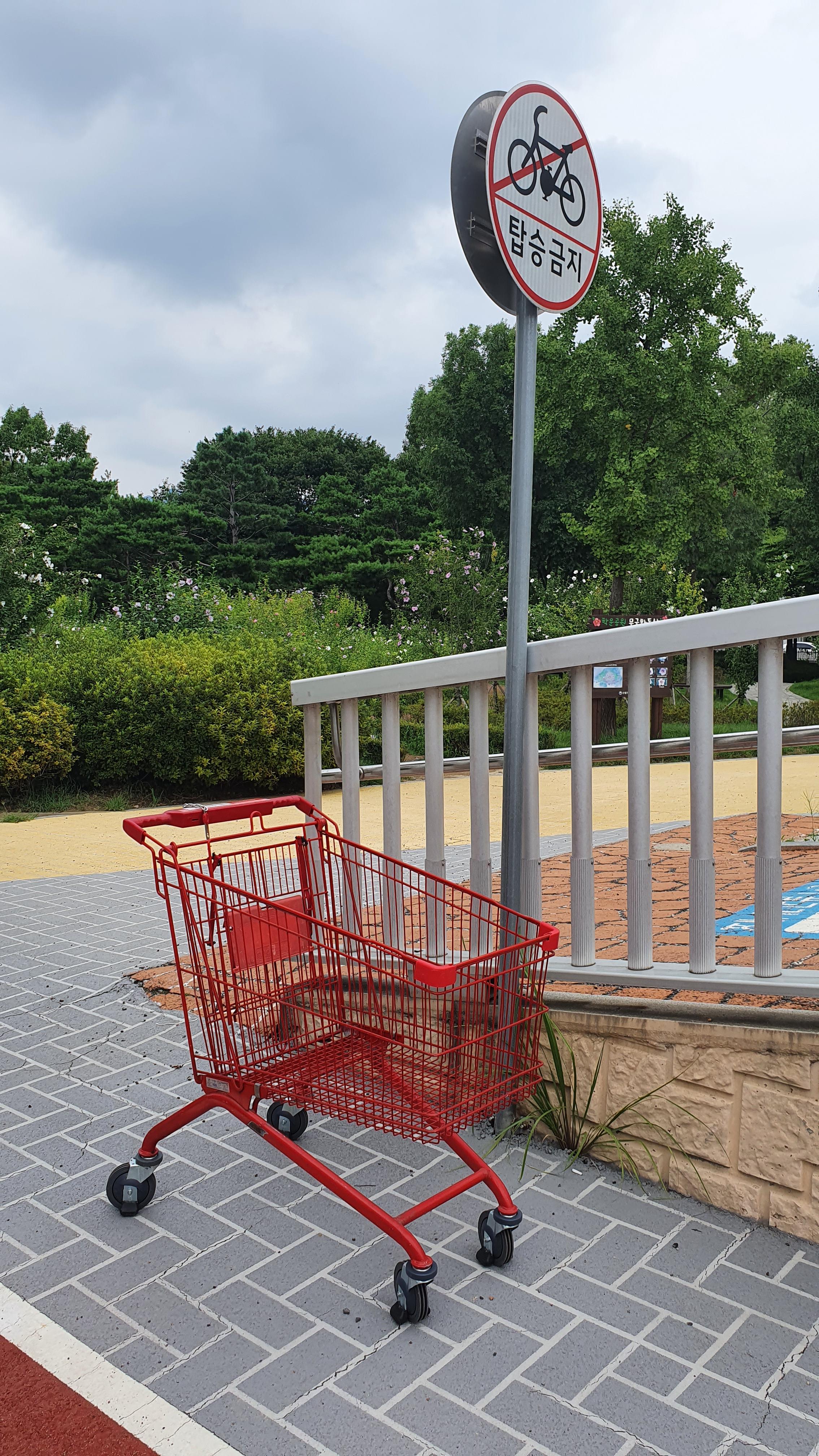 2022.08.07/ #애공 #쇼핑카트 #학운공원 #몰상식/ 공원에 왠 대형마트 쇼핑카트가?. 안양 학운공원 산보중 발견한 대형마트(홈플러스) 쇼핑카트. 지나가는 시민들마다 카트를 보고는 "이게 왜 여기있지" 하고는 어어없다는 표정들을 하신다. 학운공원 한바퀴 돌다보니 학운공원에서 아파트로 넘어가는 보행육교앞에 1개, 학운공원 주차장에 1개 등 2개의 쇼핑카트가 있는것을 확인했다. 누가 이곳까지 쇼핑카트를 가져왔을까. 홈플러스 평촌점에서 물건을 구입해 쇼핑카트에 싣고 아파트까지 운반하고는 홈플러스에 다시 갖다주기 뭐하니 가까운 학운공원에 방치(사실상 갖다버림)한 것은 아닌가 추정해본다. 그런데 학운공원에서 홈플러스 쇼핑카트를 발견하는 일이 1년에 최소 2-3차례는 되는듯 싶다. 그렇다면 상습이다. 정말 몰상식이다. 홈플러스에서는 쇼핑카트가 이곳 학운공원에 있으라고는 상상도 못할일. 가져갈수 있도록 공원관리자 또는 관할 행정에서 통보(안내)는 해주어야 하지 않나 싶다.