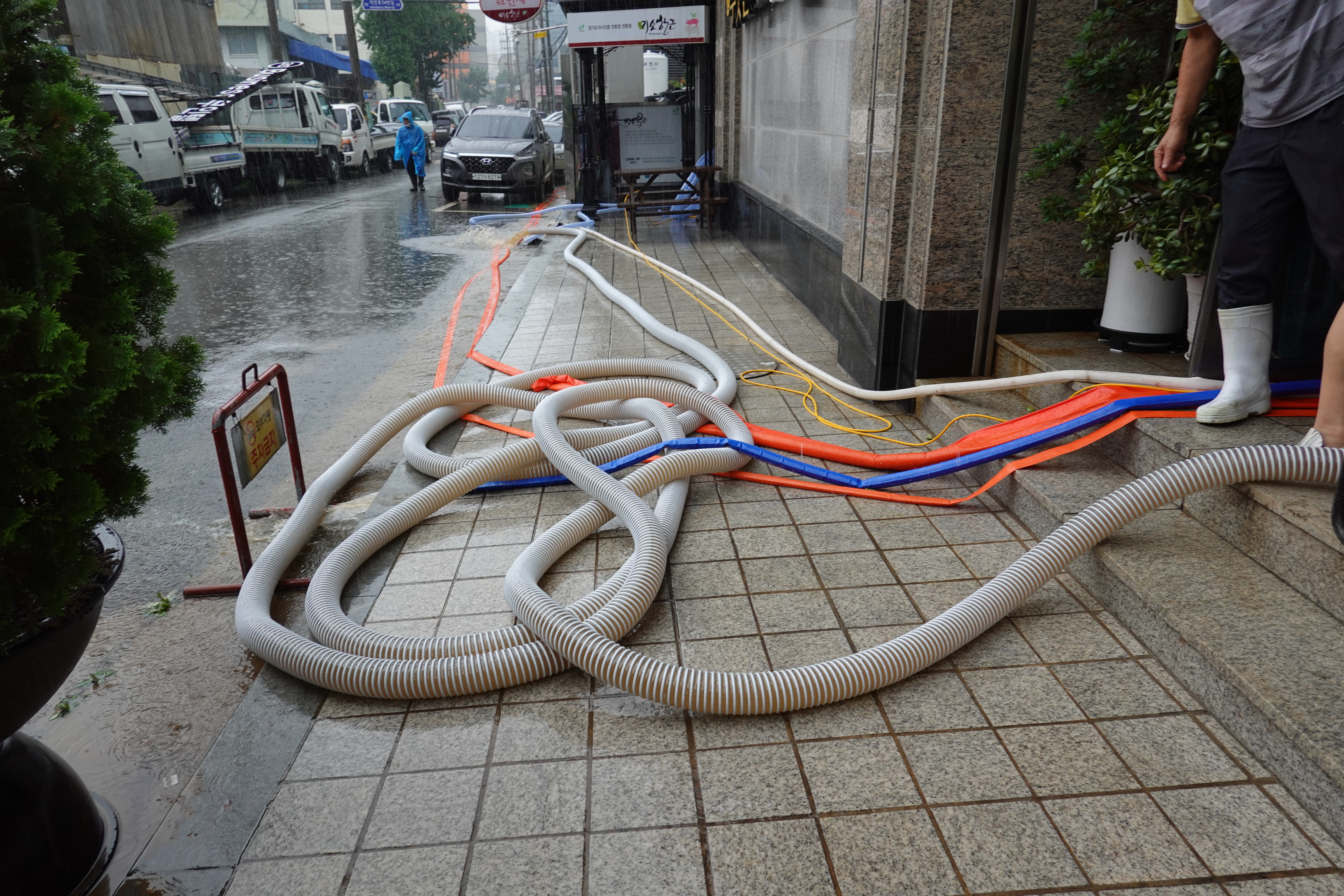 안양군포의왕에 100nn 집중호우가 쏟아진 지난 8일 밤 안양7동 명학육교와 명학대교를 잇는 시민대로에서 쏟아져 들어오는 빗물과 하수구의 역류로 엄청난 수량의 물이 회사안으로 들어오며 800평 면적의 지하 1층과 2층이 완전히 물에 잠기고말았다.