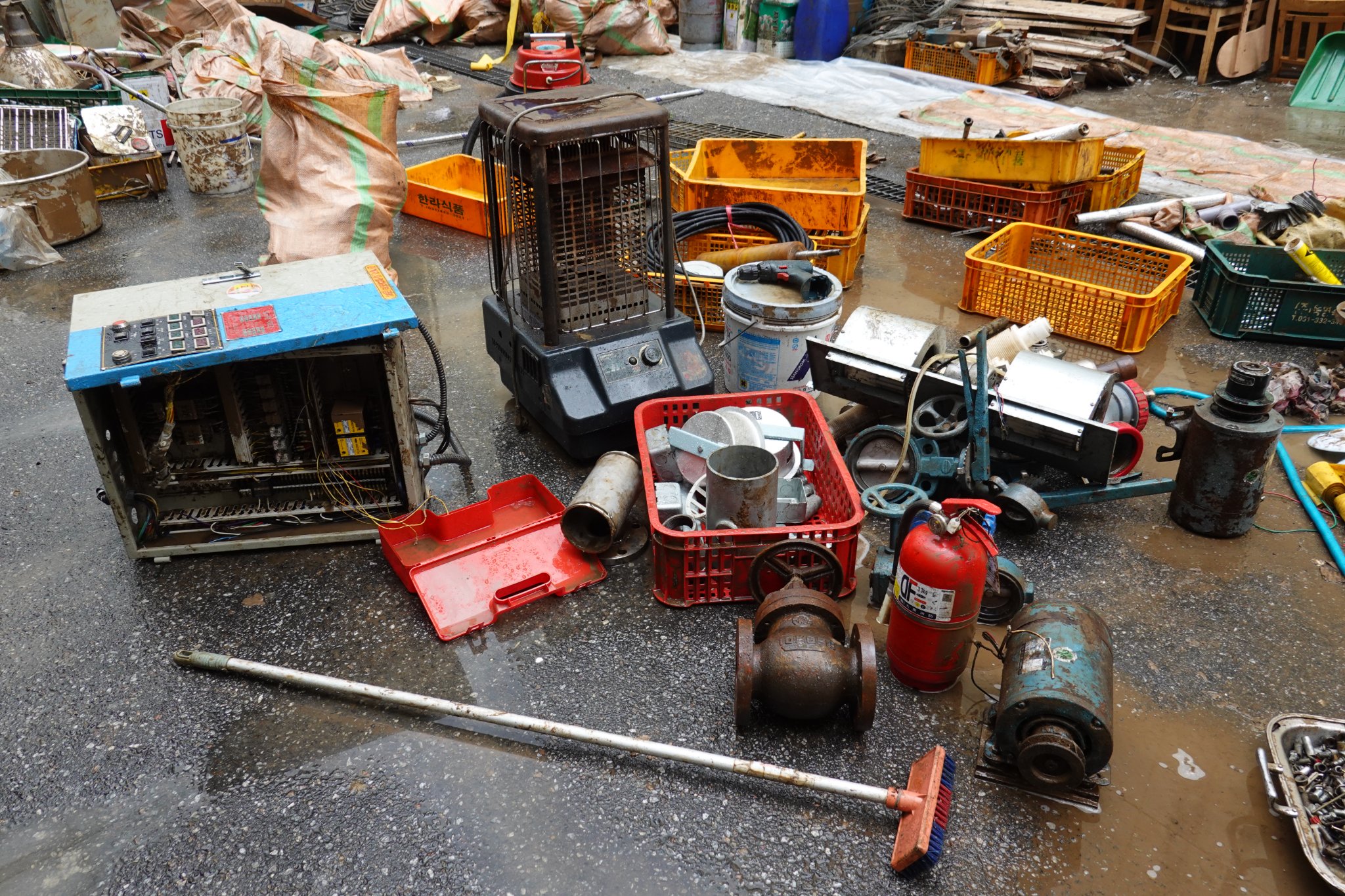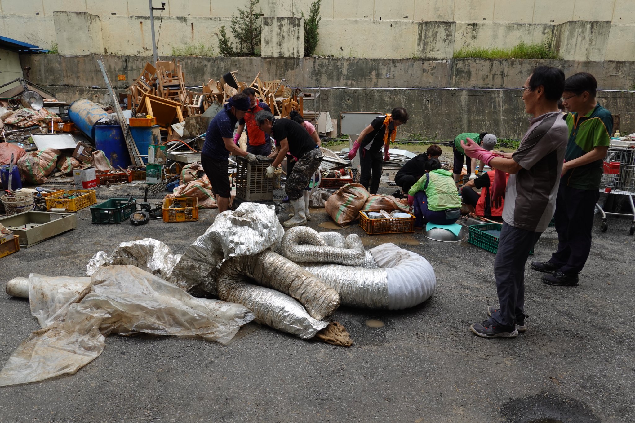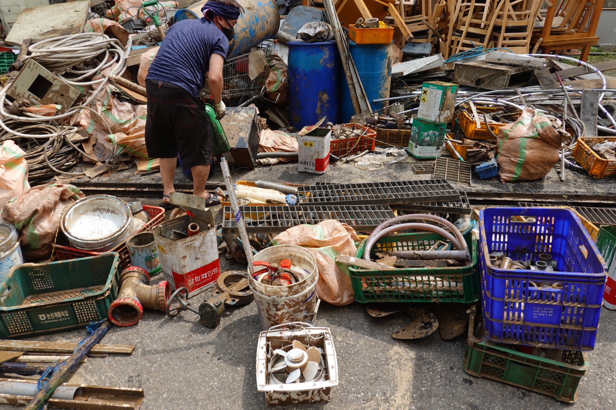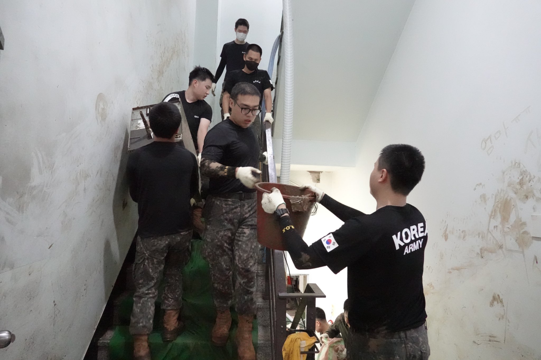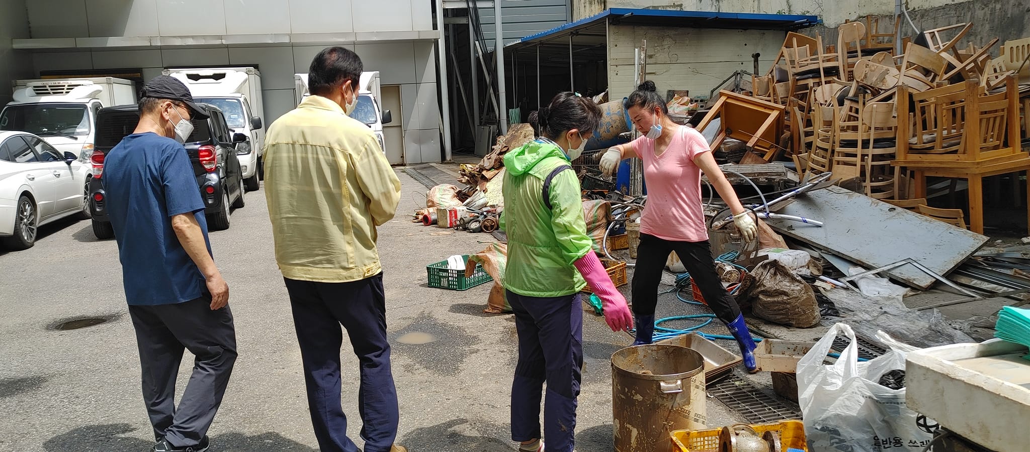 2022.08.14/ #도시기록 #수해 #침수 #한라식품 #안양7동 #복구작업 #수도군단장병 #자원봉사/ 안양군포의왕을 비롯 경기도관내 초중고교 등에 친환경 고기를 납품하는 한라식품(안양7동 소재)의 수해 피해가 심각하다. 한라식품은 집중호우가 쏟아진 지난 8일 밤 회사앞 도로 맨홀에서 역류한 하수가 지하 1.2층으로 들어와 전기배전실과 작업실, 냉동냉장시설, 부설식당 뜰안채 등이 침수돼 수십억대의 피해를 본 것으로 알려졌다. 지난 9일밤 대형발전차 동원에 있어 10일 임시 전기가설과 11일부터 시작된 본격적인 복구 작업에는 수도군단 장병들과 자유총연맹, 안양시걷기협회, 부림동주민자치센터, 안양자원봉사센터 등에서 나온 봉사자들이 15일 현재까지 닷새째 구슬땀을 흘리며 복구작업을 펼쳤다. 또 피해 규모가 워낙 크기에 작업은 16일에도 계속될 예정이다.