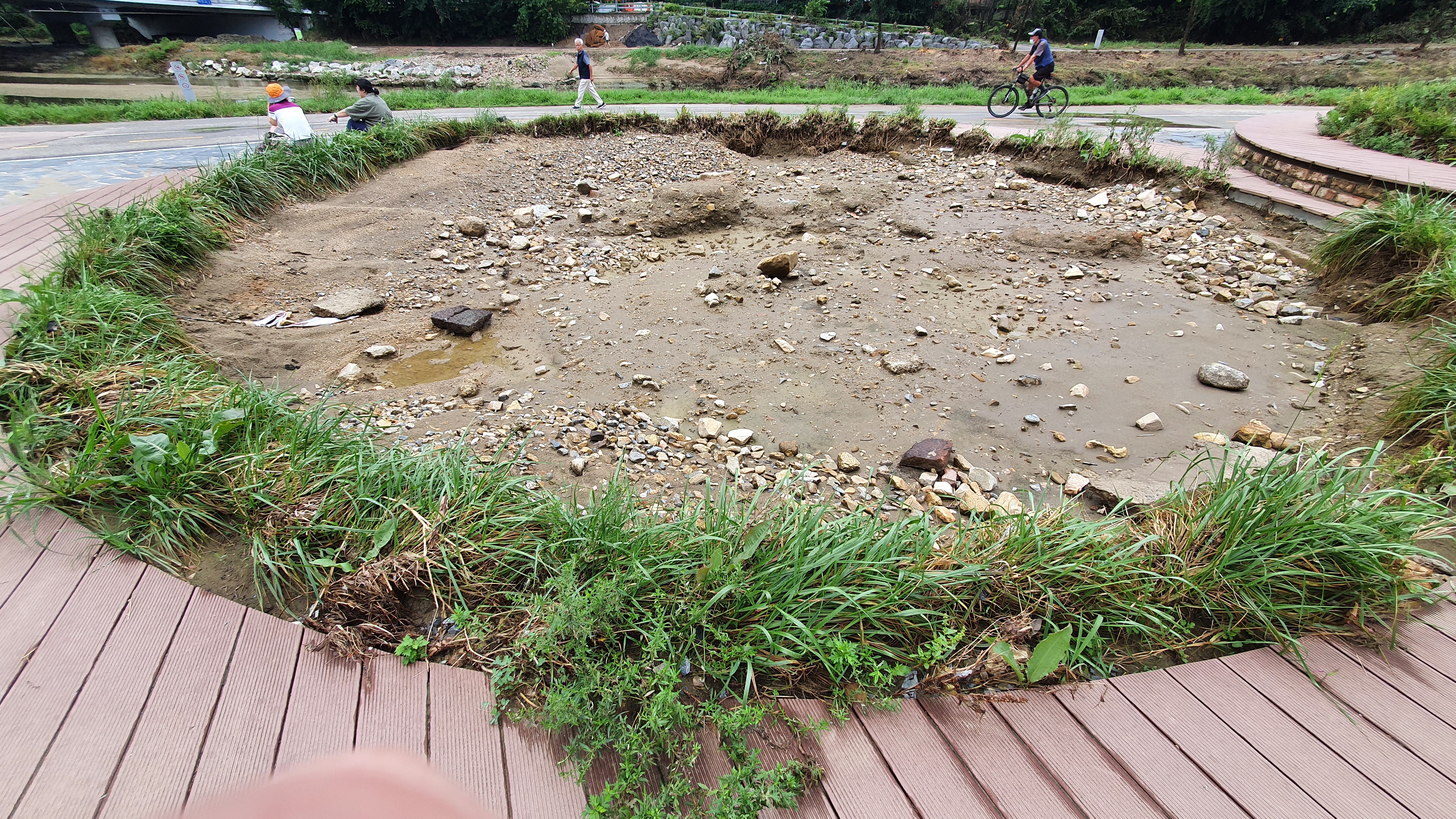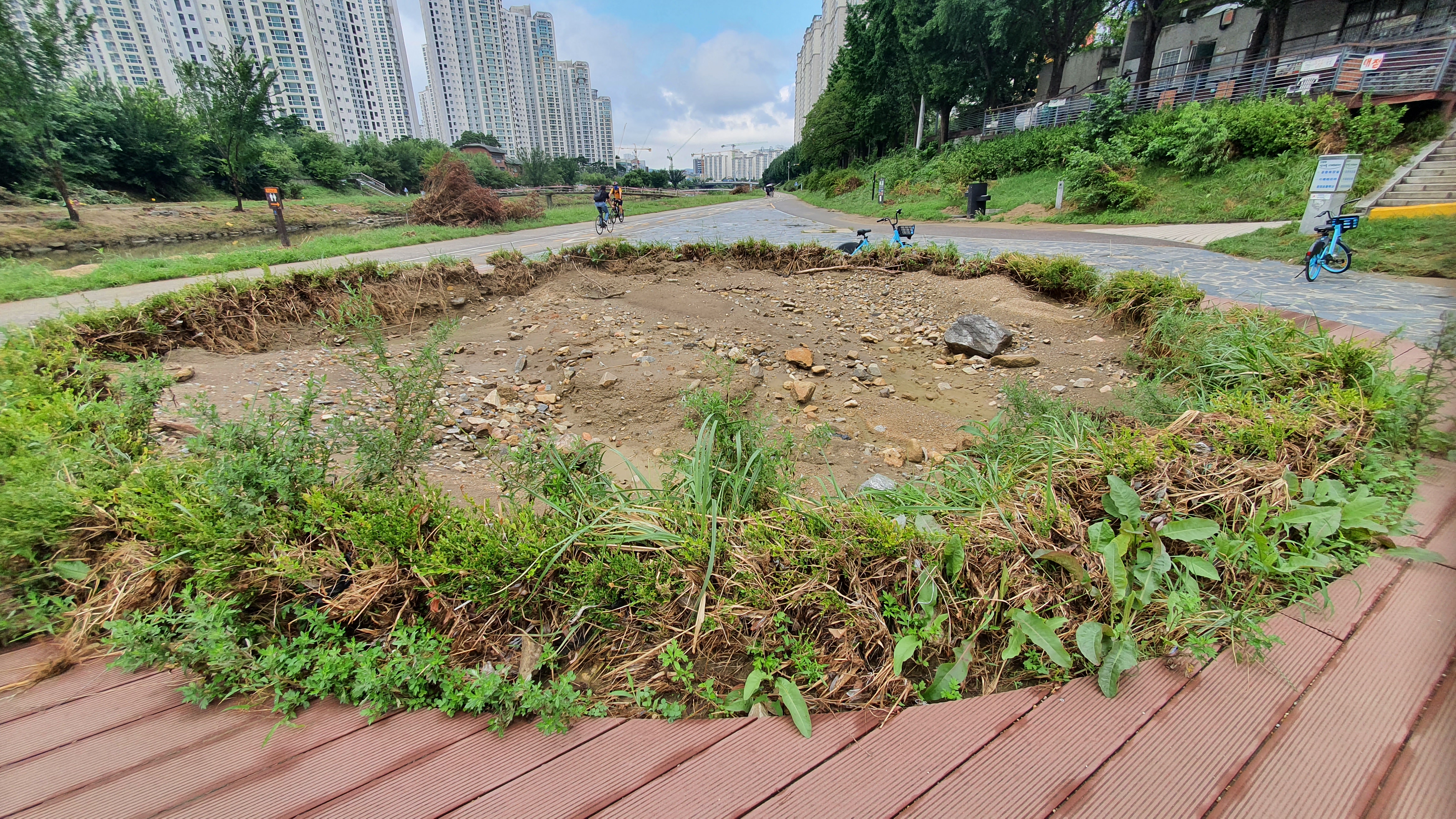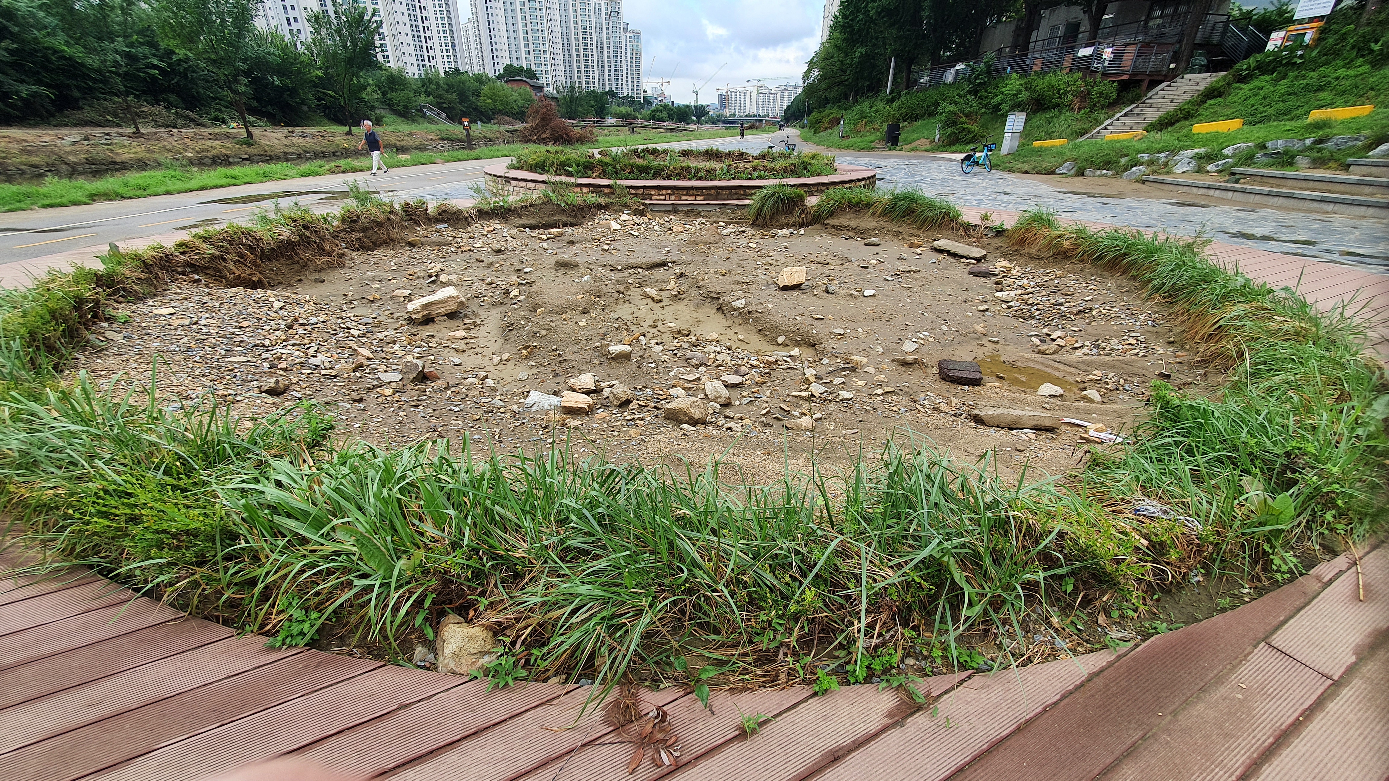 2022.08.21/ #도시기록 #쌍개울 #안양/ 지난 8-9일 집중호우와 그 이후 하천 수해로 인한 쌍개울의 피해가 크다. 이 곳은 안양천과 학의천이 합류하는지점으로 지나치는 물살이 거세게 흐르는 관계로 매년 큰물이 한번 지나갈때마다 이곳에 설치한 시설물들은 그야말로 쑥대밭이 된다.