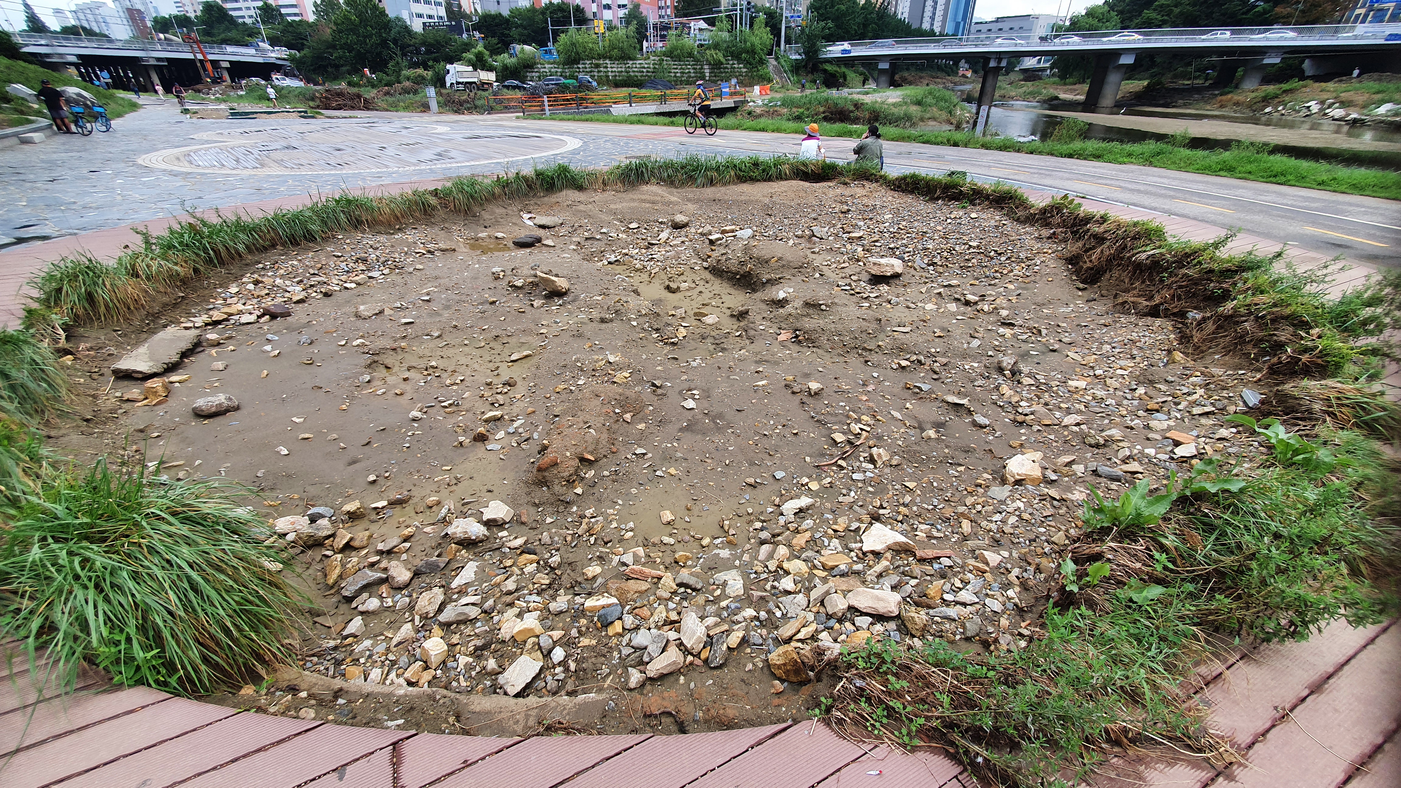 2022.08.21/ #도시기록 #쌍개울 #안양/ 지난 8-9일 집중호우와 그 이후 하천 수해로 인한 쌍개울의 피해가 크다. 이 곳은 안양천과 학의천이 합류하는지점으로 지나치는 물살이 거세게 흐르는 관계로 매년 큰물이 한번 지나갈때마다 이곳에 설치한 시설물들은 그야말로 쑥대밭이 된다.