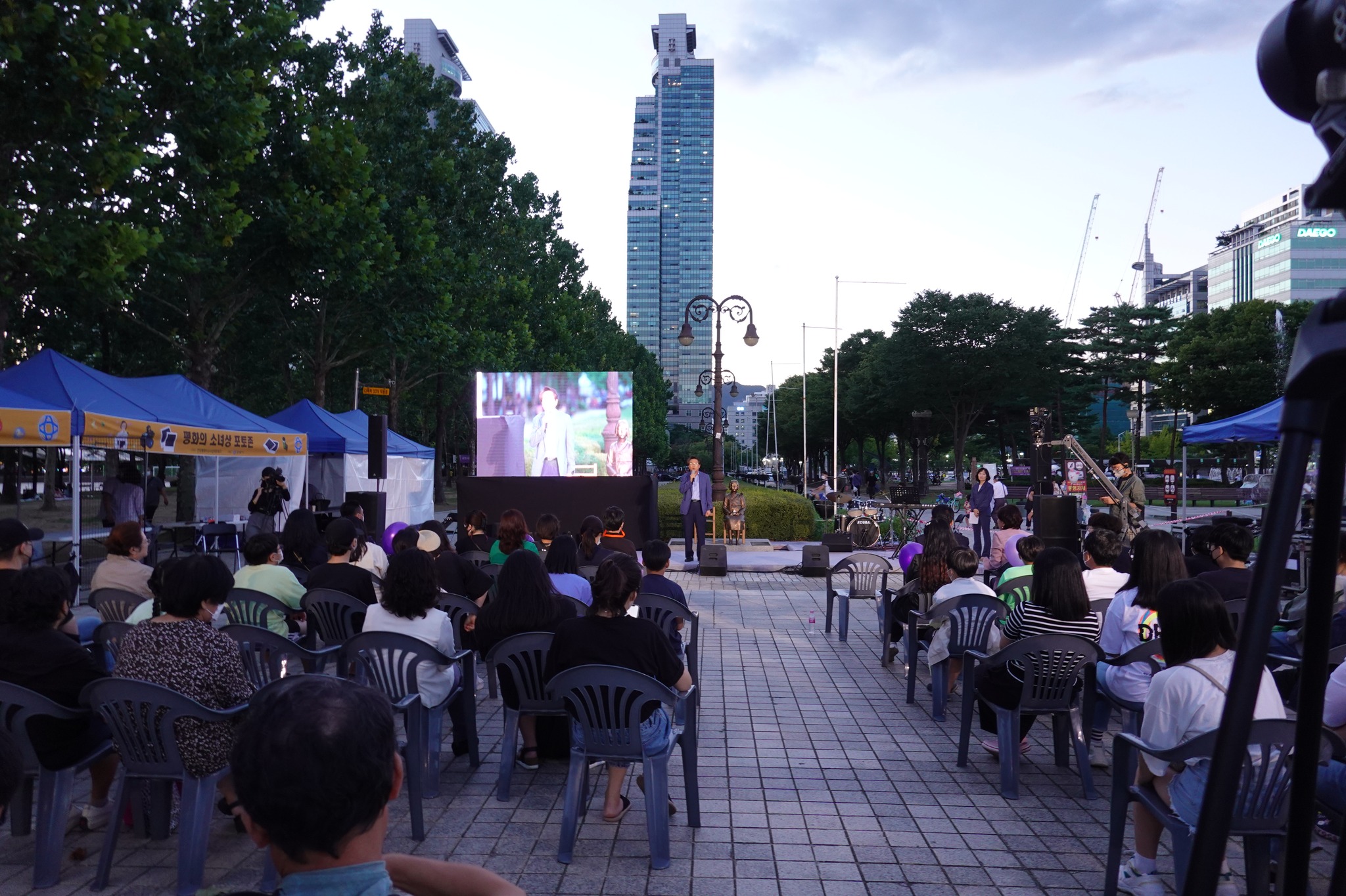 평화의소녀상 앞에서 진행된 기념행사는 추모시 낭송, 기념사, 작은평화음악회와 함께 6월 진행된 '평화와 인권 청소년 공모전'의 시상식이 진행됐다.