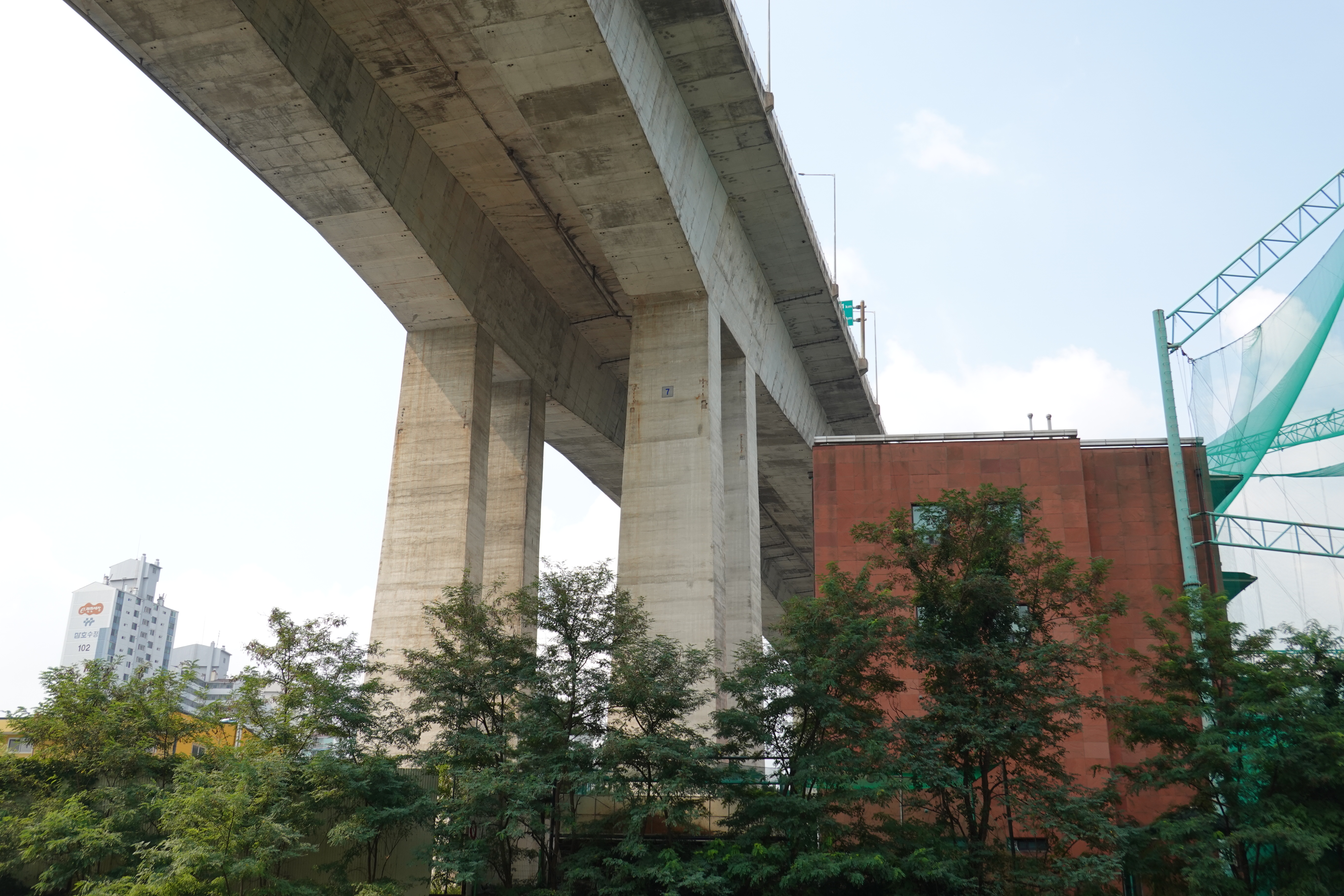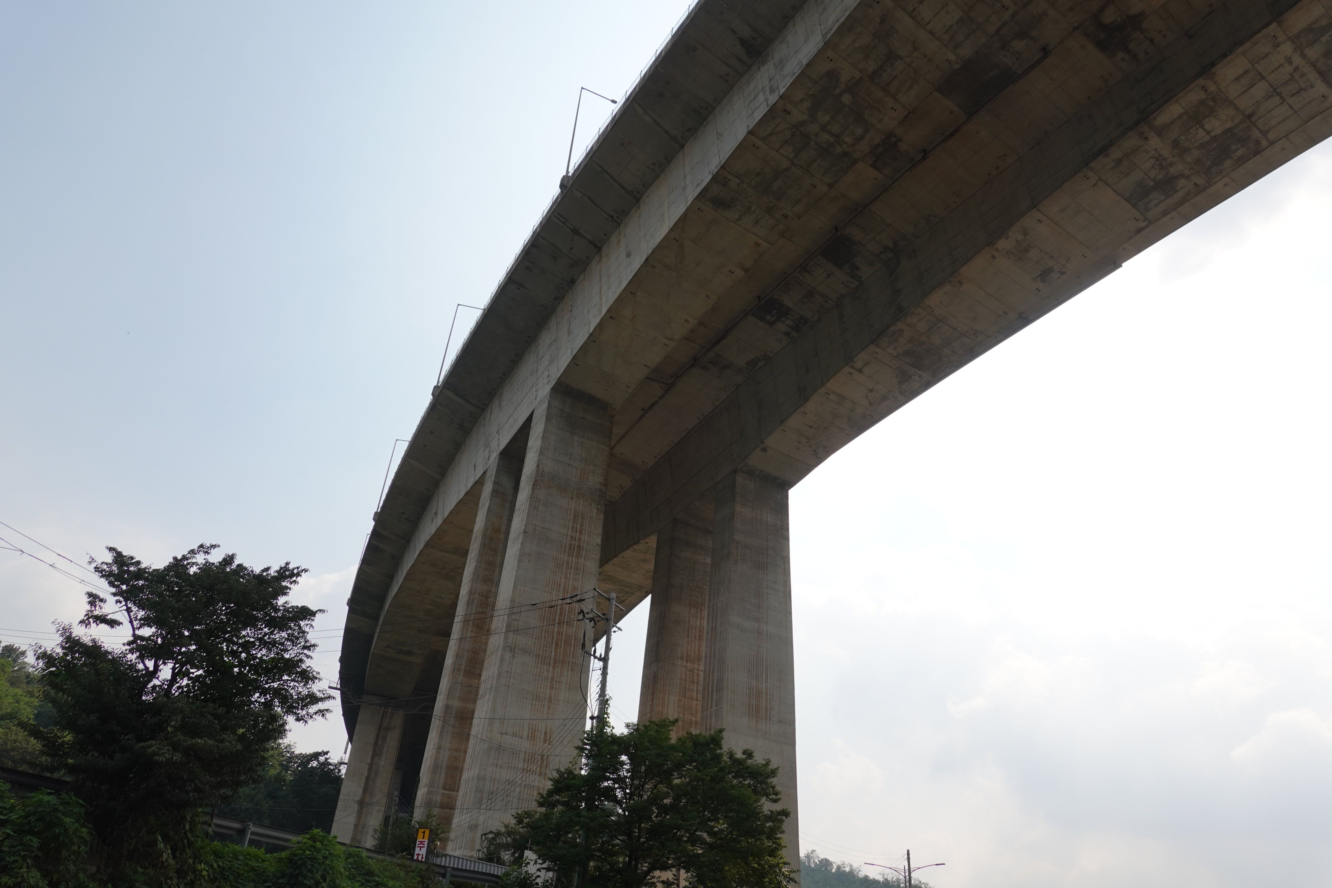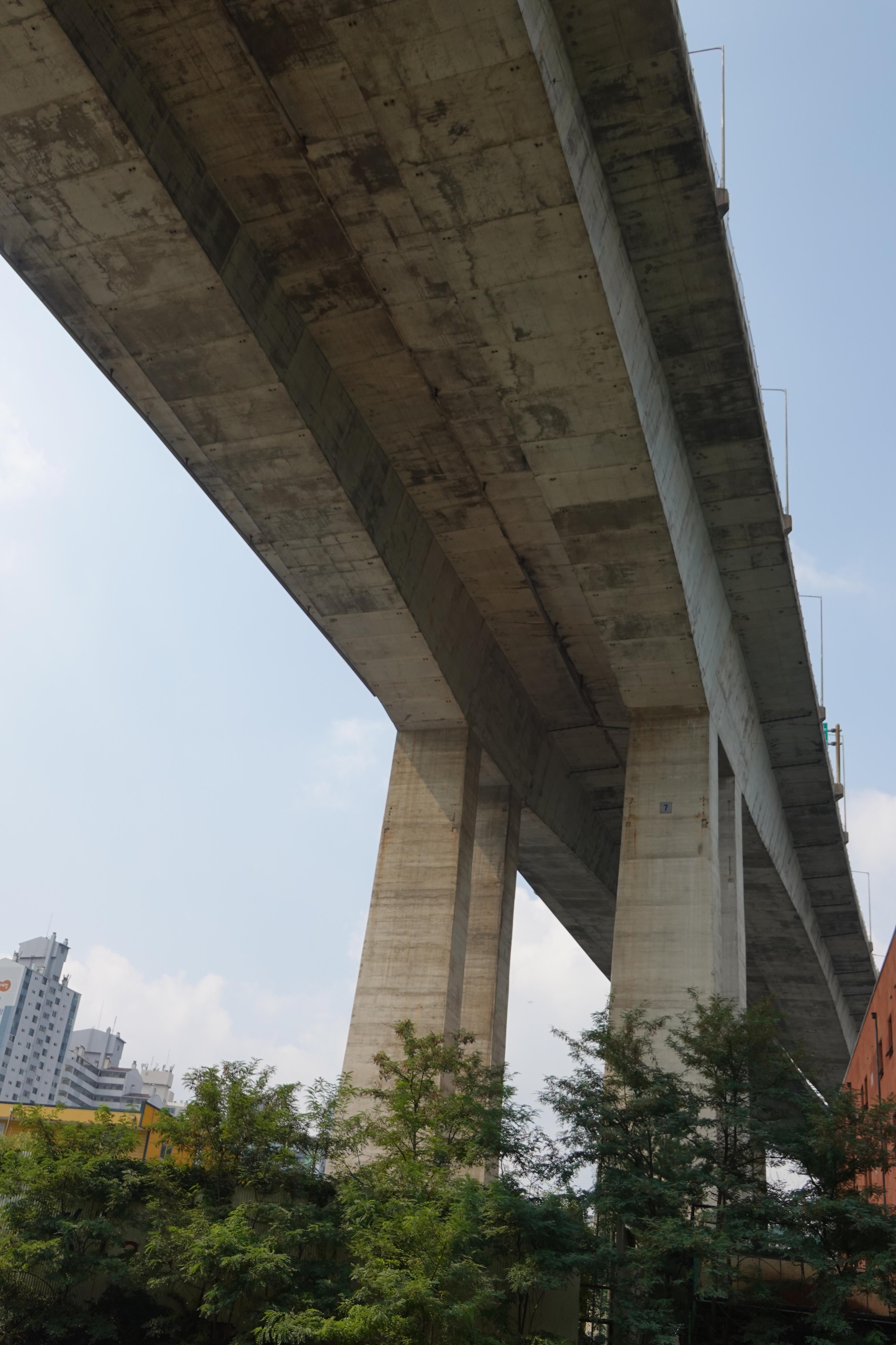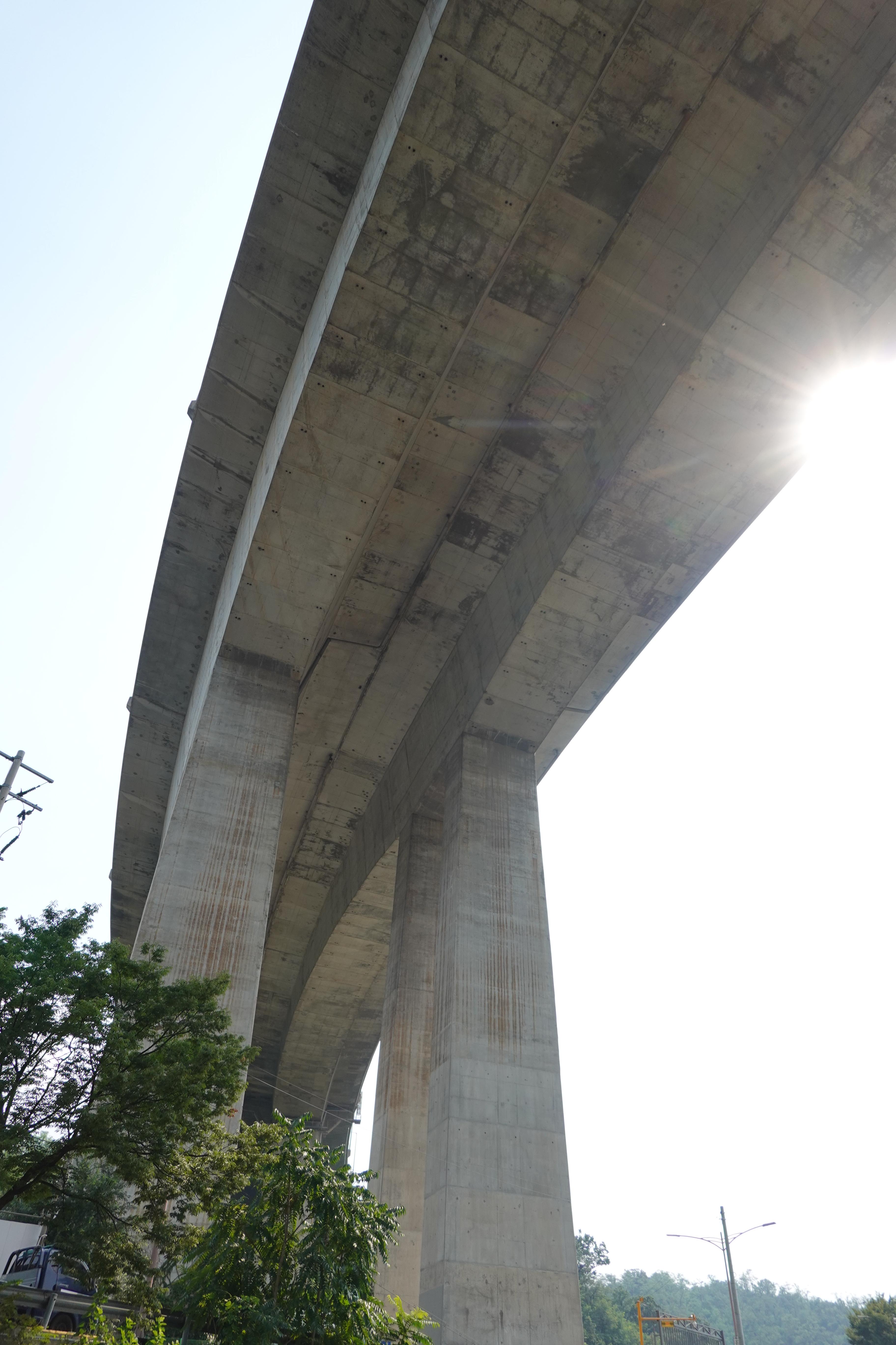 2022.08.26/ #도시기록 #안양 #서울외곽순환도로 #호계동 #시설물 / 안양천에서 찰깍한 모습. 안양 호계동에서 안양천과 안양8동을 통과하고 수리산을 관통해 군포 산본동을 잇는 서울외곽순환도로. 높다란 교각의 거대한 시설물로 흉물스럽기 짝이 없는 랜드마크이다. 안양천을 걷다보면 시선이 저절로 하늘로 꽂힌다. 압도하는 시설물이 정말 거대하다.교각밑을 지나갈때면 무겁게 짓누르는 느낌을 사실적으로 느낄수 있다.^^