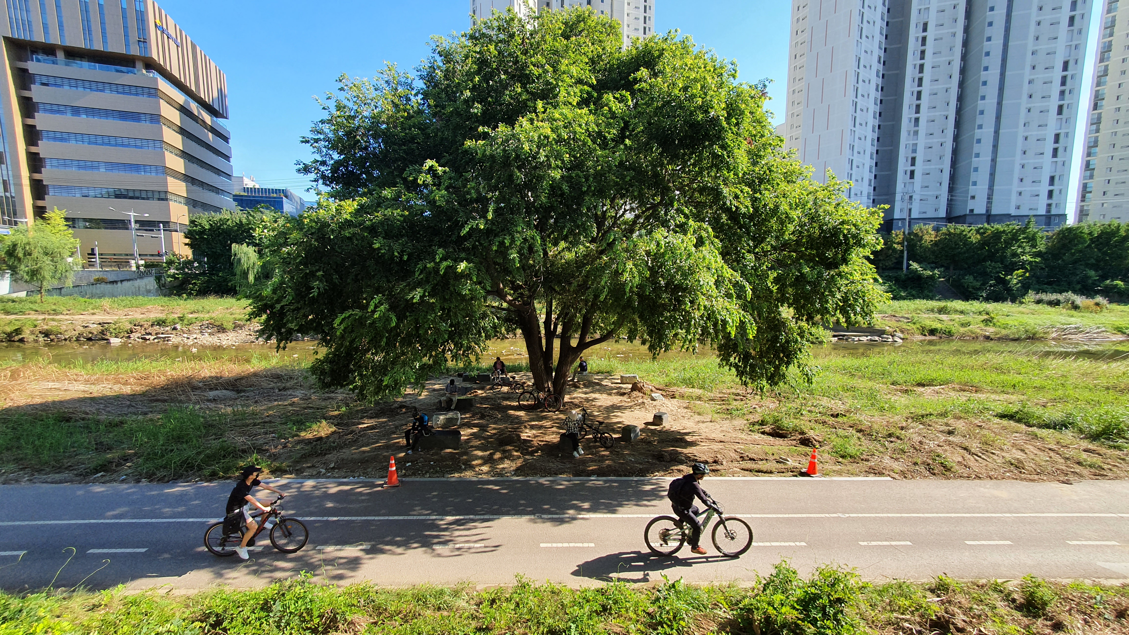 2022.08.28/ #도시기록 #안양 #학의천 #가로수/ 학의천의 명물 왕버드나무 살아남다. 지난 8-9일 수도권지역에 쏟아진 집중호우로 수해에서 살아남은 학의천 명물 왕버드나무(대한교와 동안교 중간 놓여진 세월교 옆에서 볼 수 있는 멋진 나무 한그루). 이번 수해에서 많은 나무들이 뽑혀 나갔으나 왕버드나무는 거센 물살을 잘 견뎌내고 굿굿하게 살아남았다.
