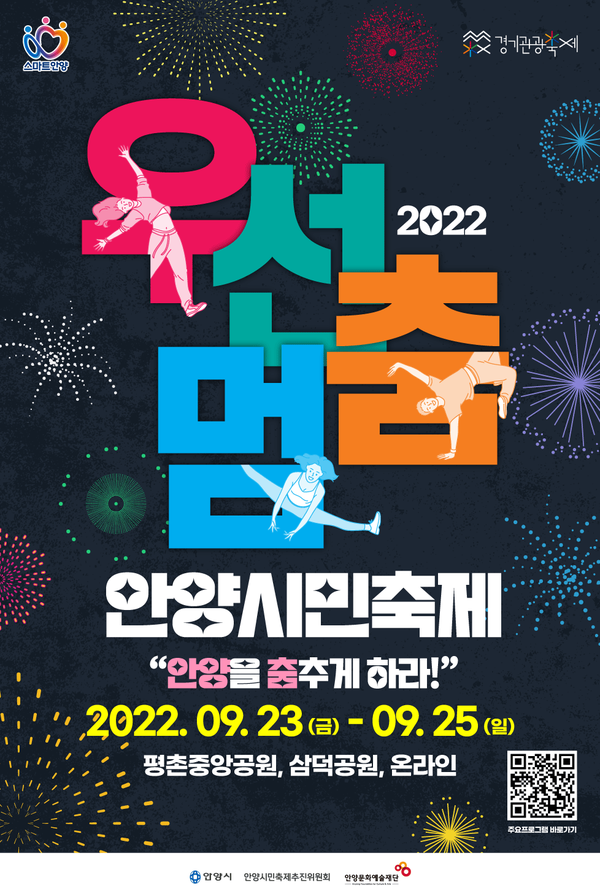 안양시와 안양시민축제추진위원회가 주최하고 안양문화예술재단이 주관하는 2022 우선멈‘춤’ 안양시민축제가 9월 23일부터 25일까지 3년 만의 오프라인 축제로 돌아온다.