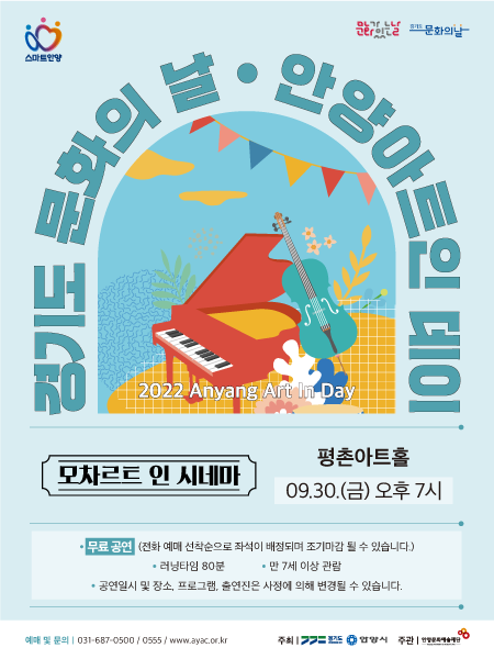안양아트인 데이는 영화에서 느꼈던 감동을 스크린의 영상과 더불어 오케스트라의 연주로 감상하며 모차르트 음악에 젖어들 수 있는 음악회로. 따뜻한 마음만 가지고 오시면 된다.