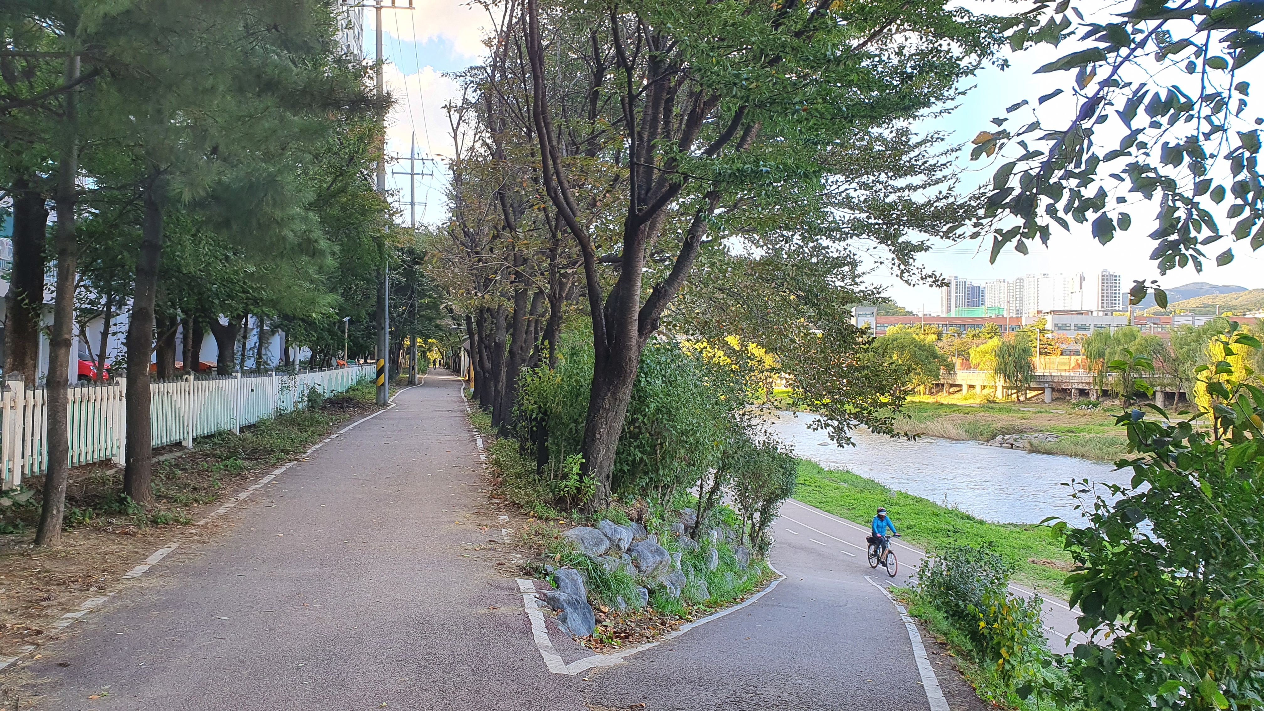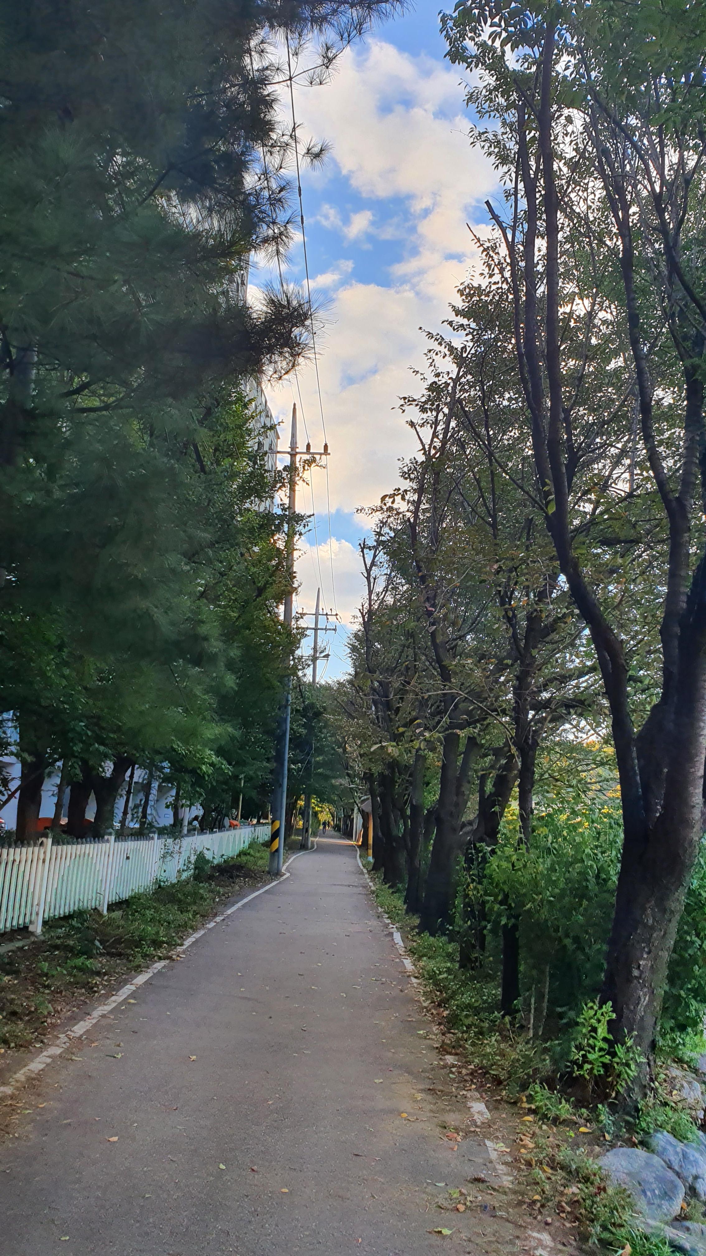 2022.10.17/ #도시기록 #안양 #동네 #골목 #안양2동 #양명교 #굴다리/ 안양2동 경남아너스빌아파트와 안양천서로(산책로) 중간의 뚝방길. 양명교에서 안양교까지 이어지는 이길은 봄에는 건너펀 양명고앞 도로에 멋지게 핀 벚꽃을 감상할수있고, 여름에는 나무숲 그늘이, 가을에는 단풍이 예쁜길로 안양에서 열 손가락안에 드는 정말 걷고싶은 고즈녁한 길이다. 산책로 중간에 잠시 앉아 책이라도 읽을수있는 벤치라도 있으면 얼만나 좋을까나.