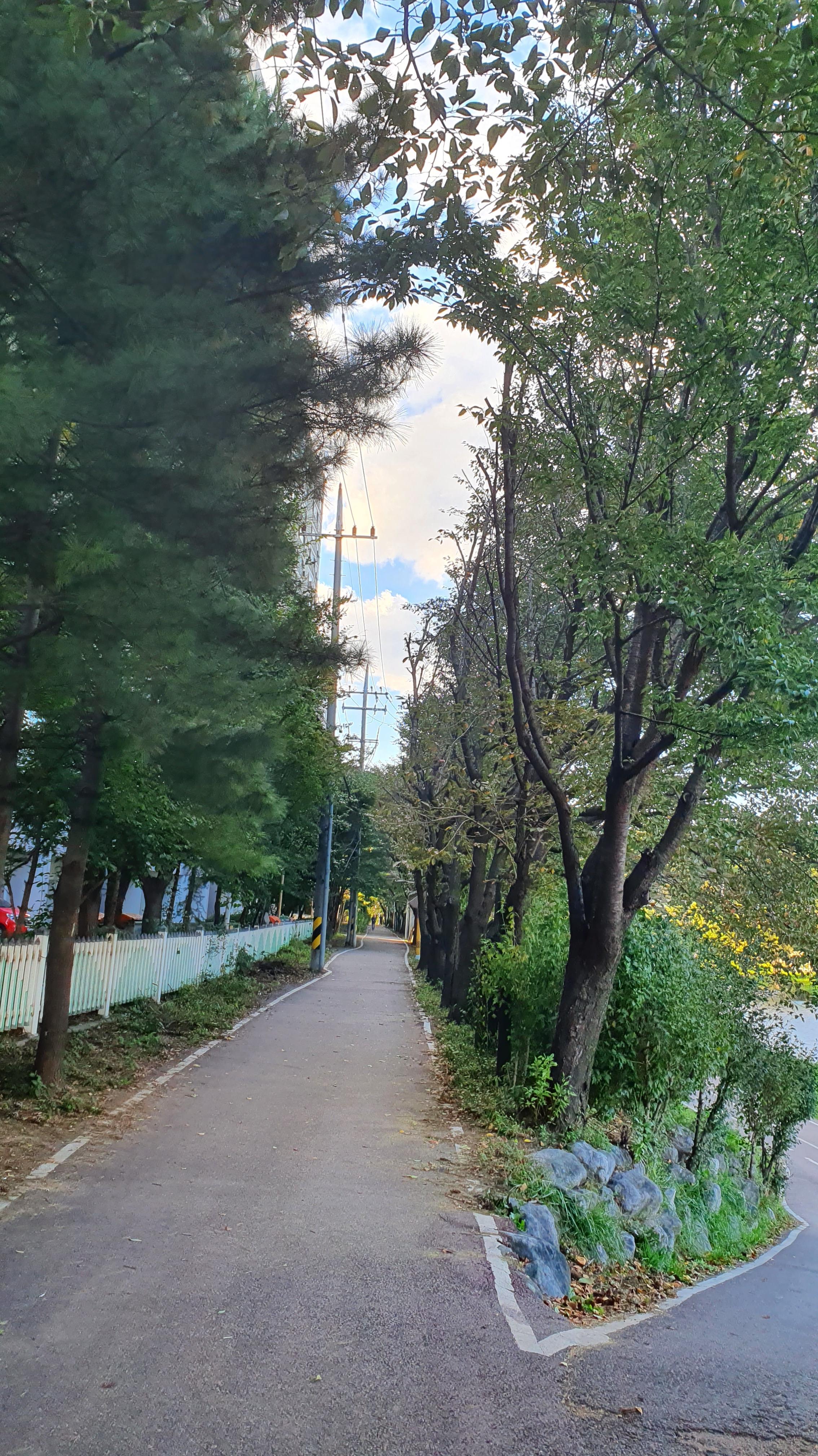 2022.10.17/ #도시기록 #안양 #동네 #골목 #안양2동 #양명교 #굴다리/ 안양2동 경남아너스빌아파트와 안양천서로(산책로) 중간의 뚝방길. 양명교에서 안양교까지 이어지는 이길은 봄에는 건너펀 양명고앞 도로에 멋지게 핀 벚꽃을 감상할수있고, 여름에는 나무숲 그늘이, 가을에는 단풍이 예쁜길로 안양에서 열 손가락안에 드는 정말 걷고싶은 고즈녁한 길이다. 산책로 중간에 잠시 앉아 책이라도 읽을수있는 벤치라도 있으면 얼만나 좋을까나.