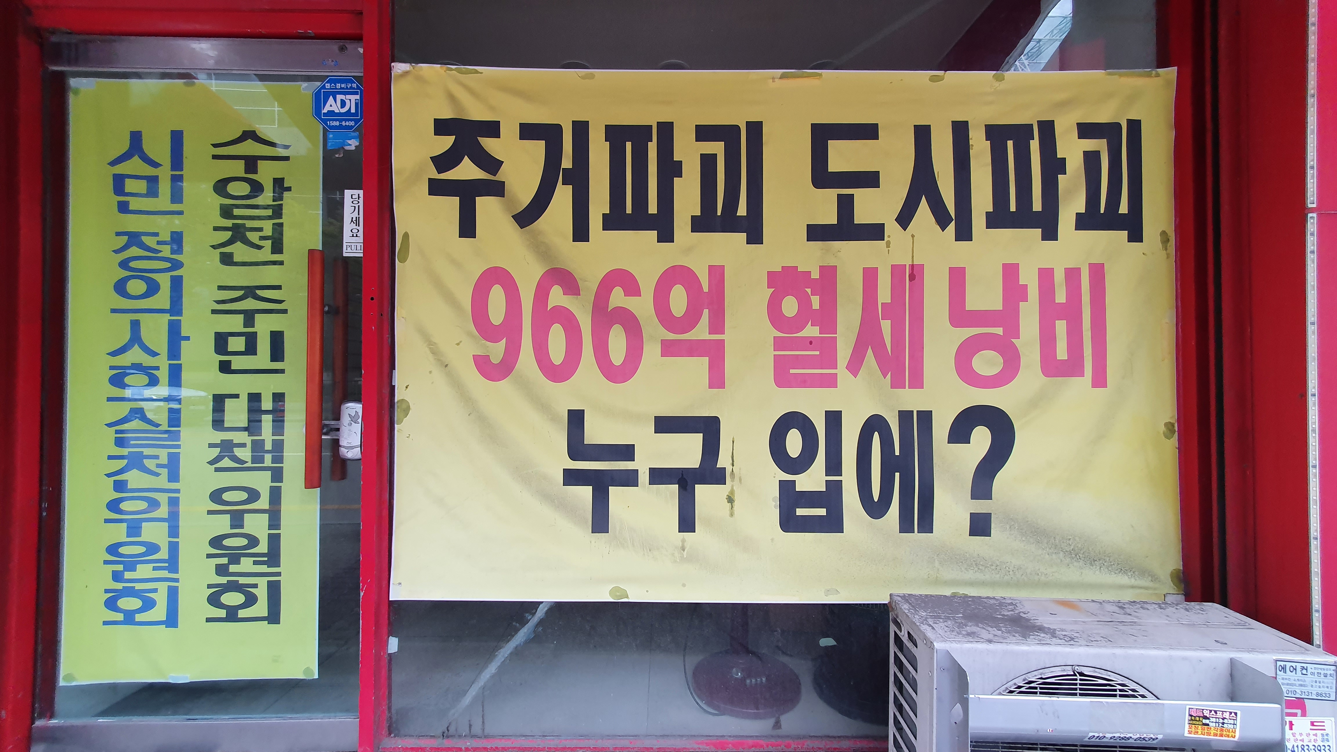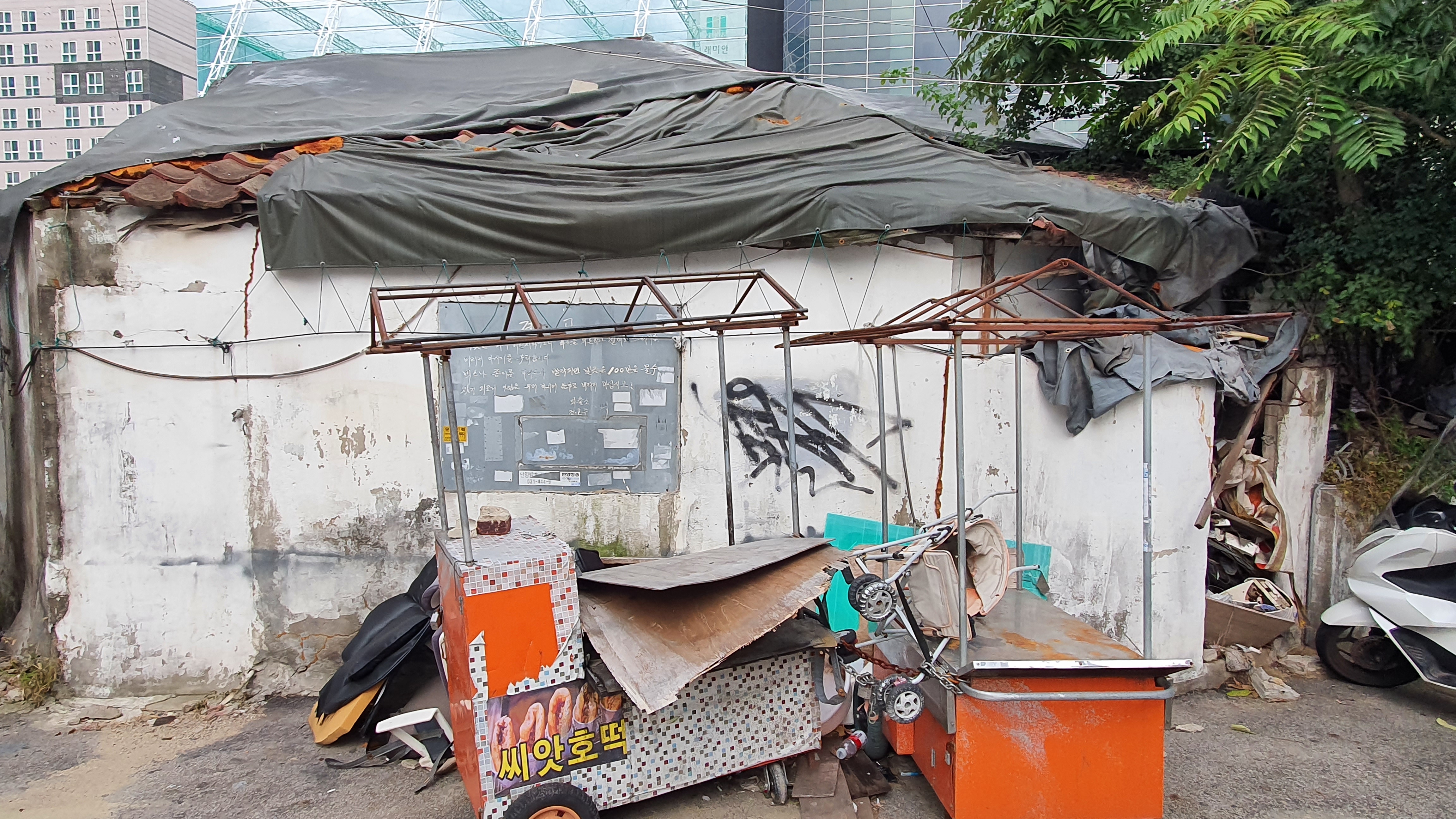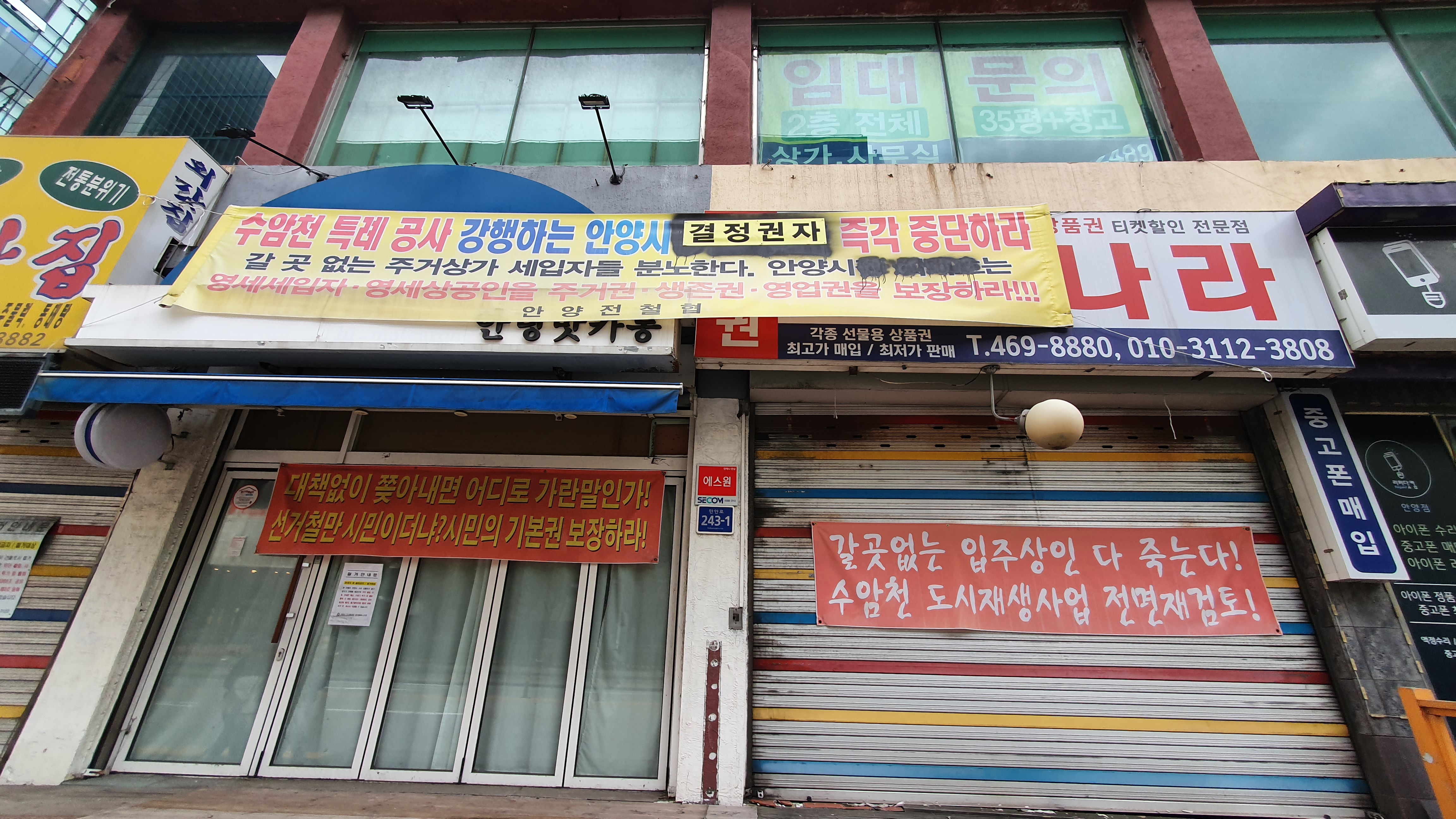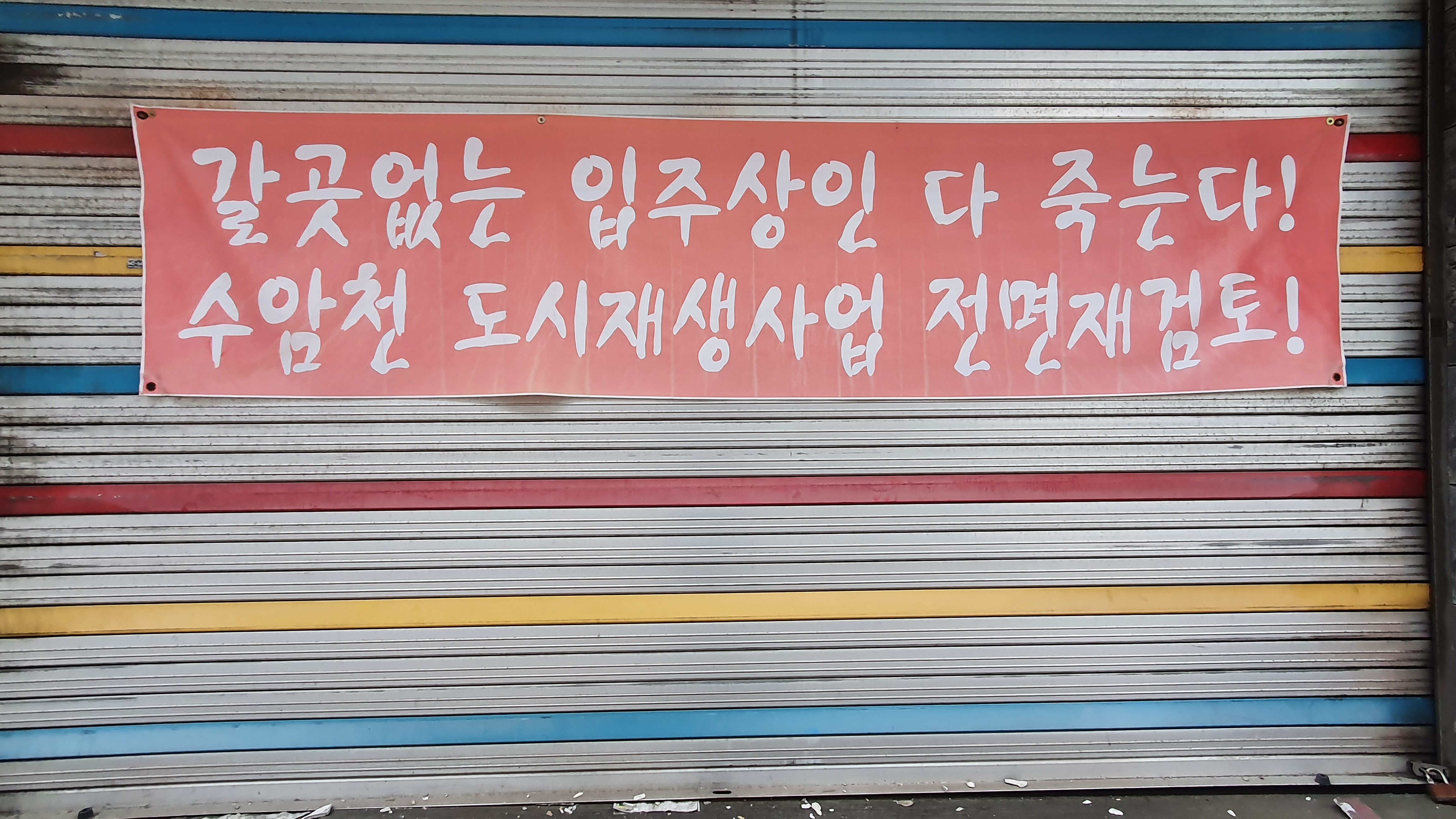 2022.10.06./ #도시기록 #안양 #동네 #골목 #기록 #수암천 #안양1동 #복개철거/ 안양시가 도시재생사업으로 추진하는 수암천변 정비사업. 대부분 떠나갔지만 아직 반대 목소리와 더불어 반발하는 주민들도 적지않다.