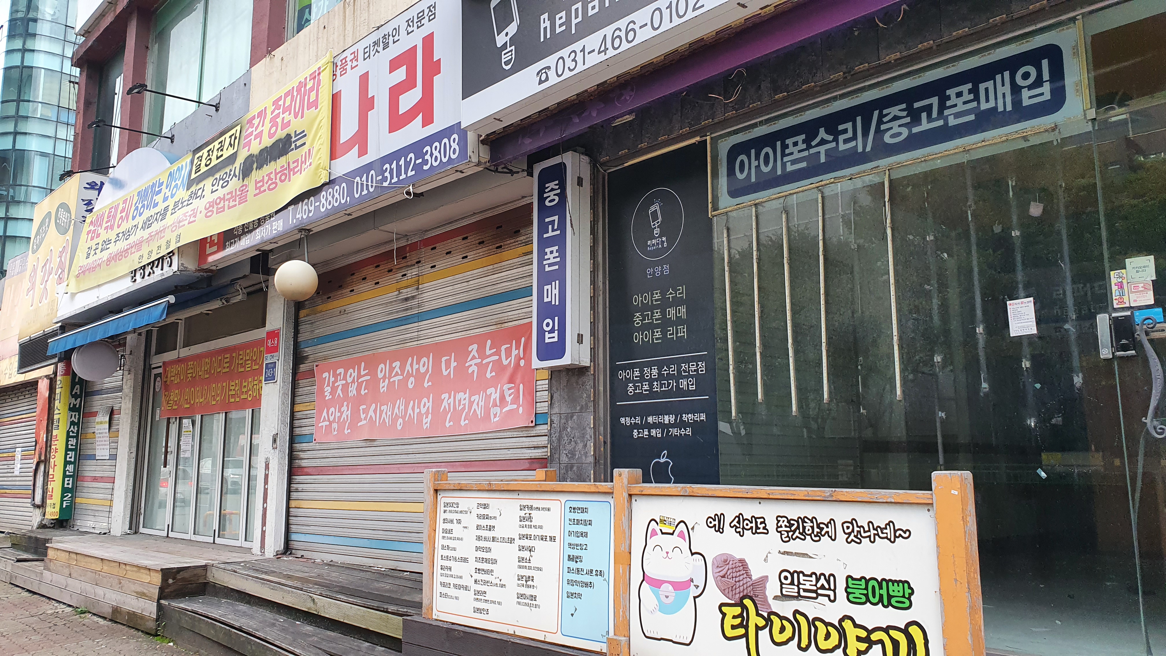 2022.10.06./ #도시기록 #안양 #동네 #골목 #기록 #수암천 #안양1동 #복개철거/ 안양시가 도시재생사업으로 추진하는 수암천변 정비사업. 대부분 떠나갔지만 아직 반대 목소리와 더불어 반발하는 주민들도 적지않다.