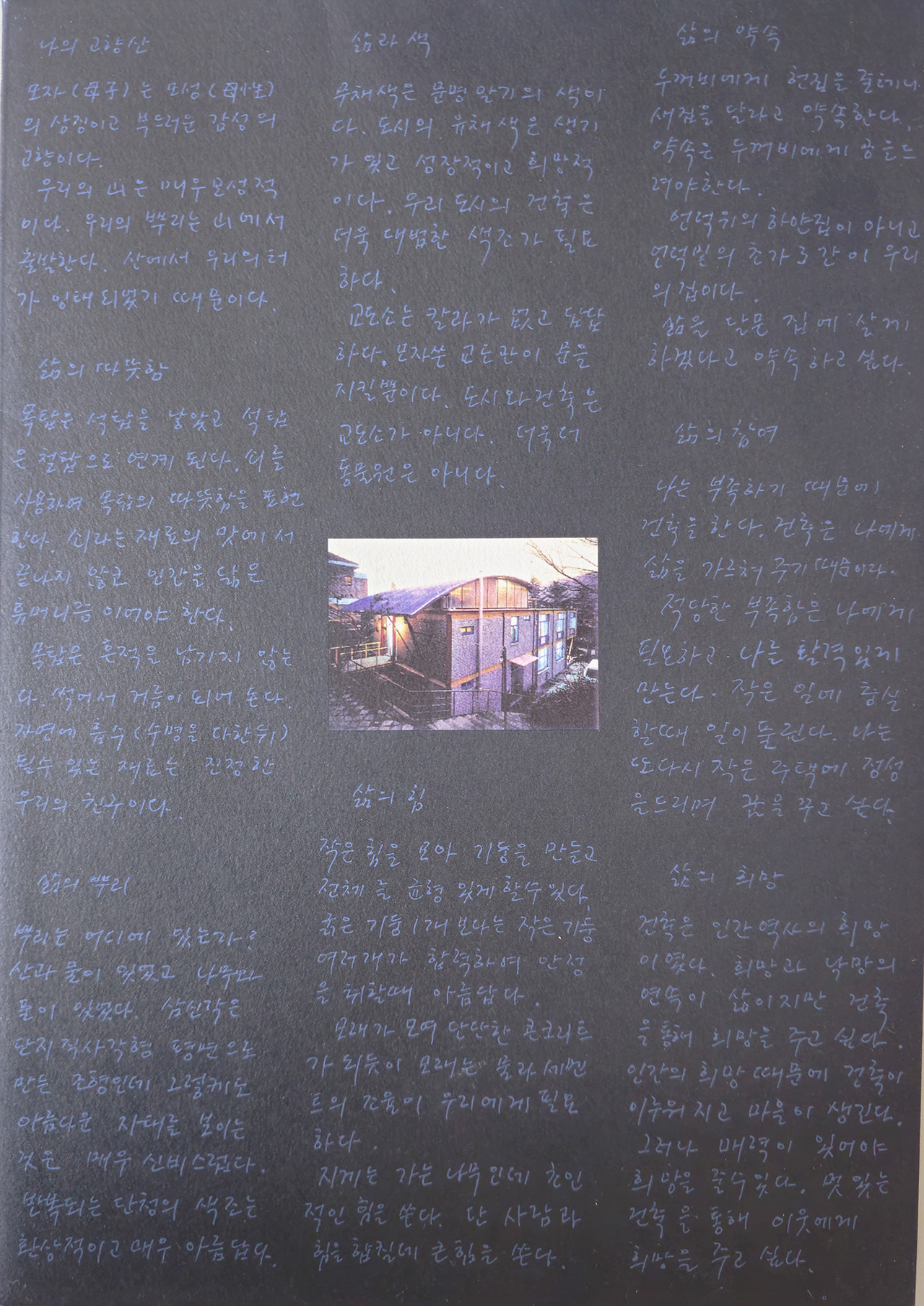 안양지역건축사회 46년사에 故 조명호 건축사 평전을 쓰고, 강명구 건축사를 비롯해 화가 이중섭, 박수근 선생, 공예판화가 유강렬 선생 등 건축계·예술계 인물들을 입체적으로 조명하고자 한다.