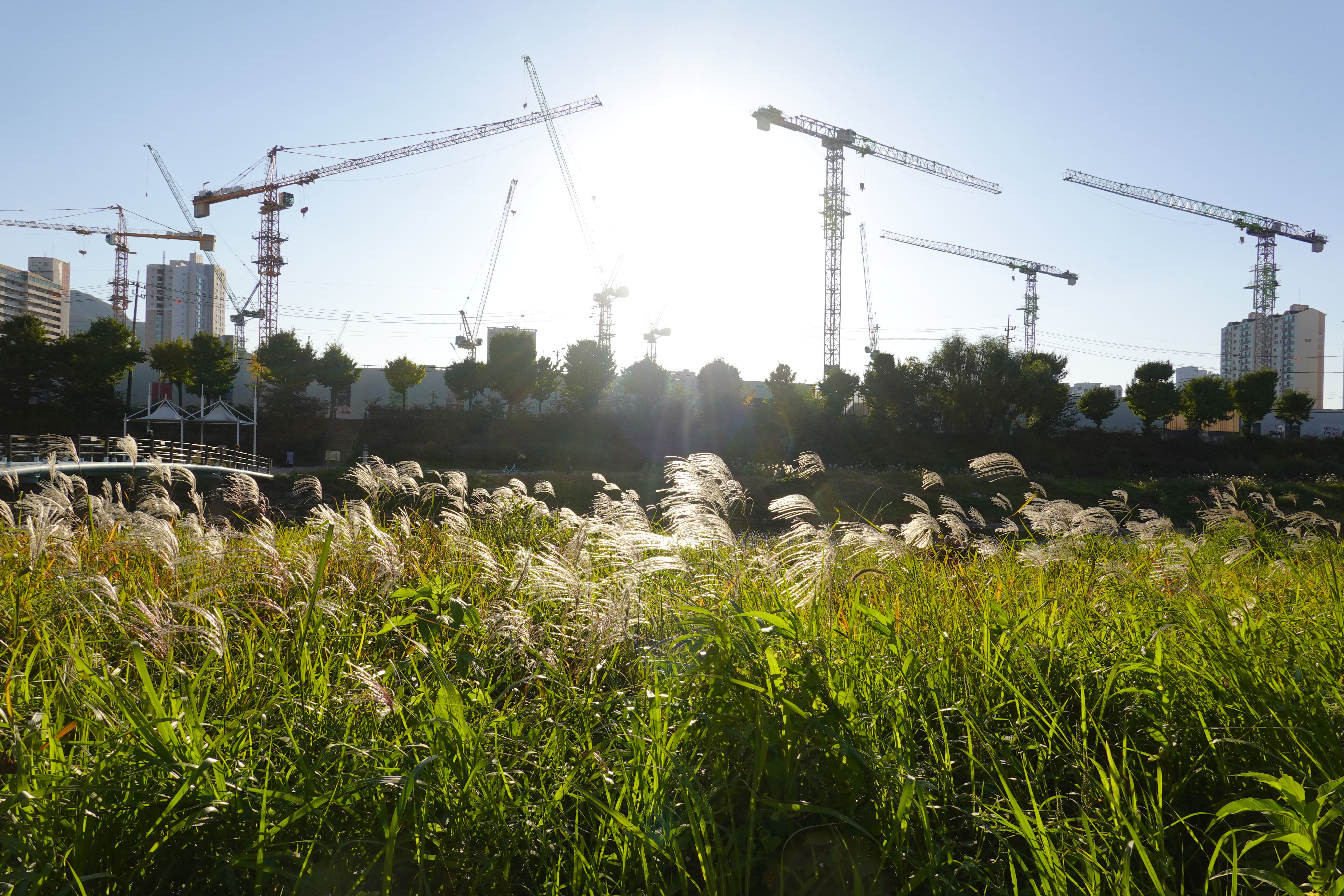 2022.10.23/ #도시기록 #안양1동 #재건축 #진흥/ 안양1동 비산 진흥아파트 단지가 모두 헐리고 새건물을 짓기 위한 타워크레인들이 단지내에 우뚝 서있다. 이곳은 과거 굴뚝공장 섬유회사로 1955년 삼흥방직이 자리하고 있었다. 삼흥방직은 1953년 1월 서선하 사장이 설립했다가 1956년 금성방직 김성곤 사장이 인수해 태평방직으로 바뀐 곳으로 안양3동의 금성방직과 함께 안양에서 가장 큰 공장 중 하나였다.