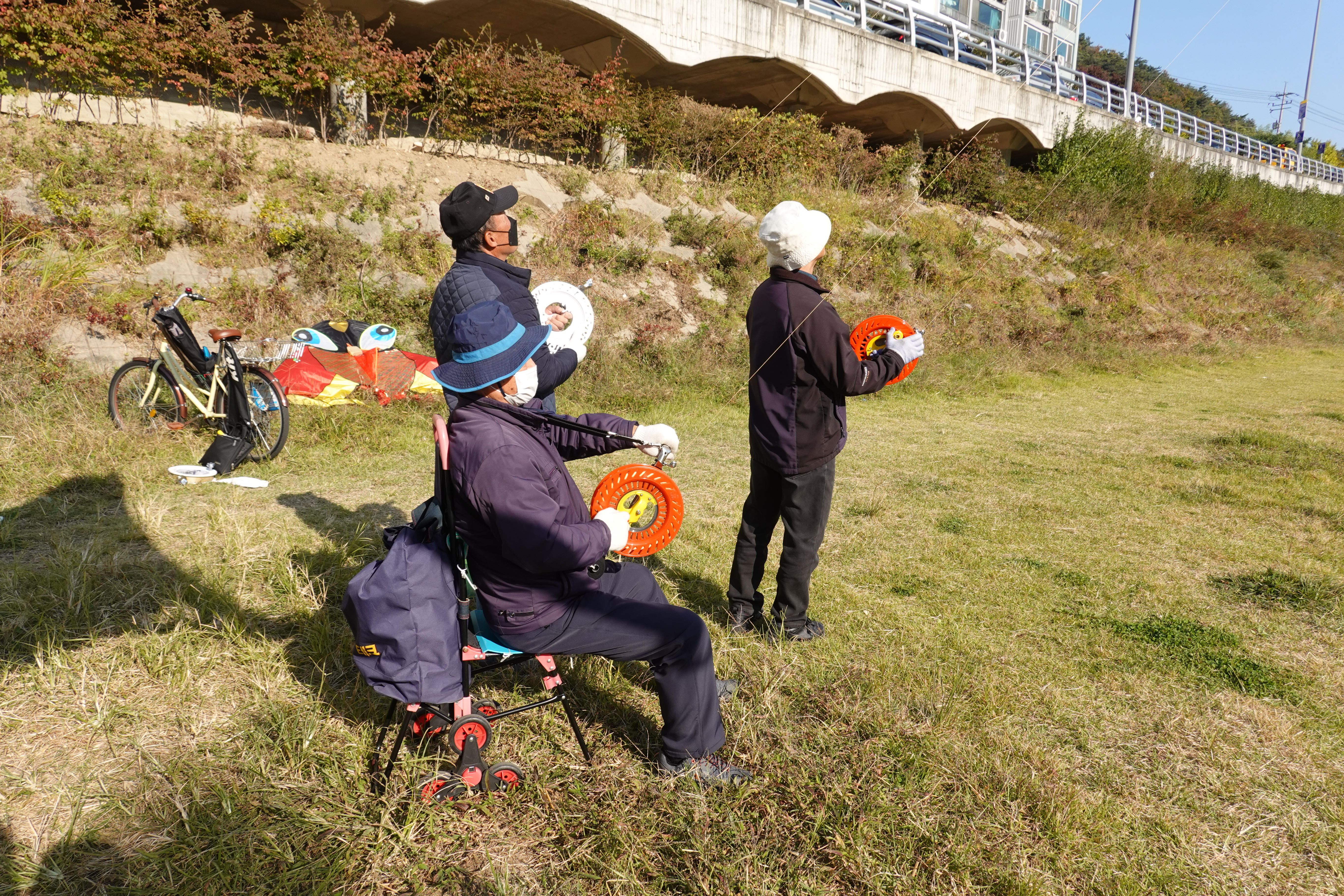 #도시기록 #안양천 #놀이터 #연날리기 #문화도시/ 안양천 안일초교앞 세월교 다리와 다리 건너 대우아파트앞 안양천 쉼터에서 만난 연 날리는 풍경. 자고로 하천은 물길이자 바람길이라 했던다. 안양천을 따라 부는 바람이 장난이 아니다. 연날리기에는 금상첨화로 연날리기 사람들이 이곳으로 모여드니 그야말로 연날리기 놀이터다. 이곳에는 주말과 일요일에는 물론 평일에도 3-5명 정도의 사람들이 나와 연을 시중에서 구입한 연과직접 만든 자작연을 날린다. 평촌 중앙공원과 달리 동호회조차 없다고 한다. 연날리기가 좋아 찾아오는 자유로운 사람들이다. 한편 이곳에서 하류쪽으로 내려가다 만나는 안양대교 다리밑은 어르신들의 장기와 바둑 명소다. 이곳은 안양은 물론 수도권에서 장기 고수들이 모여드는 곳이다.