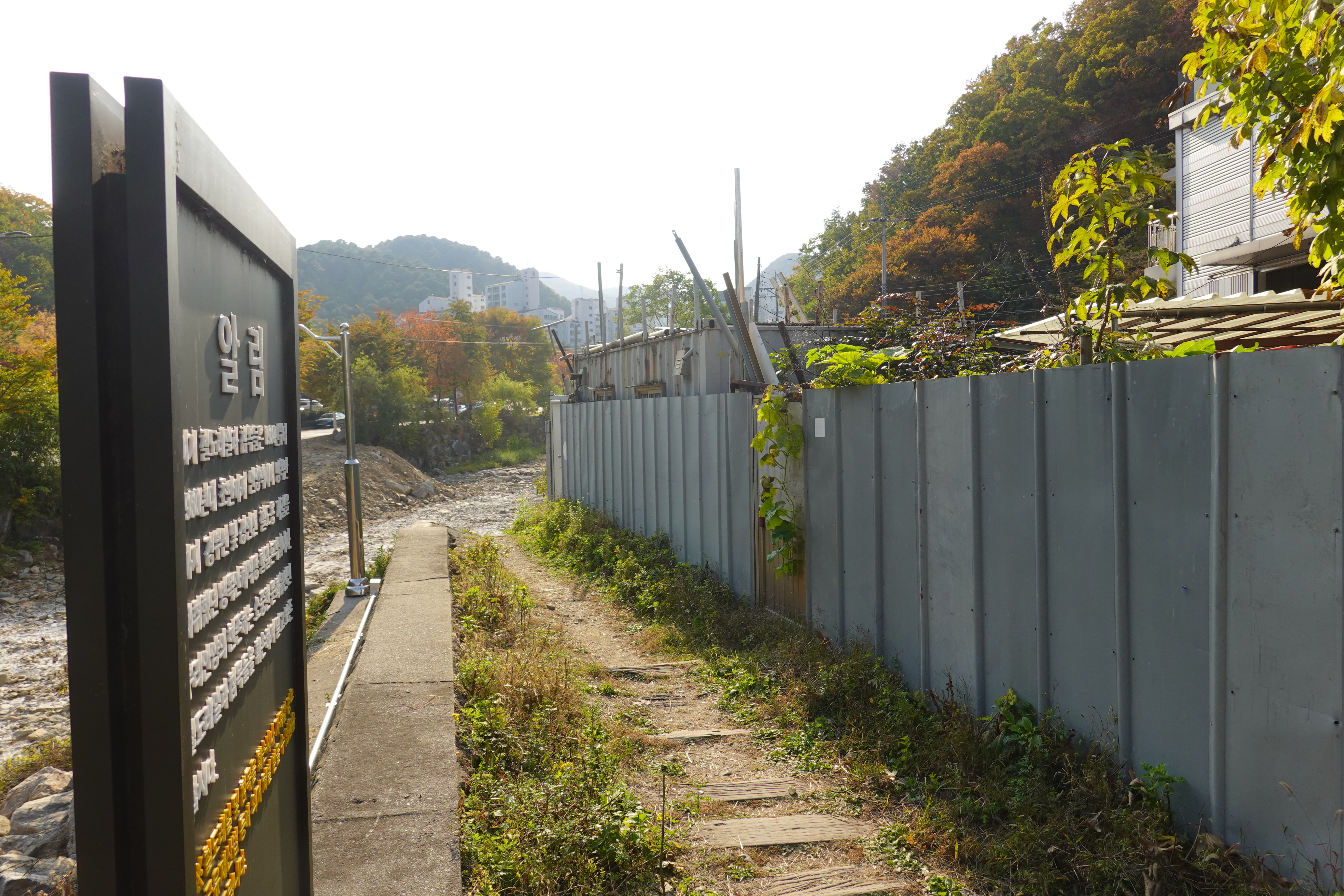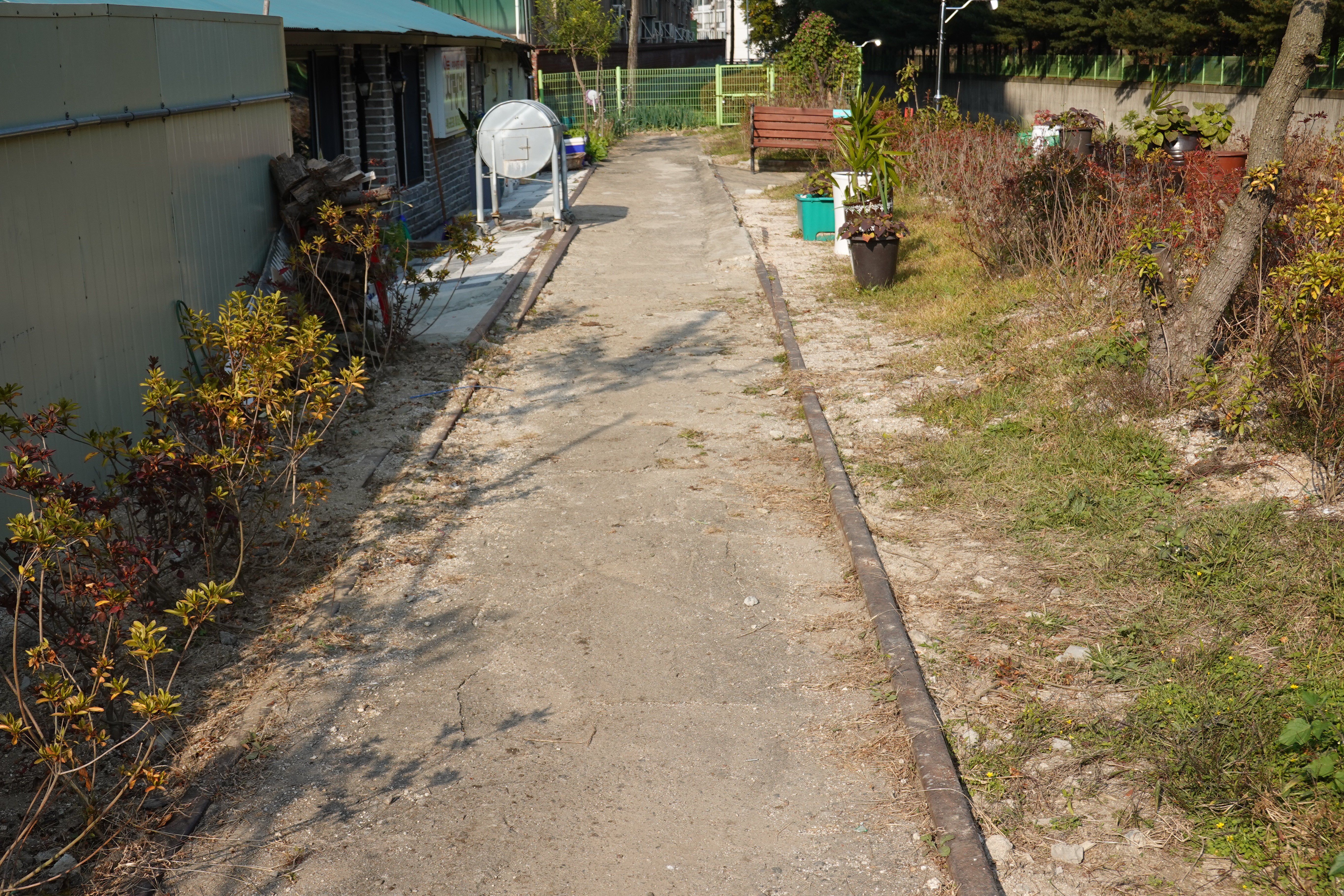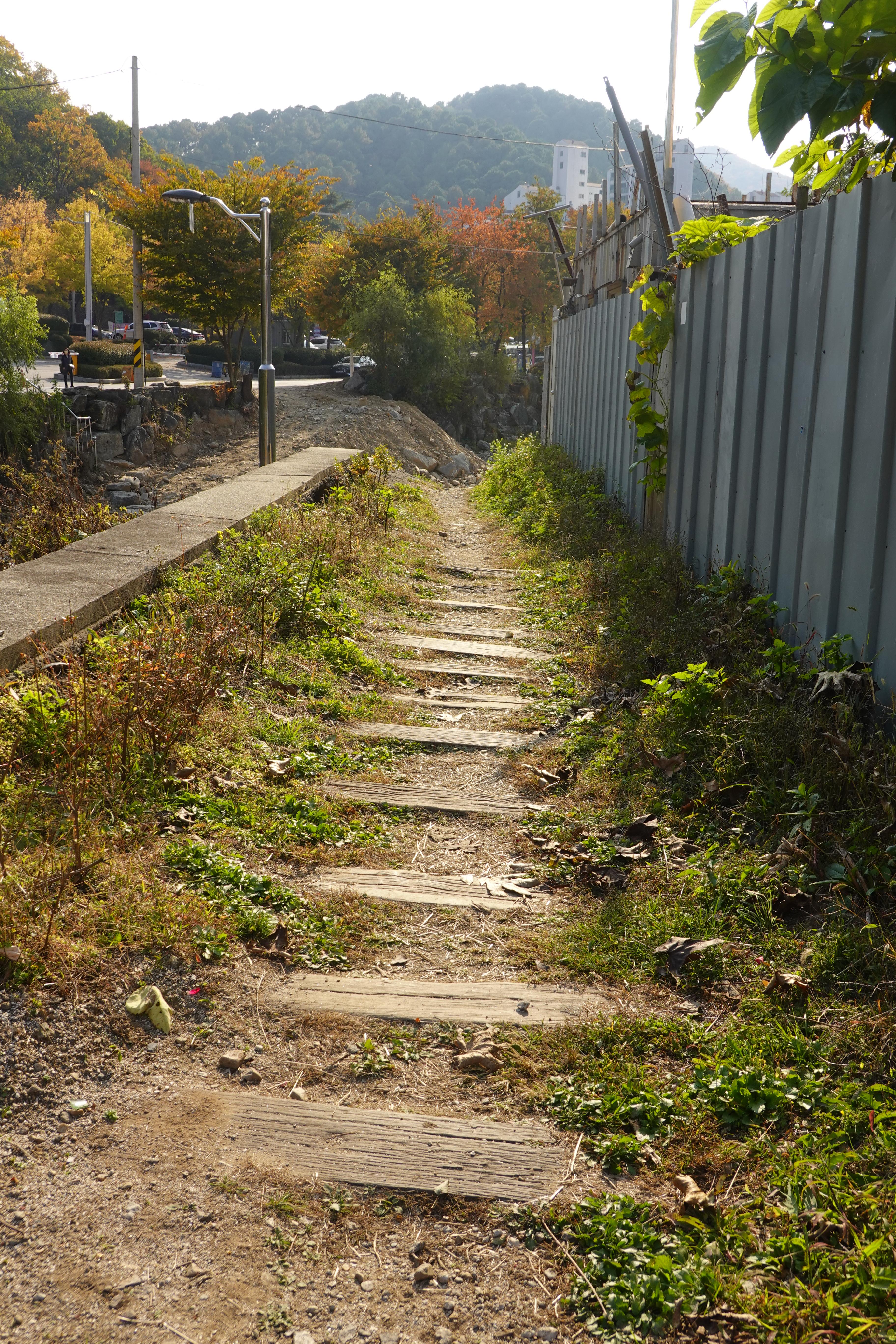 2022.10.27/ #도시기록 #병목안철길 #안양9동/ 안양약부터 병목안 까지 채석장행 철길 흔적이 마지막 남아 있던곳. 20009년 무렵만 해도 1930년대 만든것으로 추정된 철도 쇠못까지 있었는데 지금은 나무 침목과 철도 레일 약간만 남고 누군가 다 뽑아가 없어졌다. 시장까지 다녀가도 소용없네. 문화유산 보존과 보전에 대한 관심이 없는 안양시.