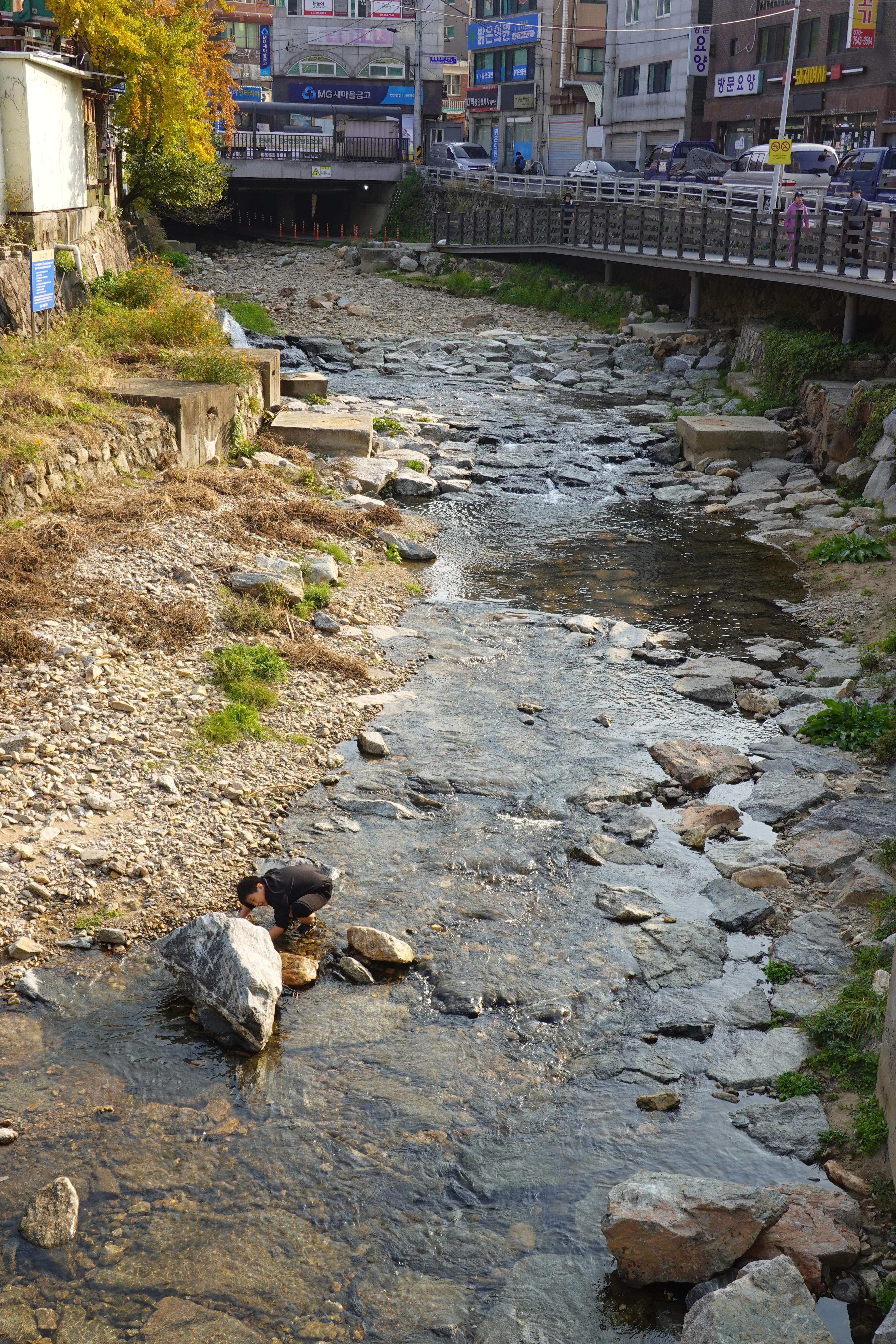 2022.10.27/ #도시기록 #수암천 #물놀이 #양지3교/ 건천이었던수암천에 물이 흐르니 놀이터가 됐다. 10월 27일 쌀쌀한날씨에도 아이들이 물놀이를 하느라 신났다. 양지3교 다리 밑은 아이부터 어른까지 사계절 마실 나오는 쉼터이자 놀이터다. 문화도시, 공공예술 차원에서 제대로 된 쉼터가 마련됐으면 좋겠다.