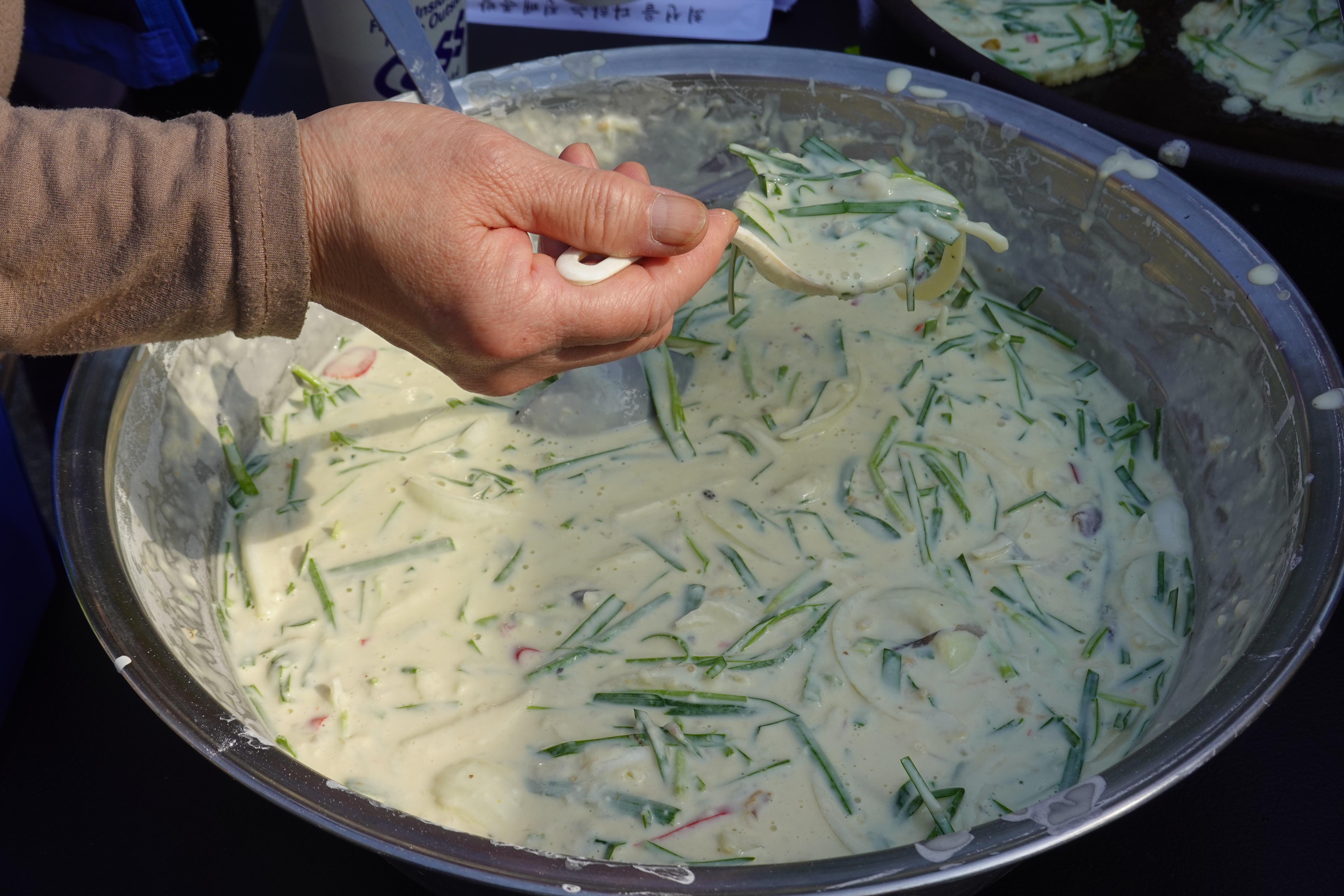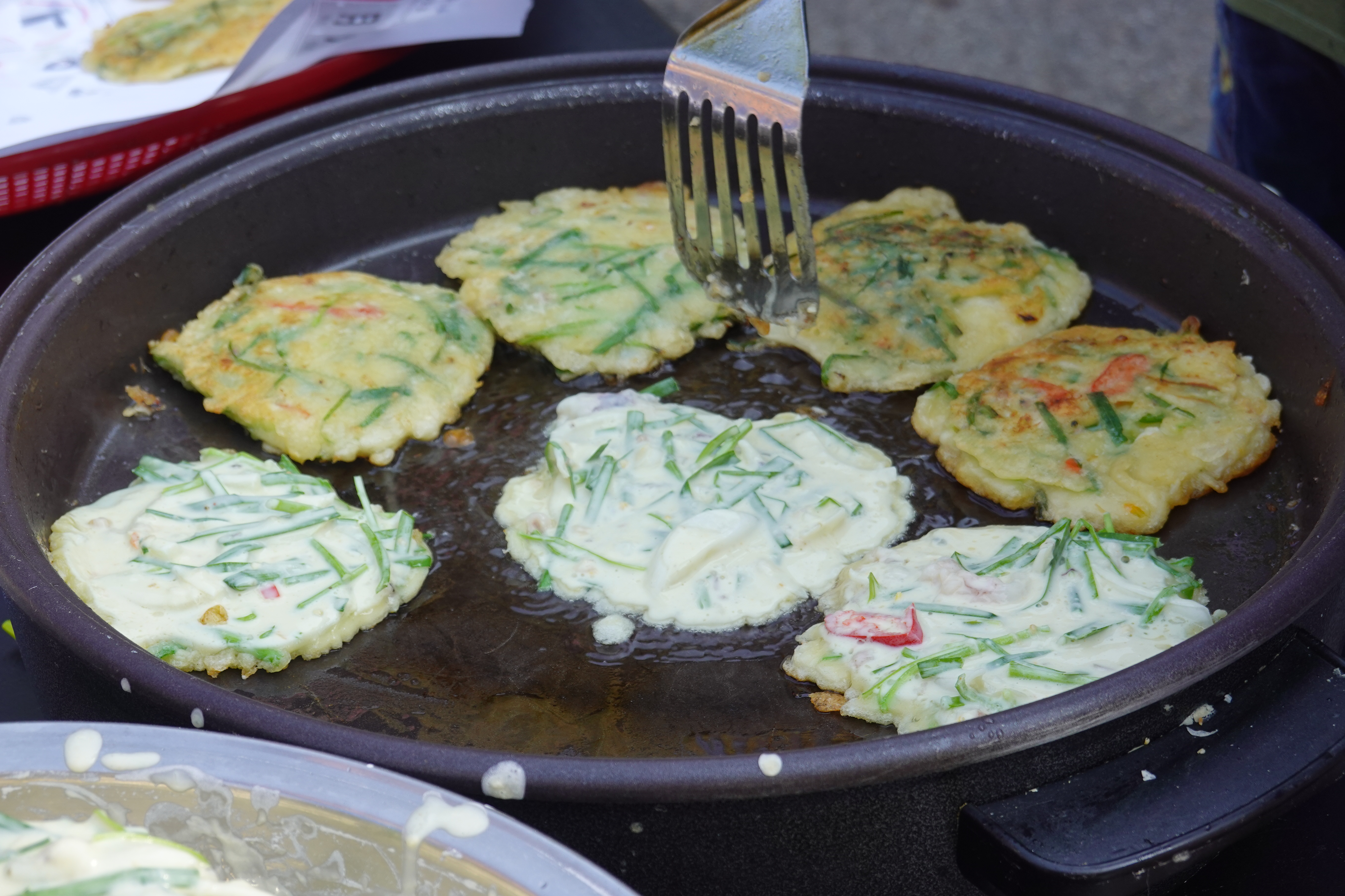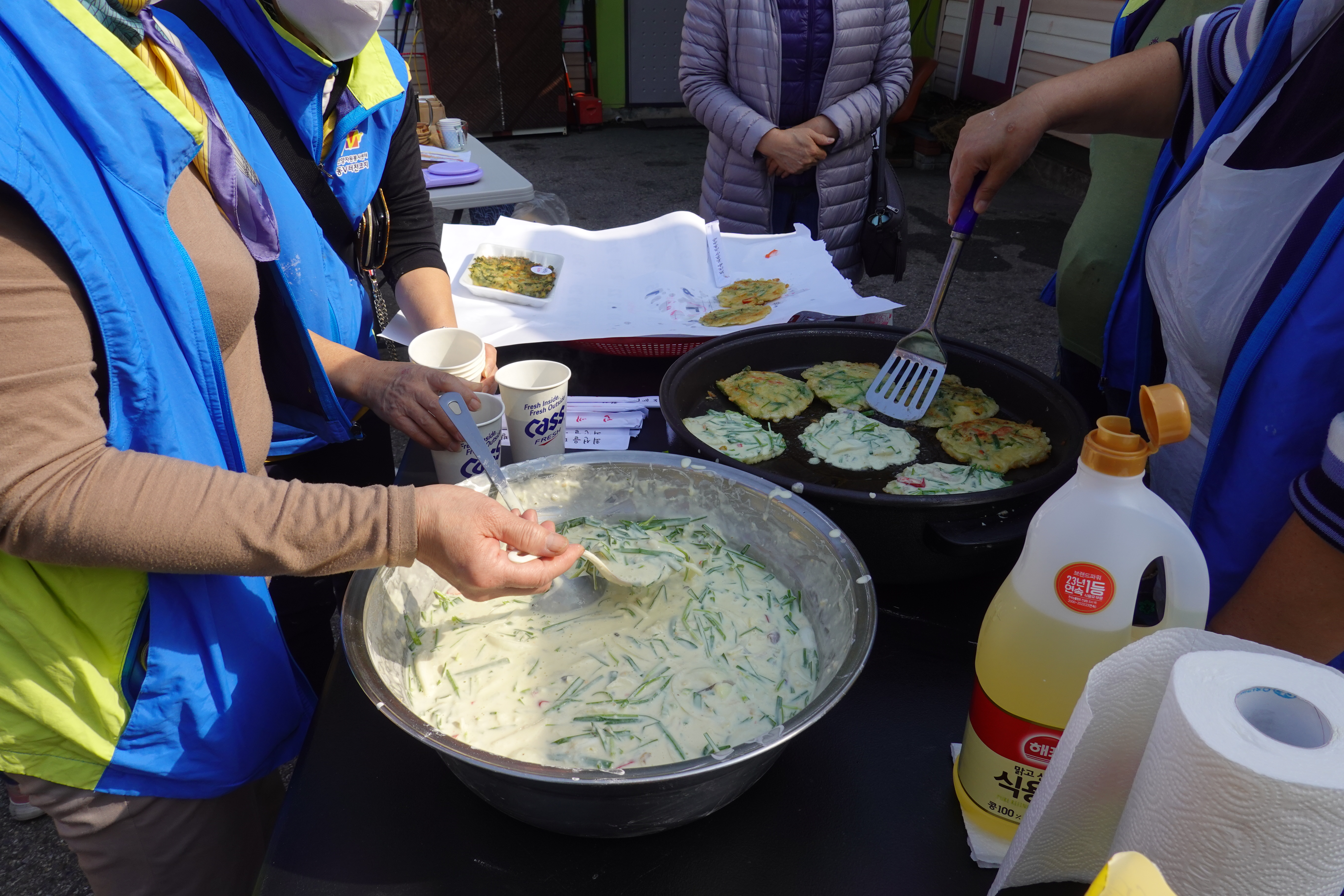 장터에 먹거리가 빠질 수 없듯 해물파전을 즉석에서 따뜻하게 부쳐 흥을 돋우고 다회용기에 판매하며, 환경을 생각하는 장터이다 보니 텀블러를 가져오는 주민들에게 차를 무료로 제공하고 그냥 오신 분들에겐 공유 텀블러로 1회 용품 사용을 하지 않은 장터였다.
