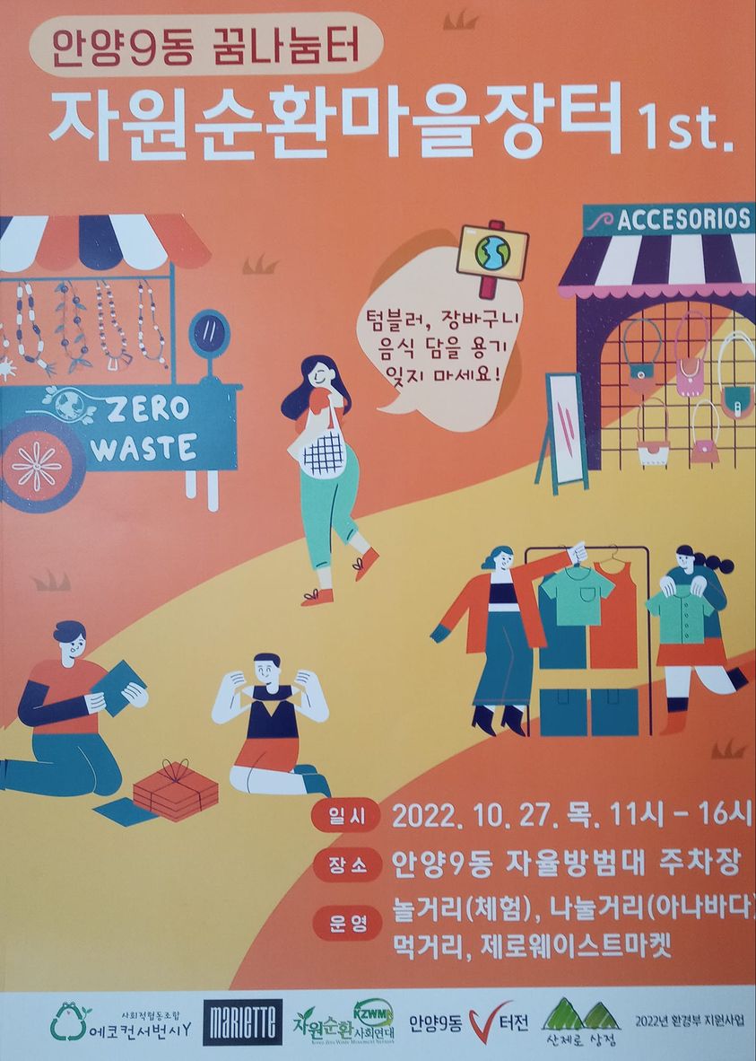 안양9동에서 열린 이날 행사는 2022 환경부 민간단체 지원사업으로, 자원순환사회연대가 주최하고 사회적협동조합 에코컨서번시Y와 사회적기업 마리에뜨가 협업하여 자원순환마을만들기프로젝트로 양성한 안양9동꿈나눔터 마을자원순환활동가들이 주축이 되어 기획한 행사이다.