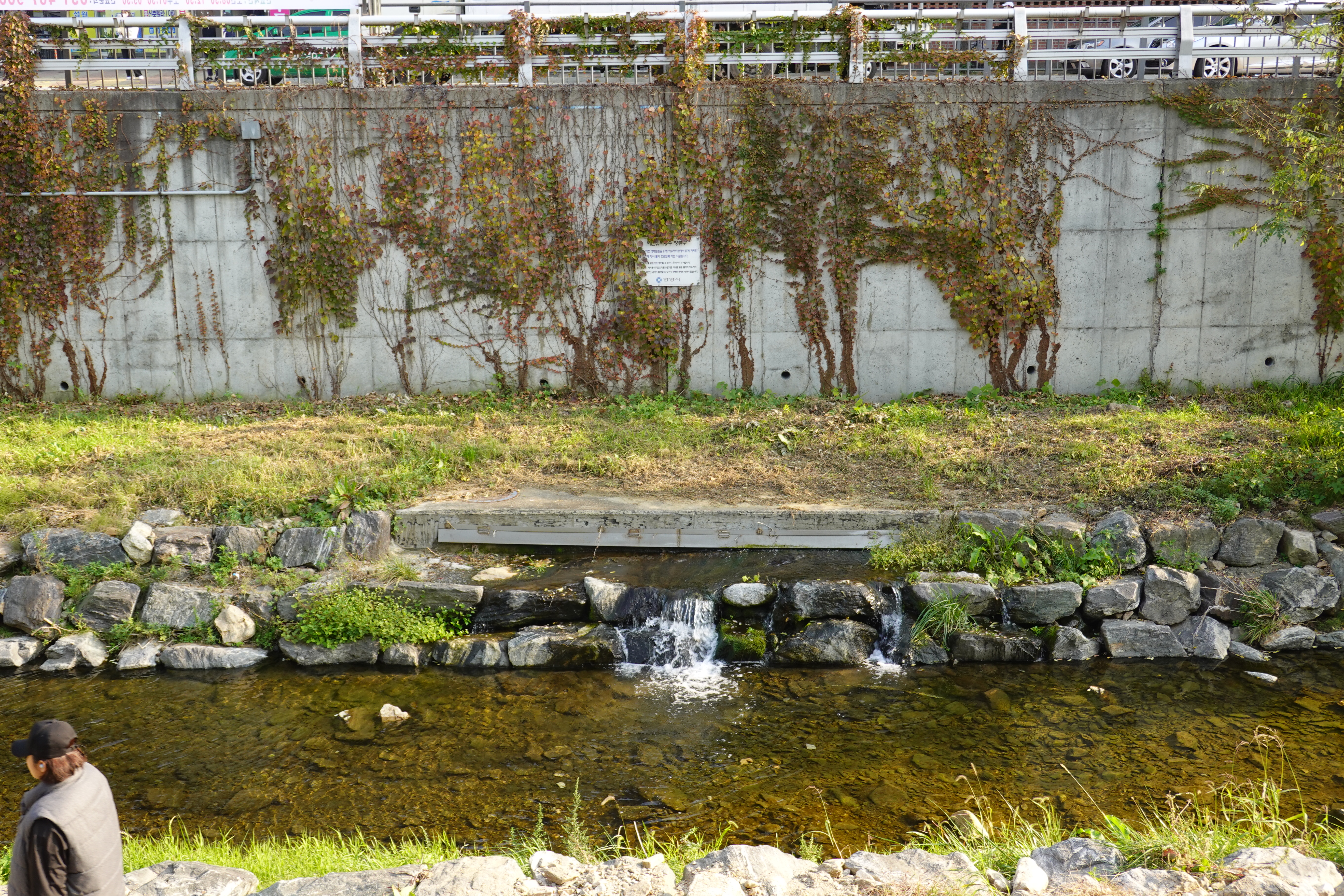 2. 공원교 부터는 하류쪽으로 하천바닥에 물이 없다. 암반 밑으로 빠는듯 싶다(시가 하천 물이 하천 바닥으로 가장 많이 빠지는 안양9동 공원교에서 금용2교 구간 하천바닥에 황토흙도 쏟아붓고 시멘트물을 붓는 등 건천화 해결을 위해 부단히 애쓴 노력과 흔적들이 하천 곳곳에서 보인다.