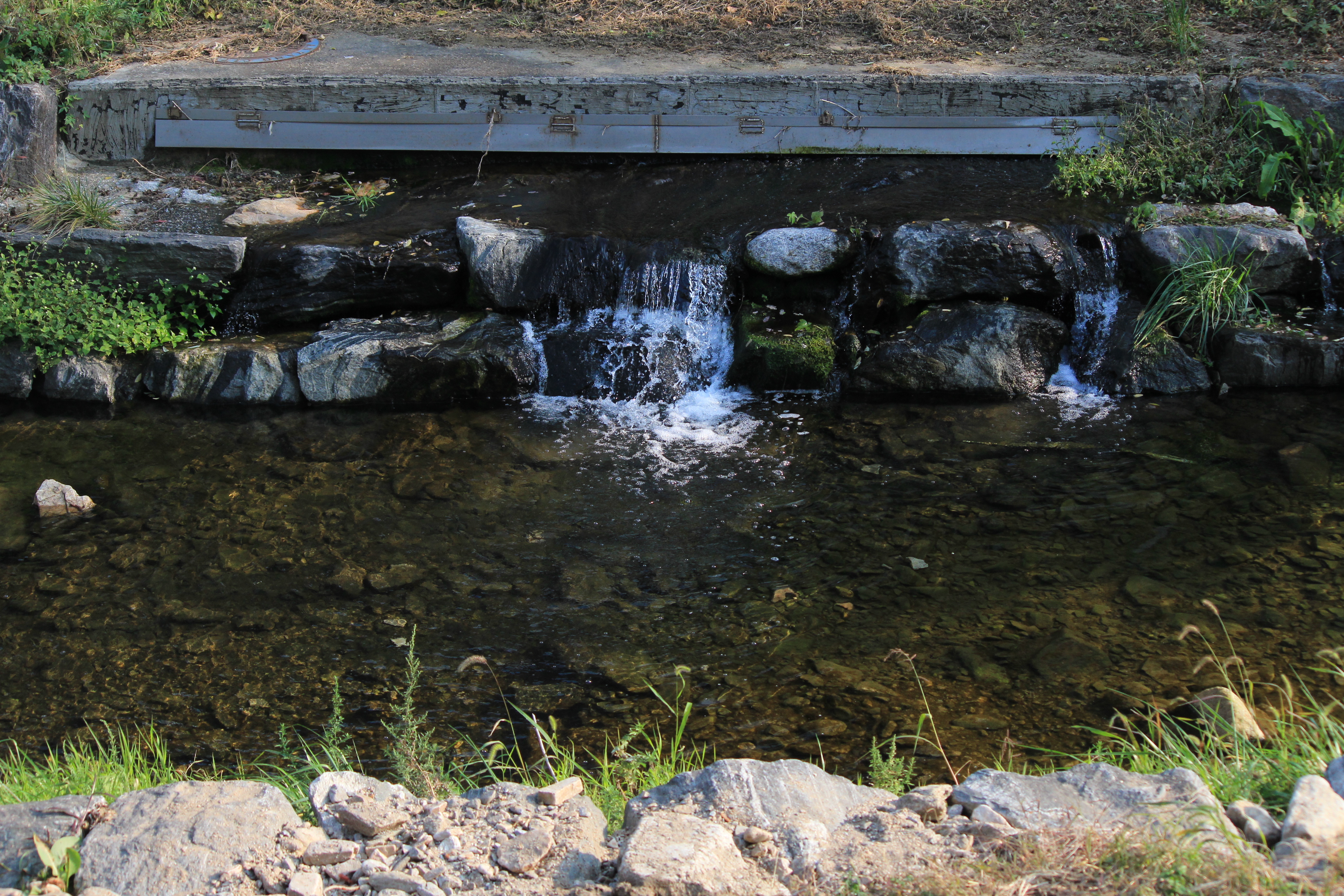 5. 양지1교 다리 상류 10미터 지점에 하천유지용수방류구가 있어 물이 나온다. 상류에서 내려오는 물과 햡쳐져 삼덕공원쪽으로 흐른다.