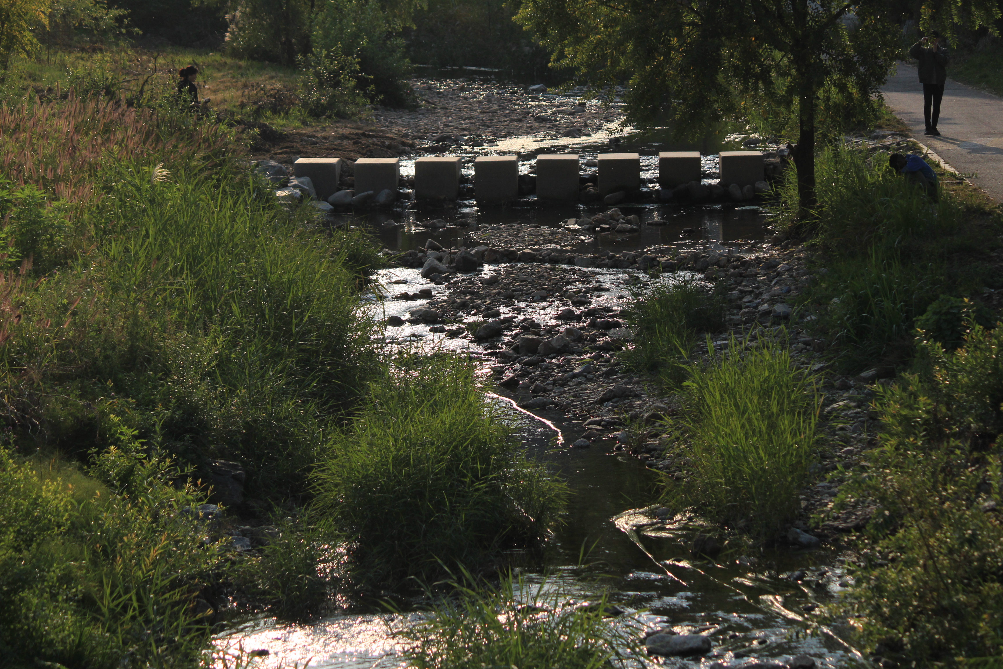 1. 건천화 방지를 위해 하천유지용수가 공급되는 병목안시민공원 입구 만남의다리에서 공원교까지의 하천바닥 응덩이에는 물이 있다.(피래미들 바글바글)