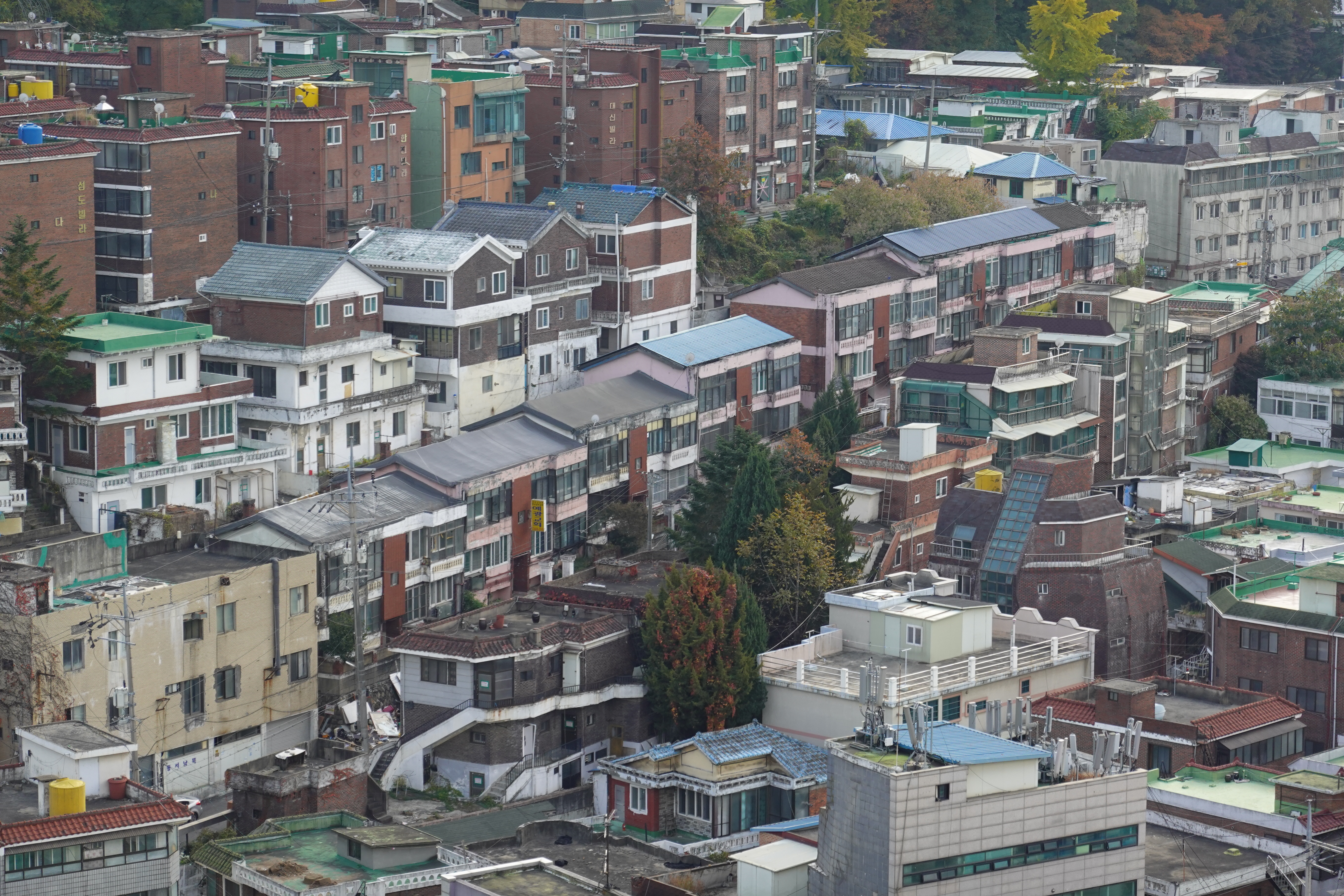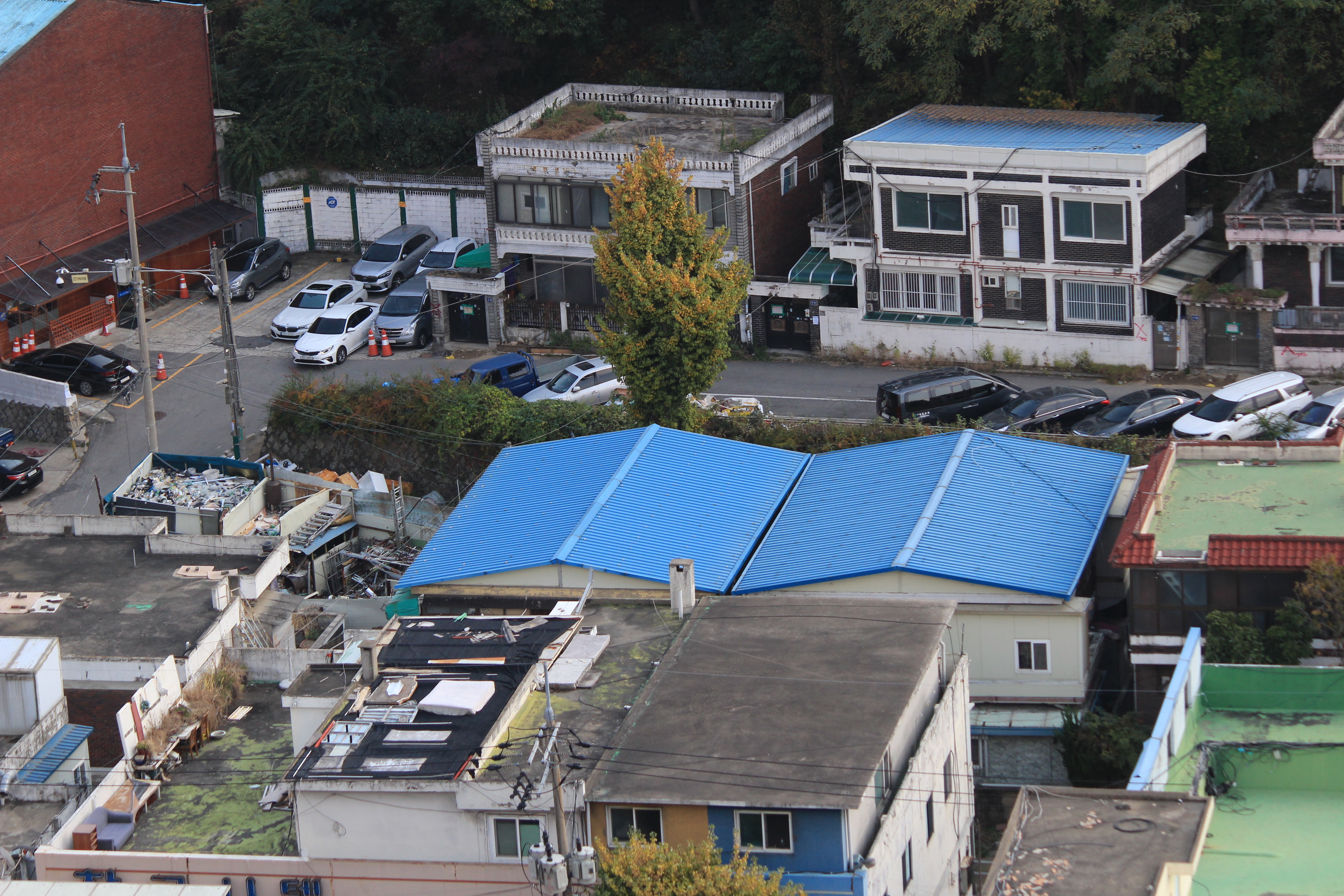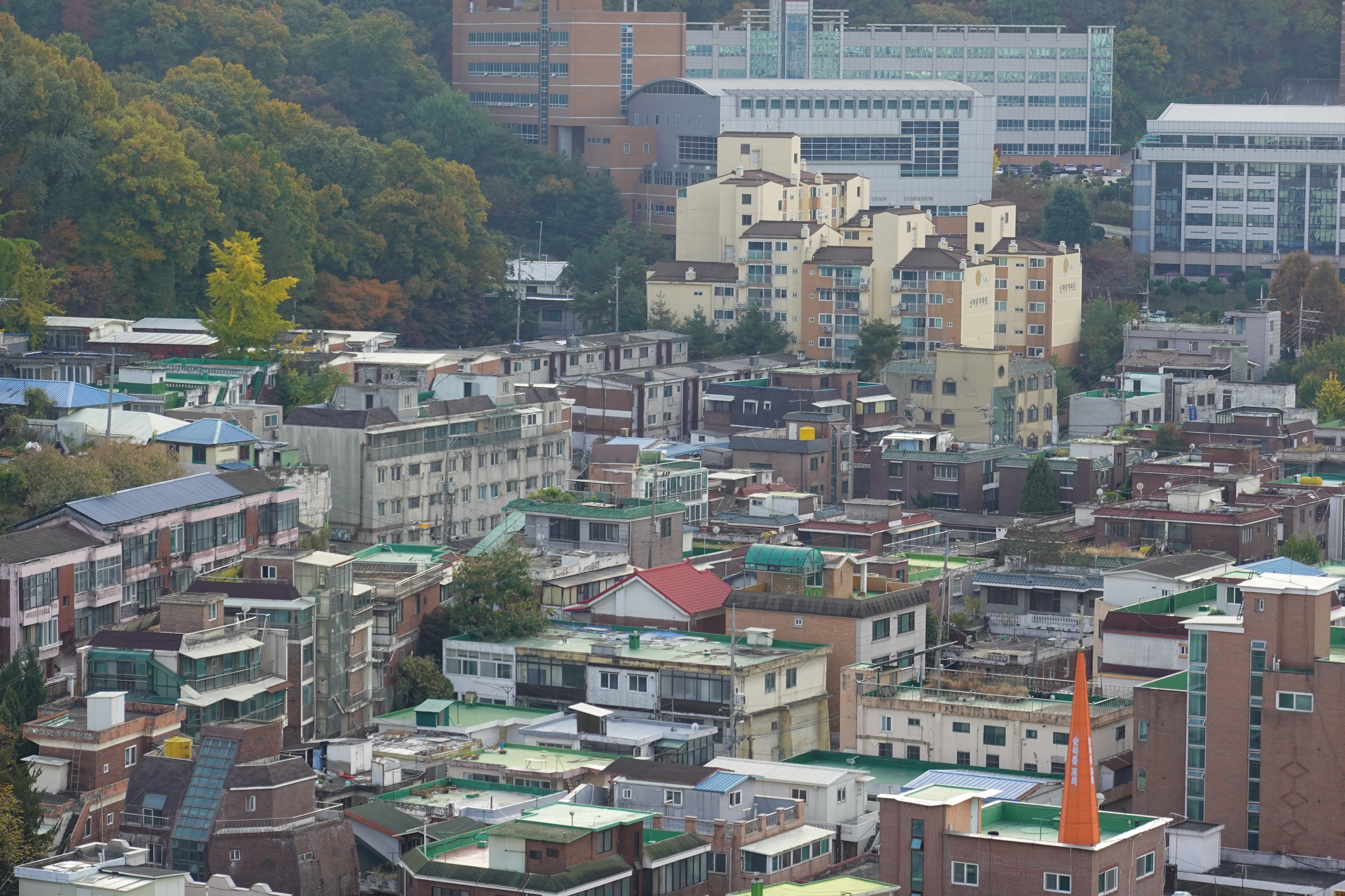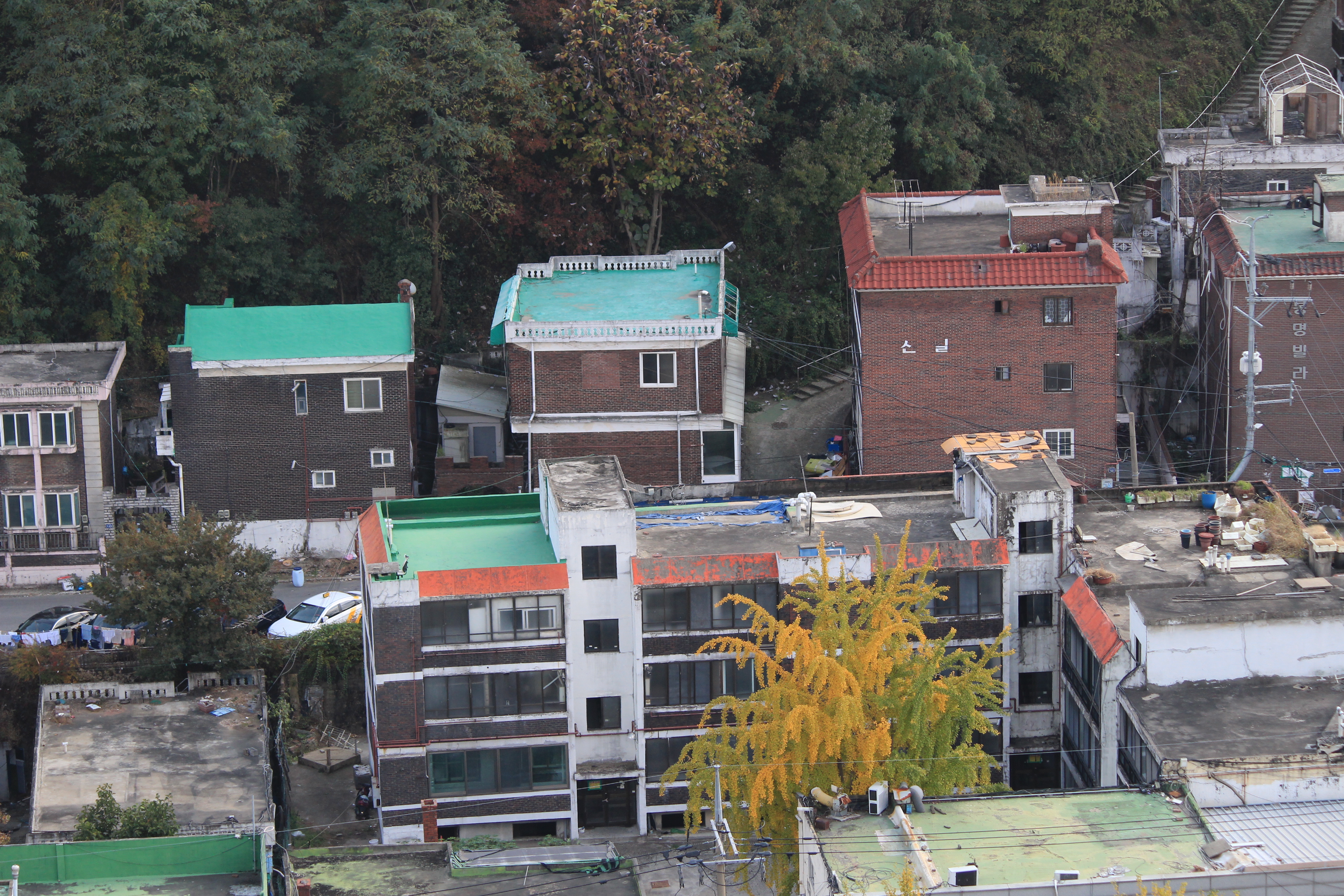 2022.10.29/ #도시기록 #상록마을 #안양8동/ 재개발로 주민 대부분이 이사를 떠나고 철거를 앞두고 있는 동네. 안양8동 상록마을에 마지막 가을이 찾아왔다, 뒷산은 울긋불긋 가을 단풍으로 물이들고 골목에는 오가는 사람이 없어 적막감이 감돈다.