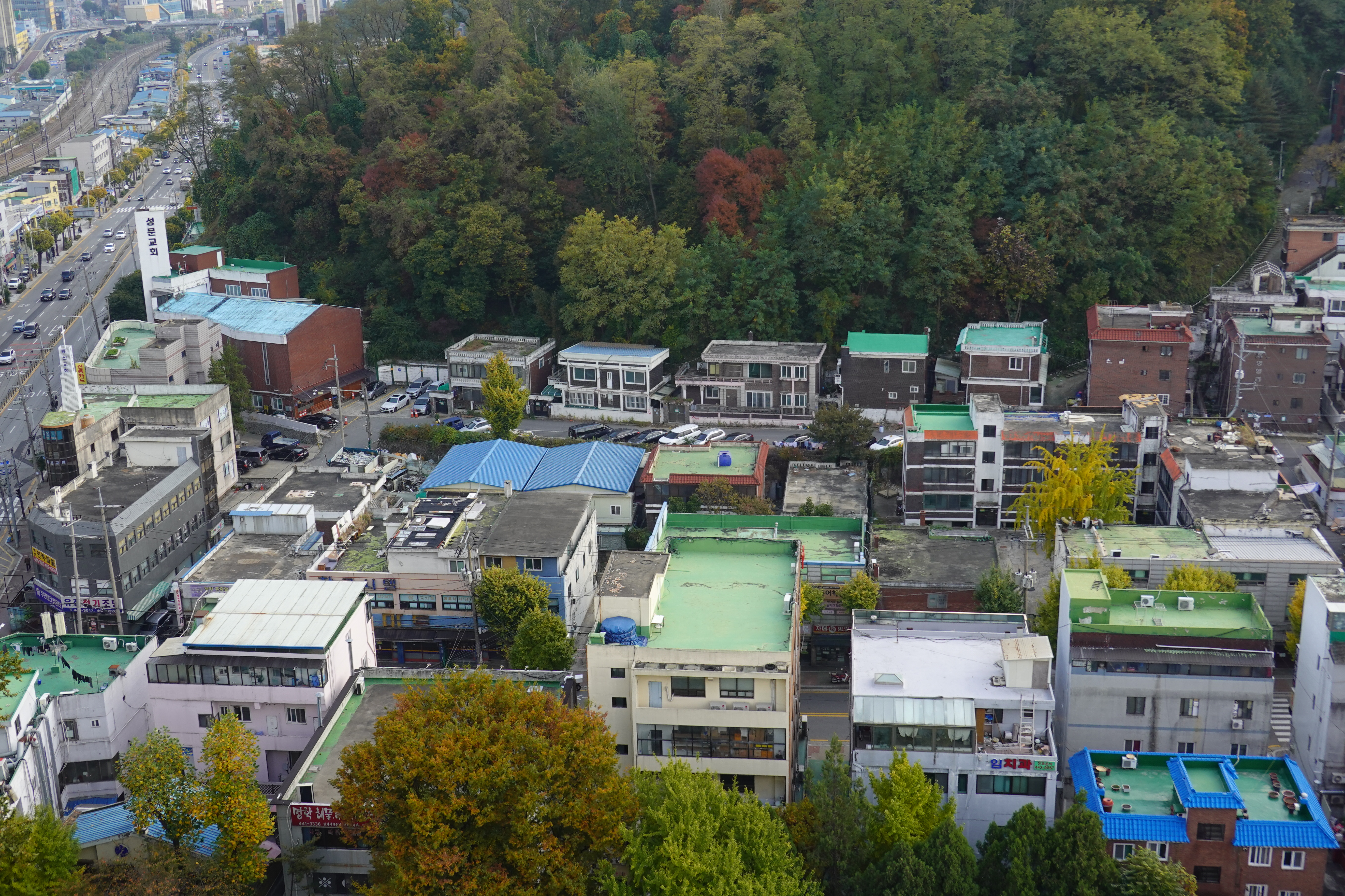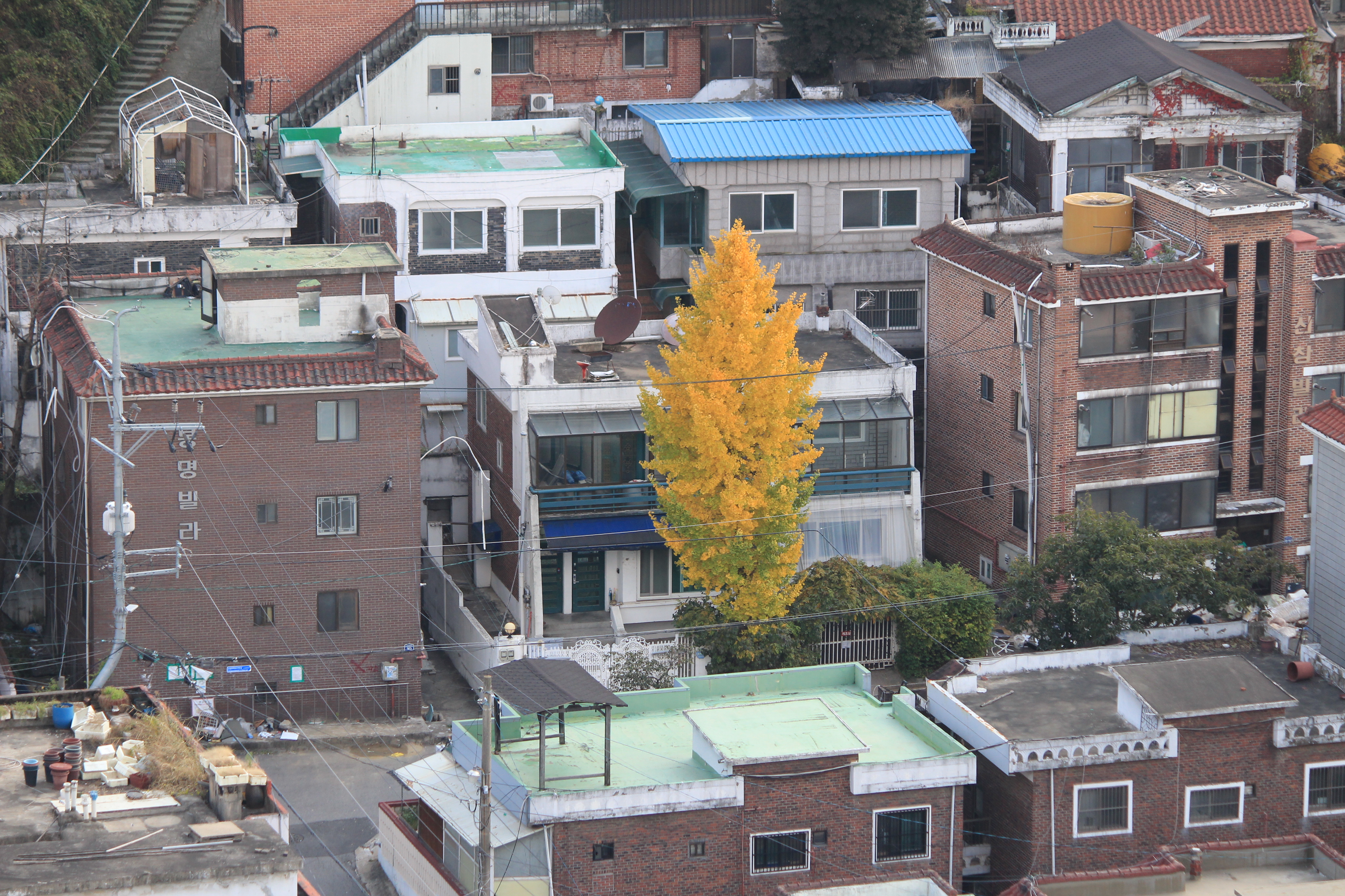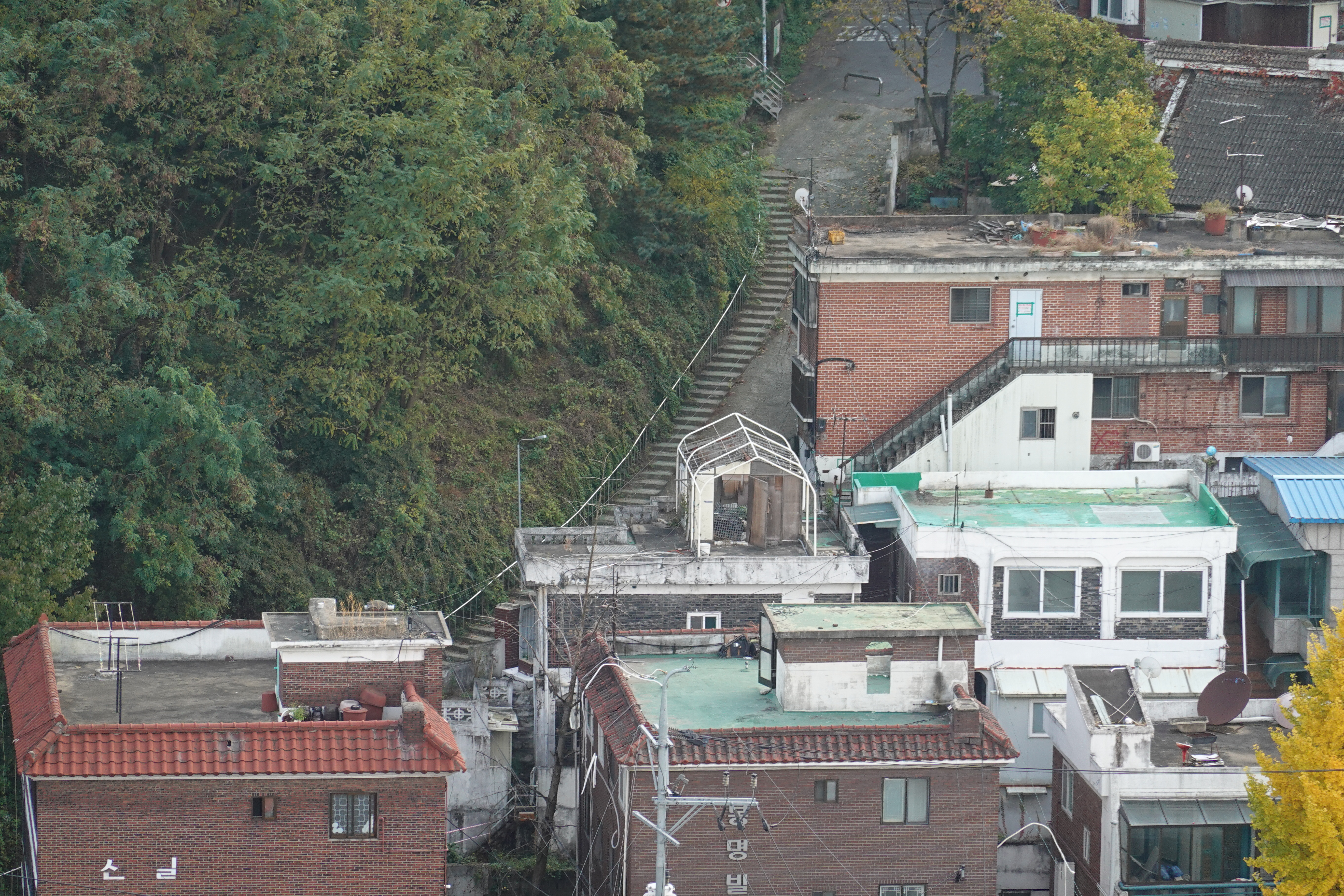 2022.10.29/ #도시기록 #상록마을 #안양8동/ 재개발로 주민 대부분이 이사를 떠나고 철거를 앞두고 있는 동네. 안양8동 상록마을에 마지막 가을이 찾아왔다, 뒷산은 울긋불긋 가을 단풍으로 물이들고 골목에는 오가는 사람이 없어 적막감이 감돈다.