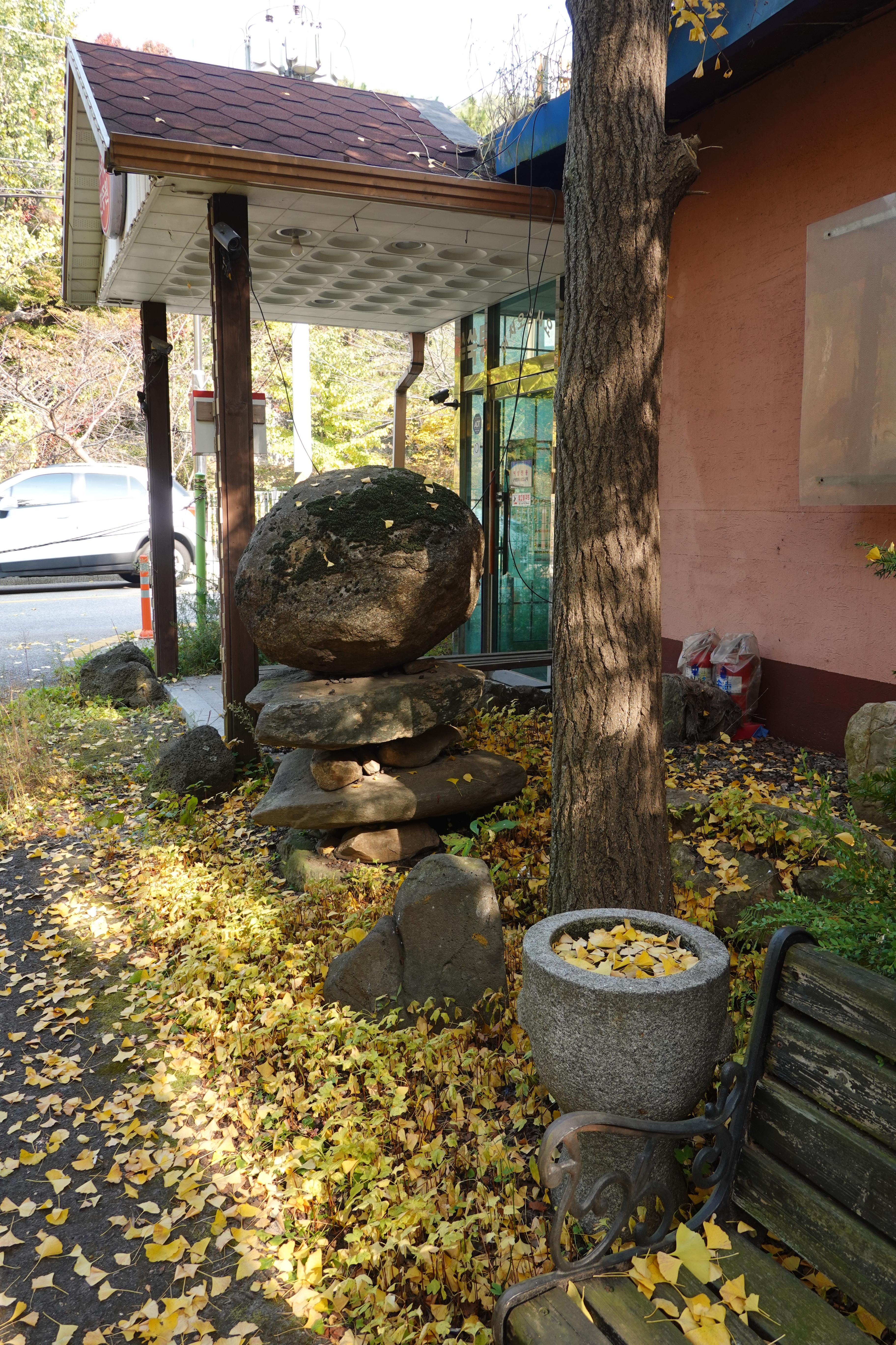 2022.10.29/ #도시기록 #가을풍경 #노랑융단 #은행잎 #안양9동/ 은행잎이 노란 융단처럼 깔린 안양9동 수리산한증막 마당. 2021년 영업을 중단하고 문을 닫았는데 무엇이 들어설까 궁금하다.