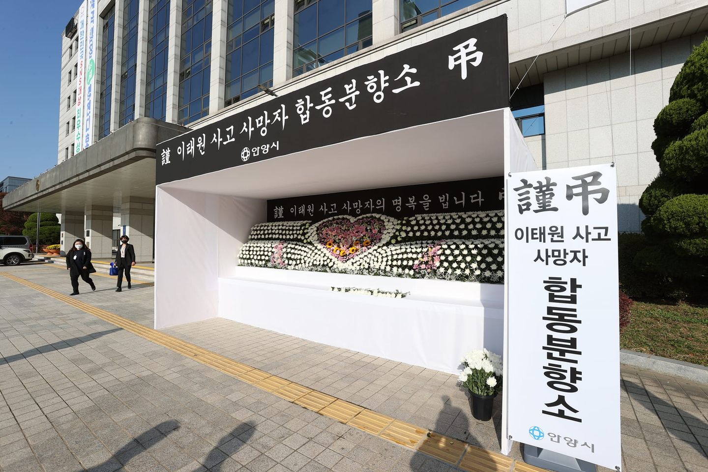 안양시청 현관옆에 이태원 참사 희생자 합동분향소가 설치됐다.