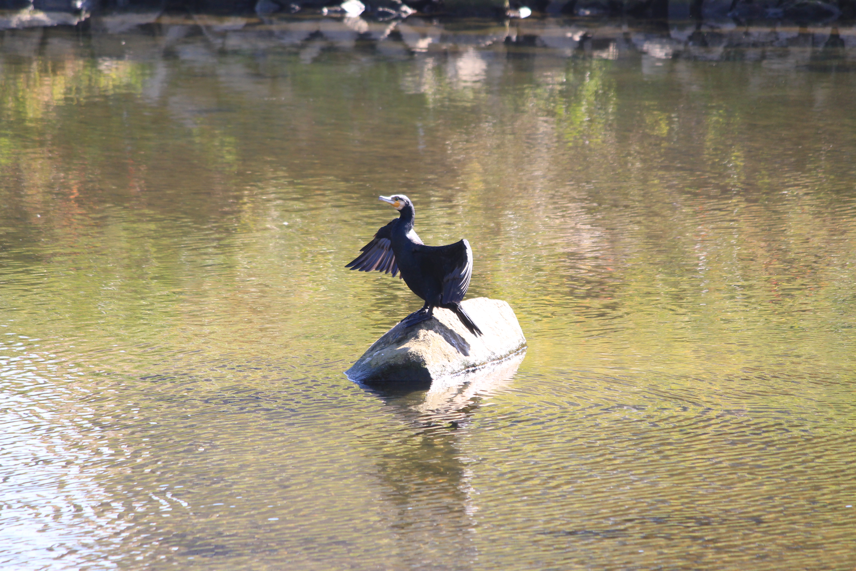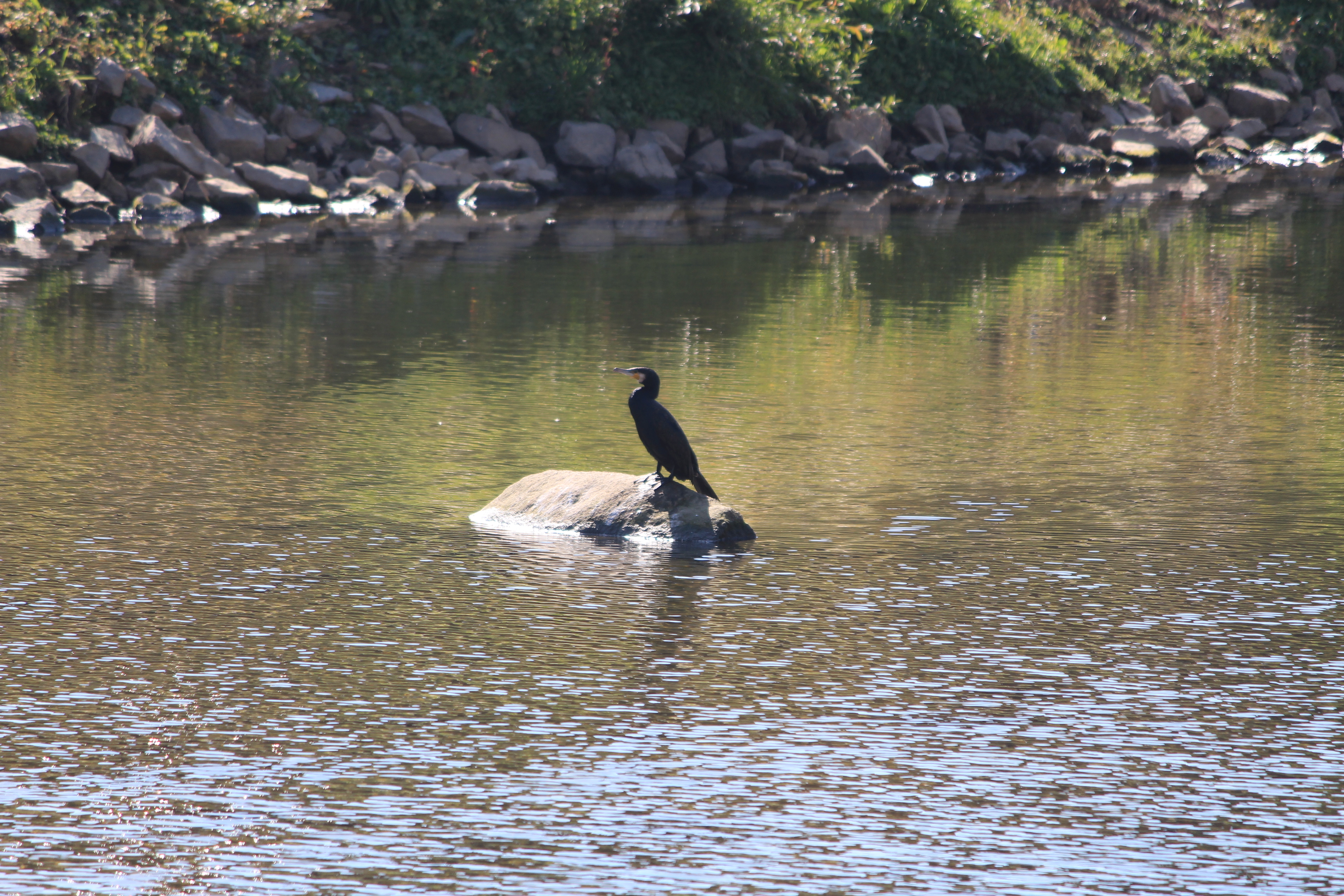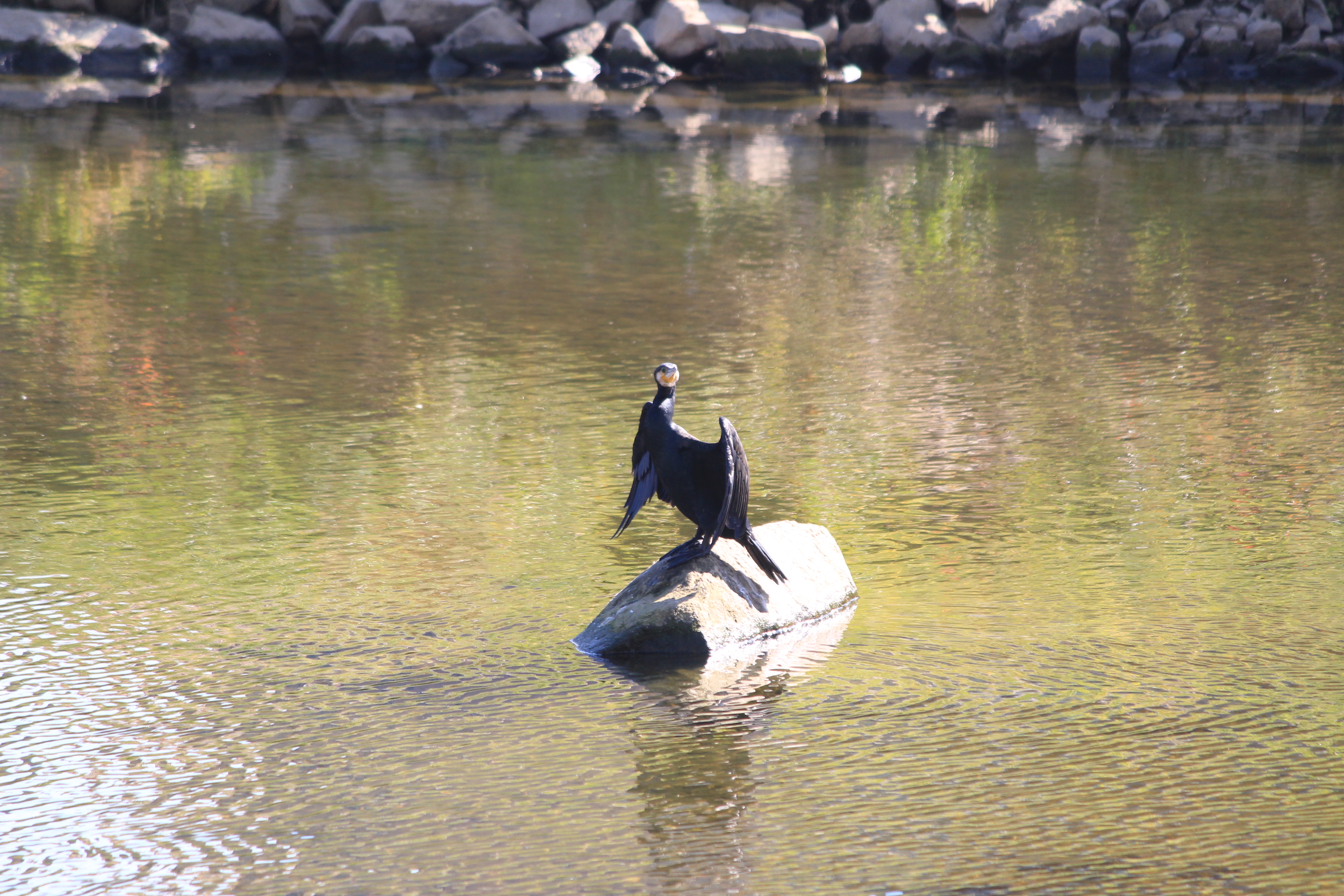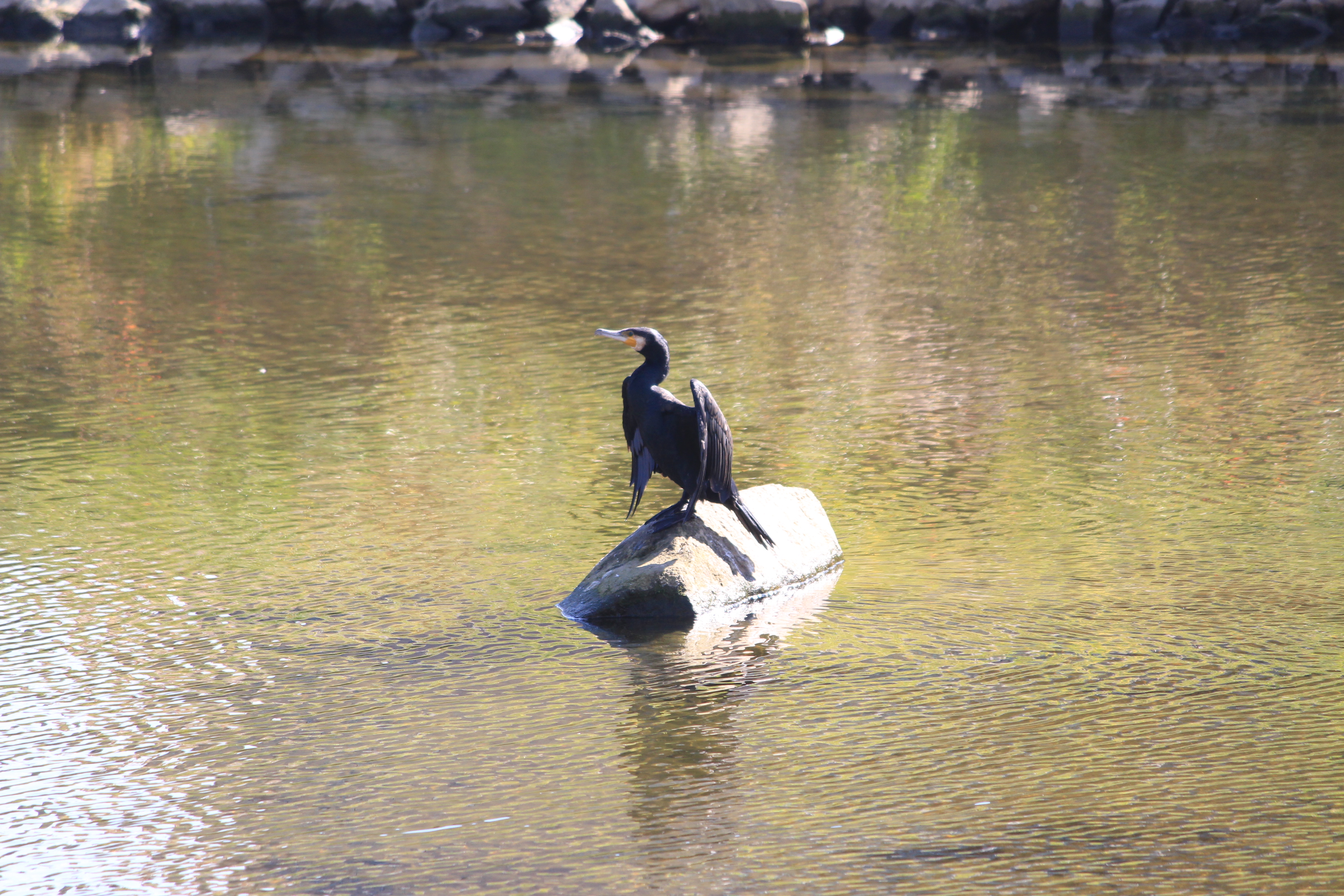 2022.11.02/ #도시기록 #민물가마우지 #안양 #안양천/ 안양 학의천에서 주로 보이던 민물가마우지를 안양대교 근처에서 발견. 오전 천변에 떼로 앉아 있었다 하는데 오후에 갔더니 한마리가 몰고기사냥을 마치고 나온듯 물위 바위에 딱하니 앉아 몸을 말리고 있다. 잠수성 조류인 민물가마우지는 겨울철 철새인데 수년전부터 학의천에 자리하더니 학의천 터줏대감이 되어 살고 있다. 운이 좋으면 학운공원 오프스쿨앞, 양명고앞 등에서 물속으로 잠수해 30cm 넘는 큰 물고기를 잡아먹는 모습을 볼 수 있다. 학의천 민물가마우지들의 아지트는 학운공원 건너편 인데, 육대장앞 천변 뚝방에 설치된 APAP작품과 학운교 다리위 가로등 꼭대기.