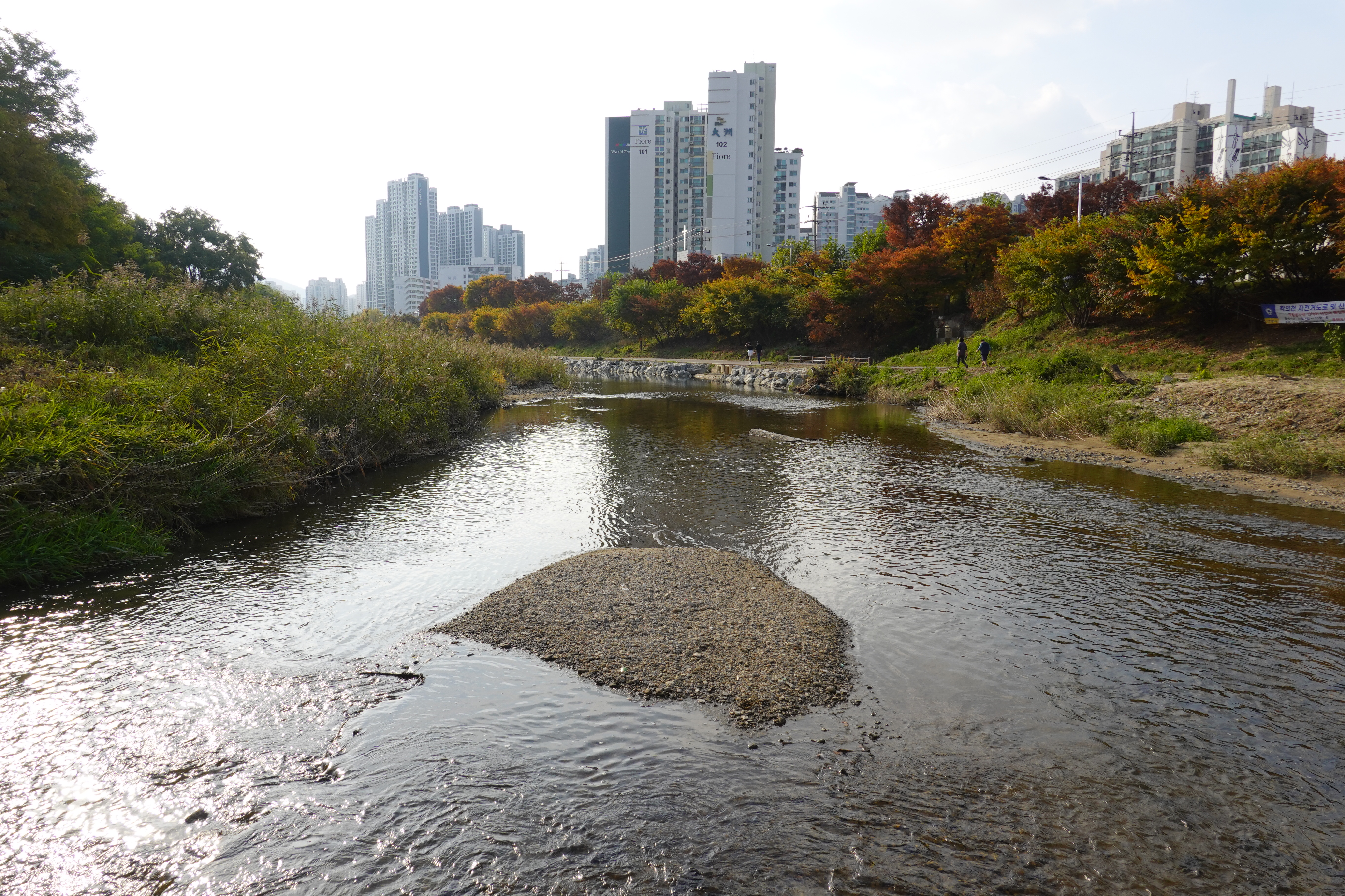 2022.11.04/ #도시기록 #학의천 #모래톱/ 지난 여름 수해로 큰물이 지나가고 난 이후 안양 학의천 곳곳에 모래톱이 새로 생겼다. 원래의 모습으로 다시 들아가려는 자연의 힘을 보는듯 하다.